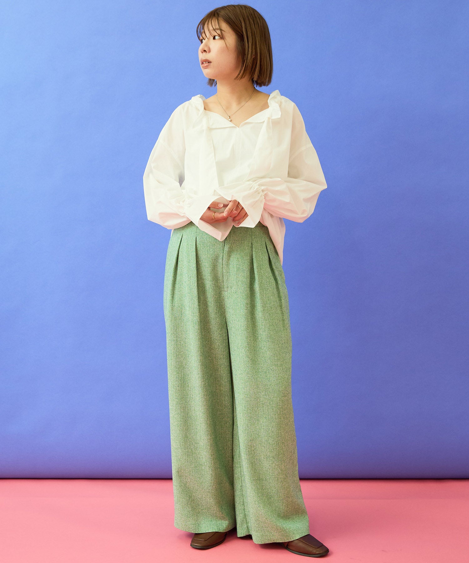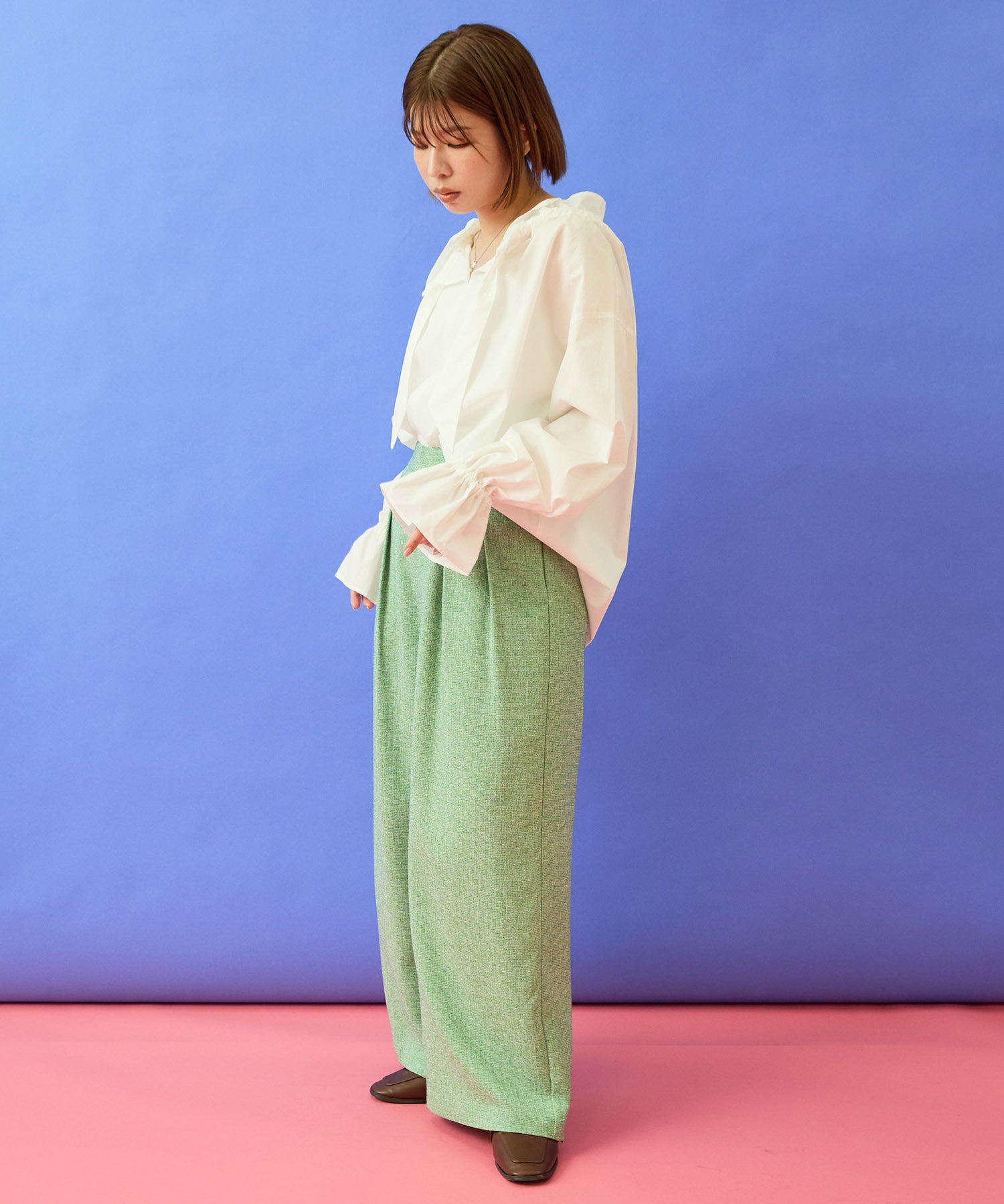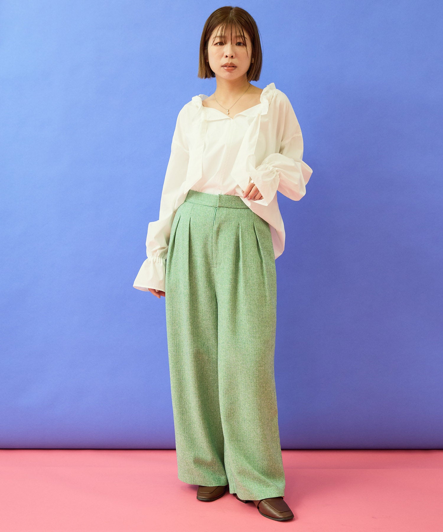 テーパードパンツやスラックスと合わせて、上品なきれいめスタイルに。