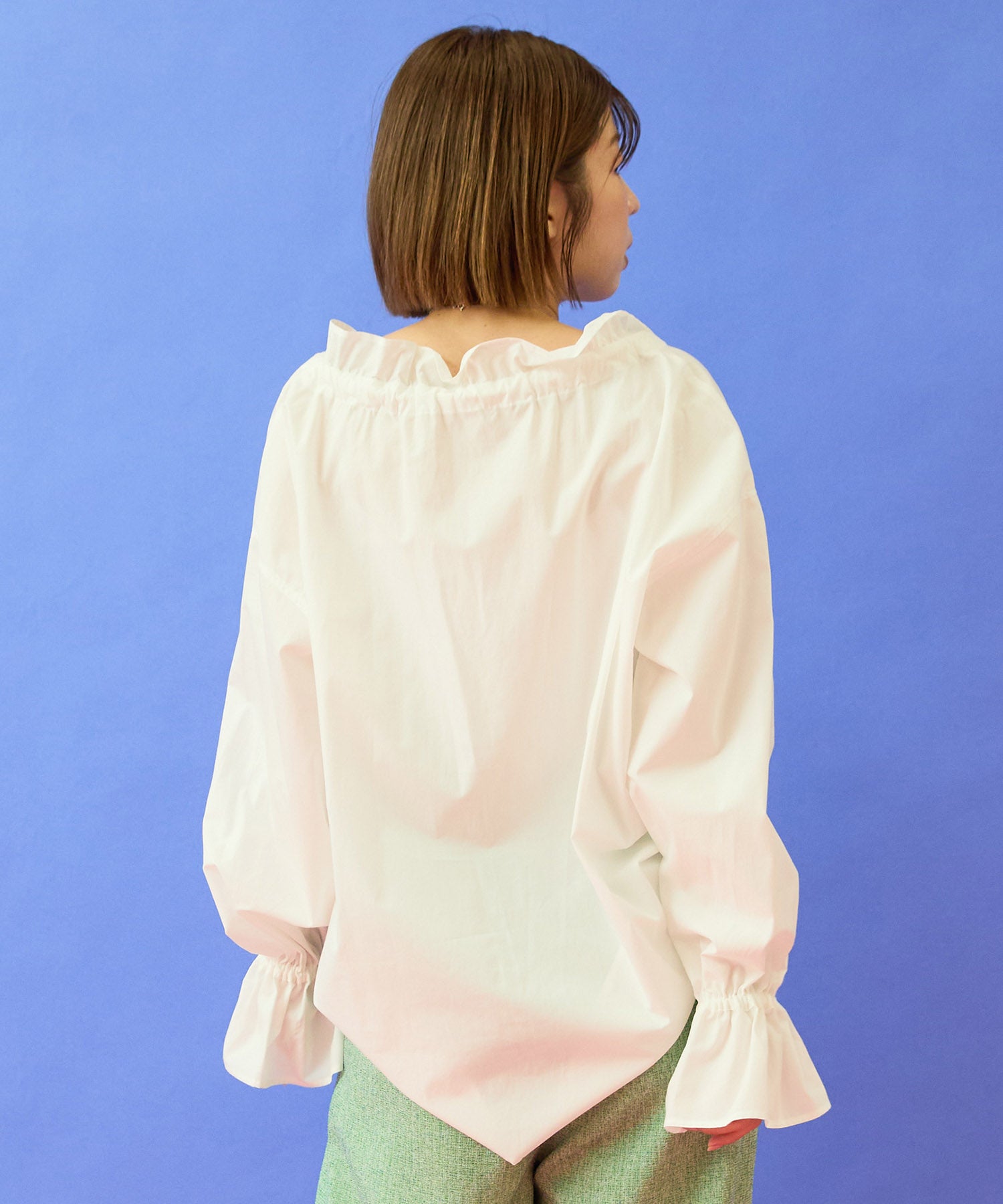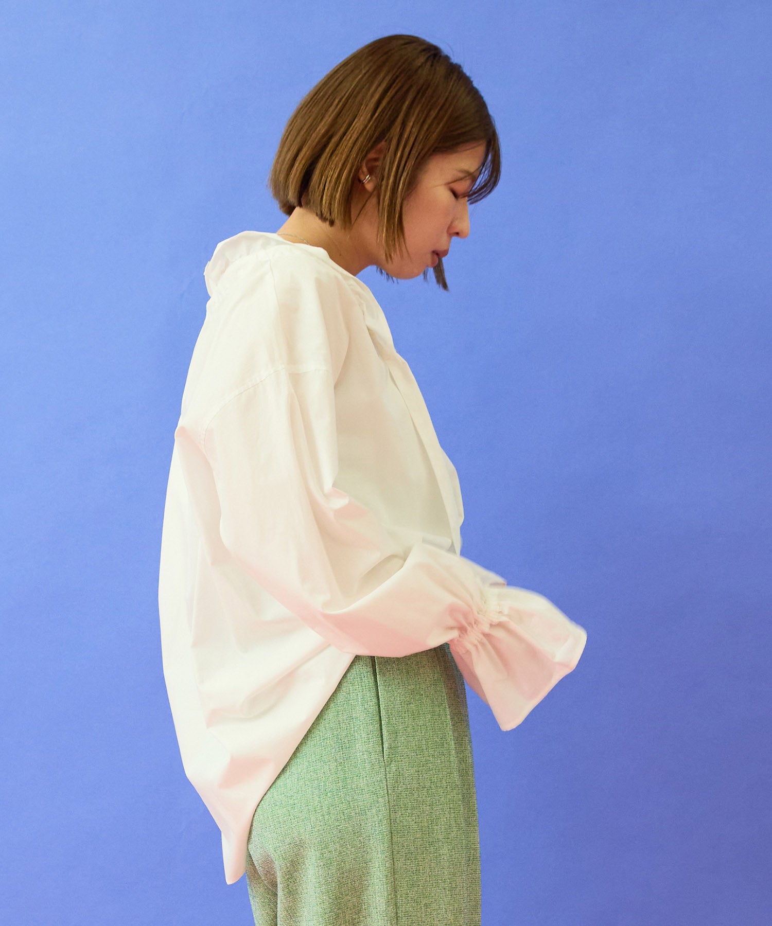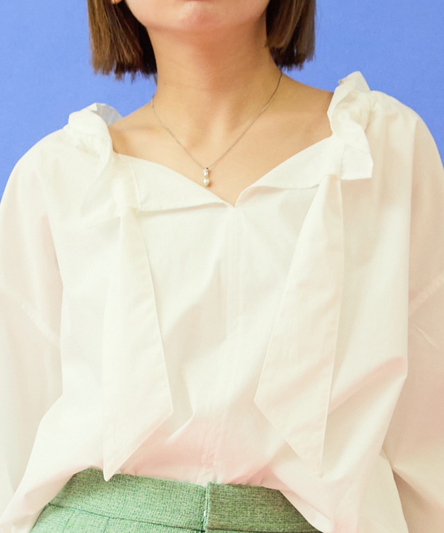 首元にあしらったフリルカラーが、さりげなく華やぐブラウス。