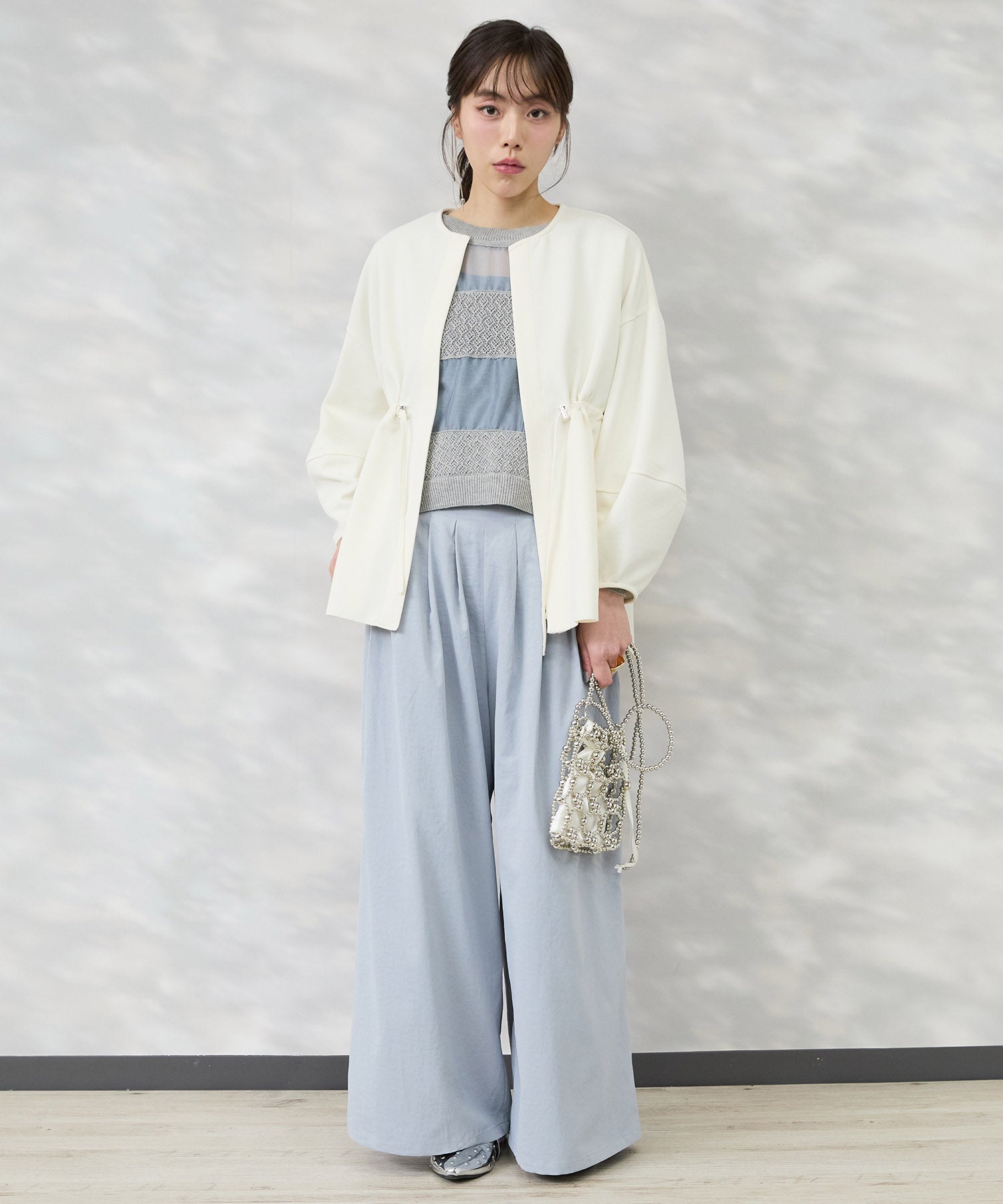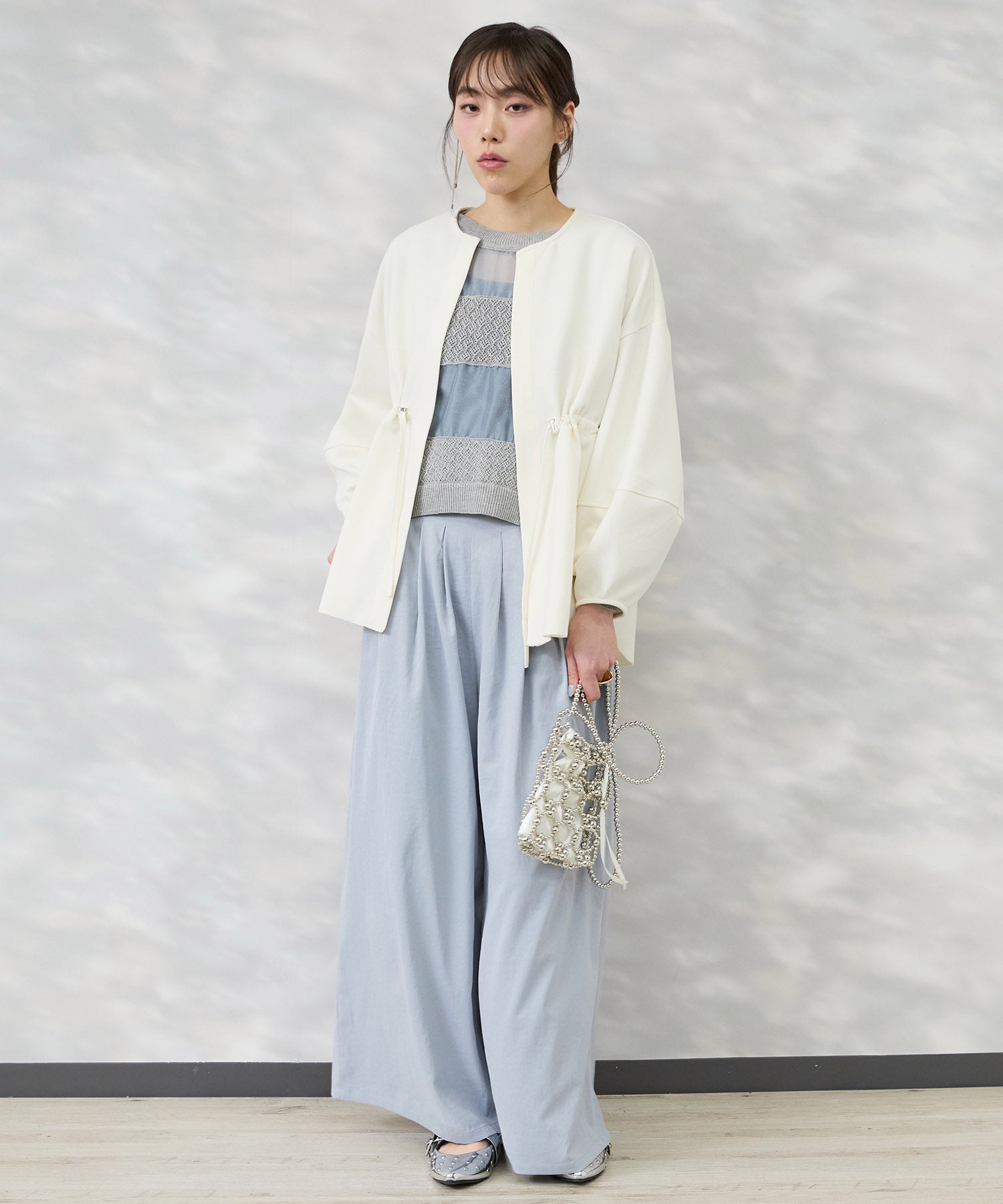 テーパードパンツやスカートと合わせて、すっきりとしたきれいめスタイルに。