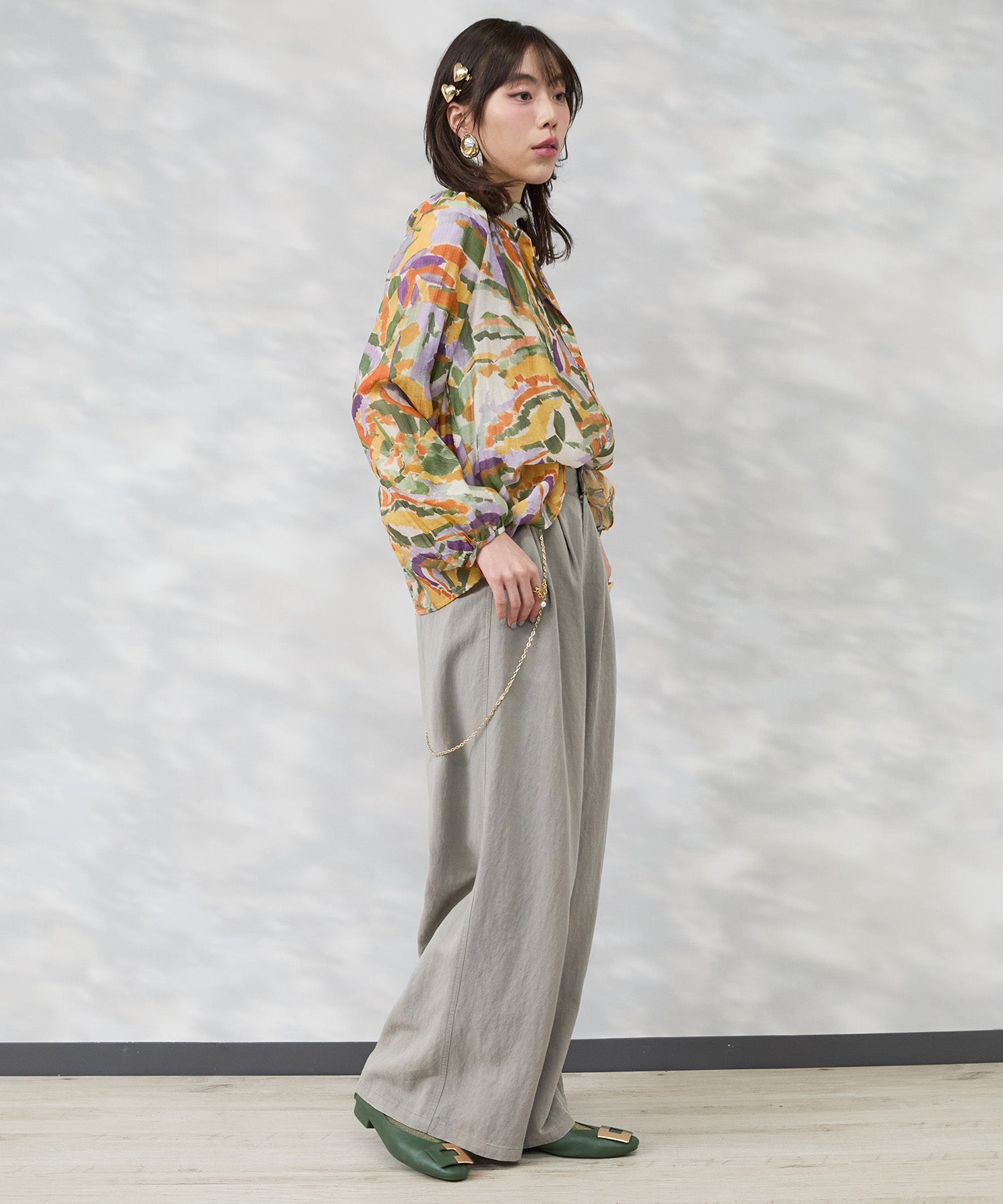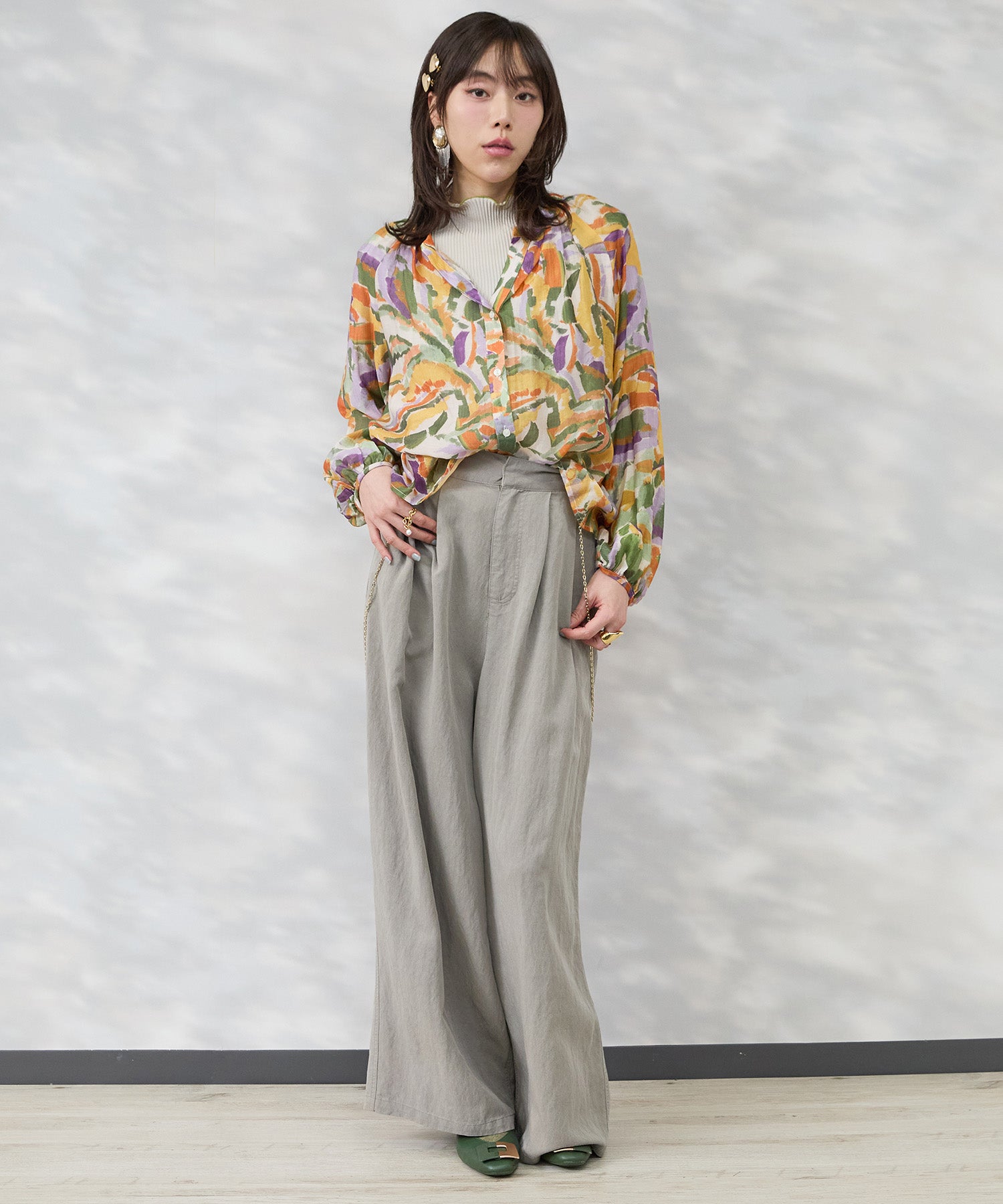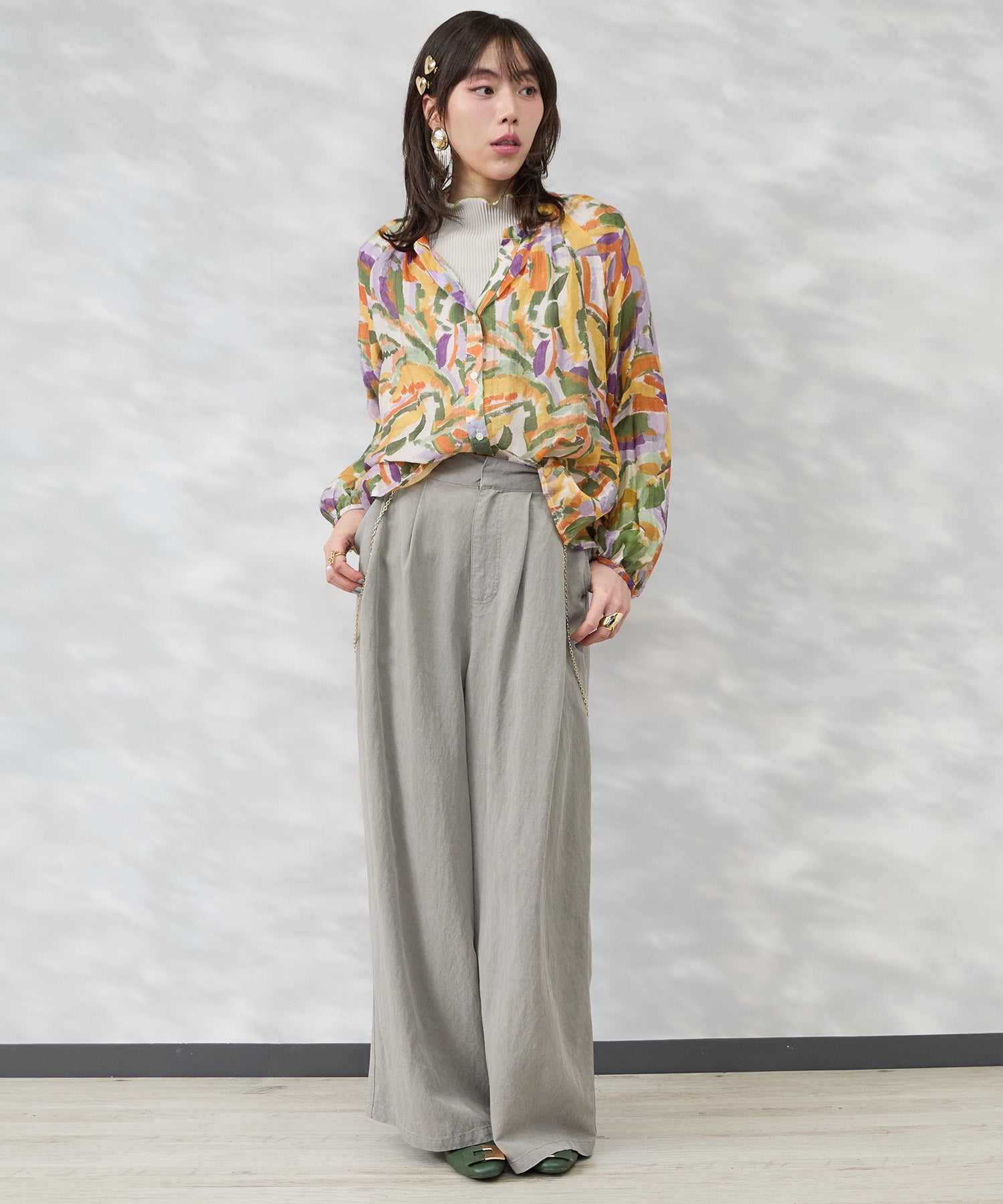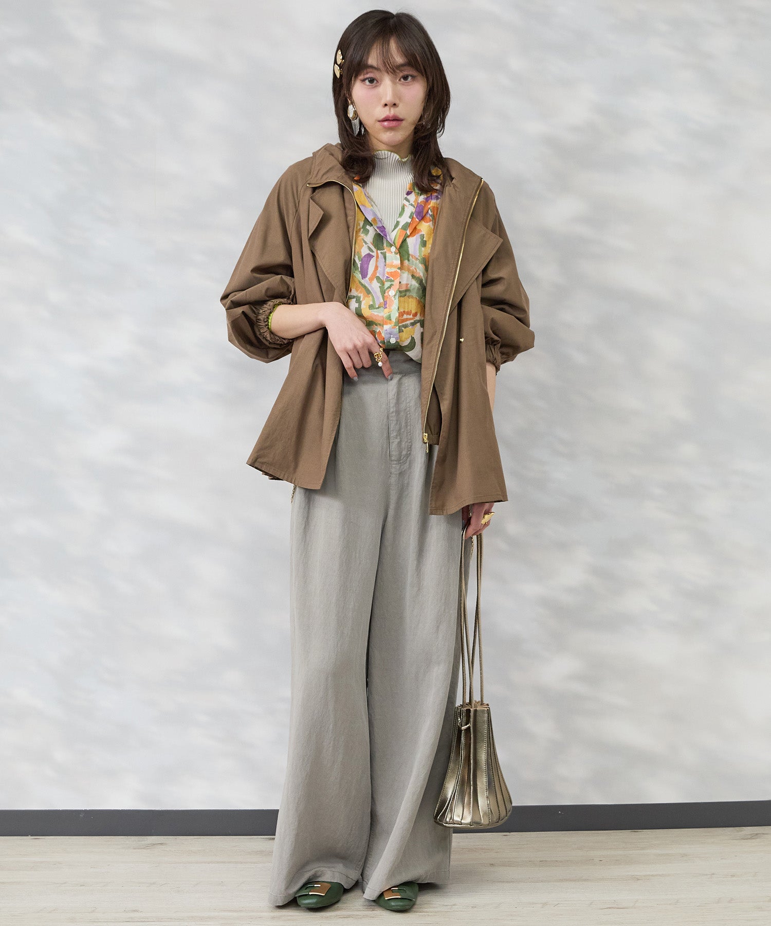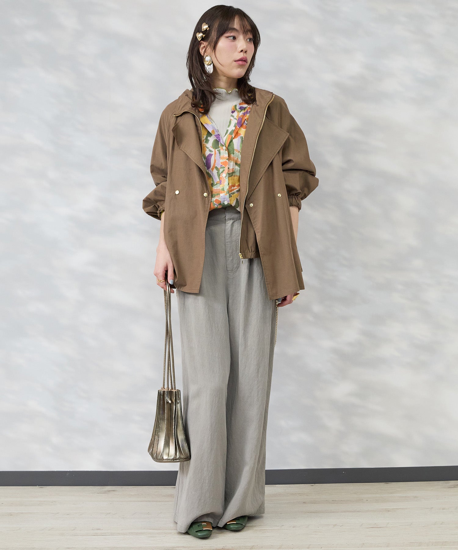 無地のテーパードパンツやワイドパンツと合わせて、きれいめカジュアルに。