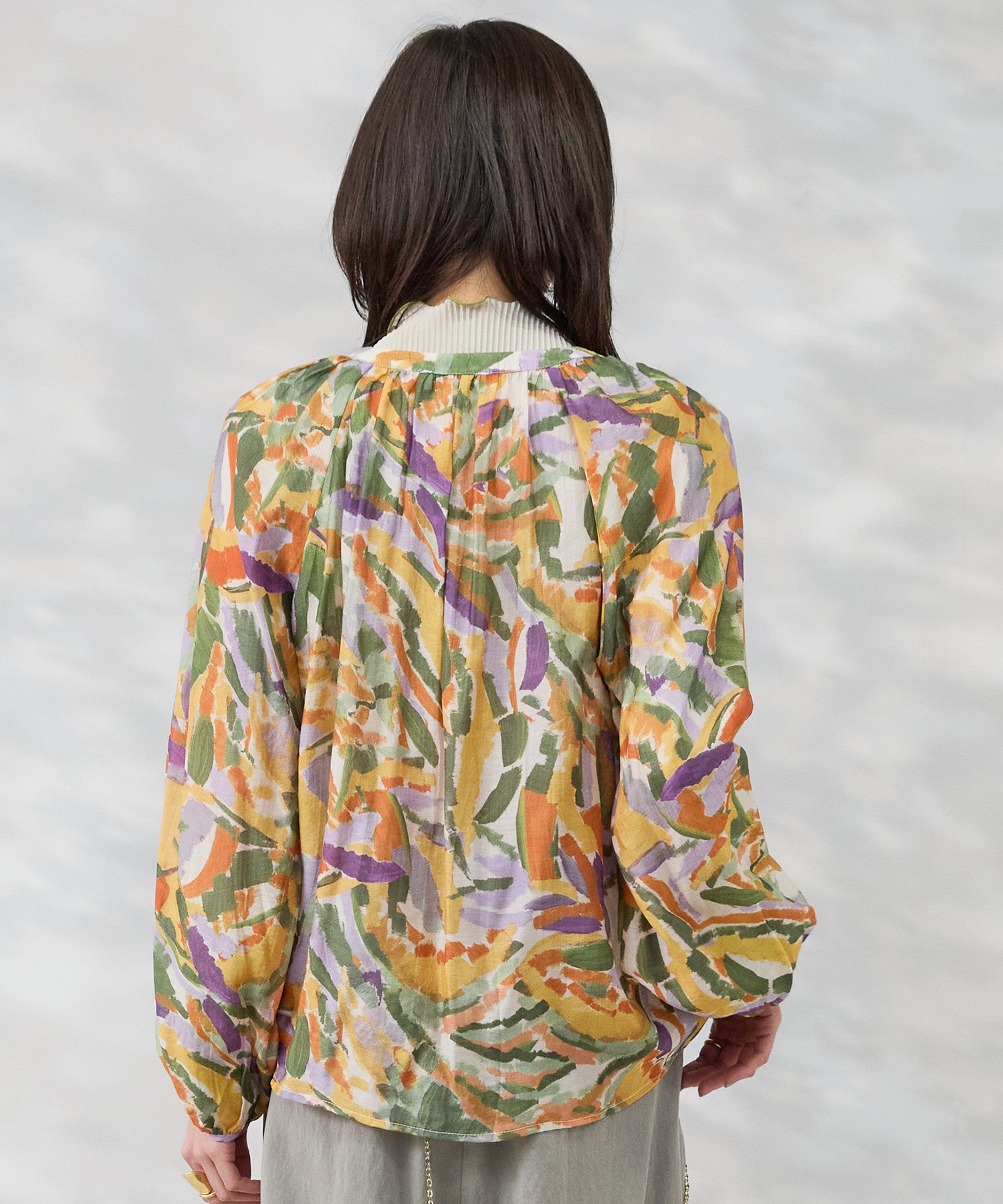 ジオメトリックに描かれたリーフプリントが、装いにリズムと奥行きをもたらすシャツ。