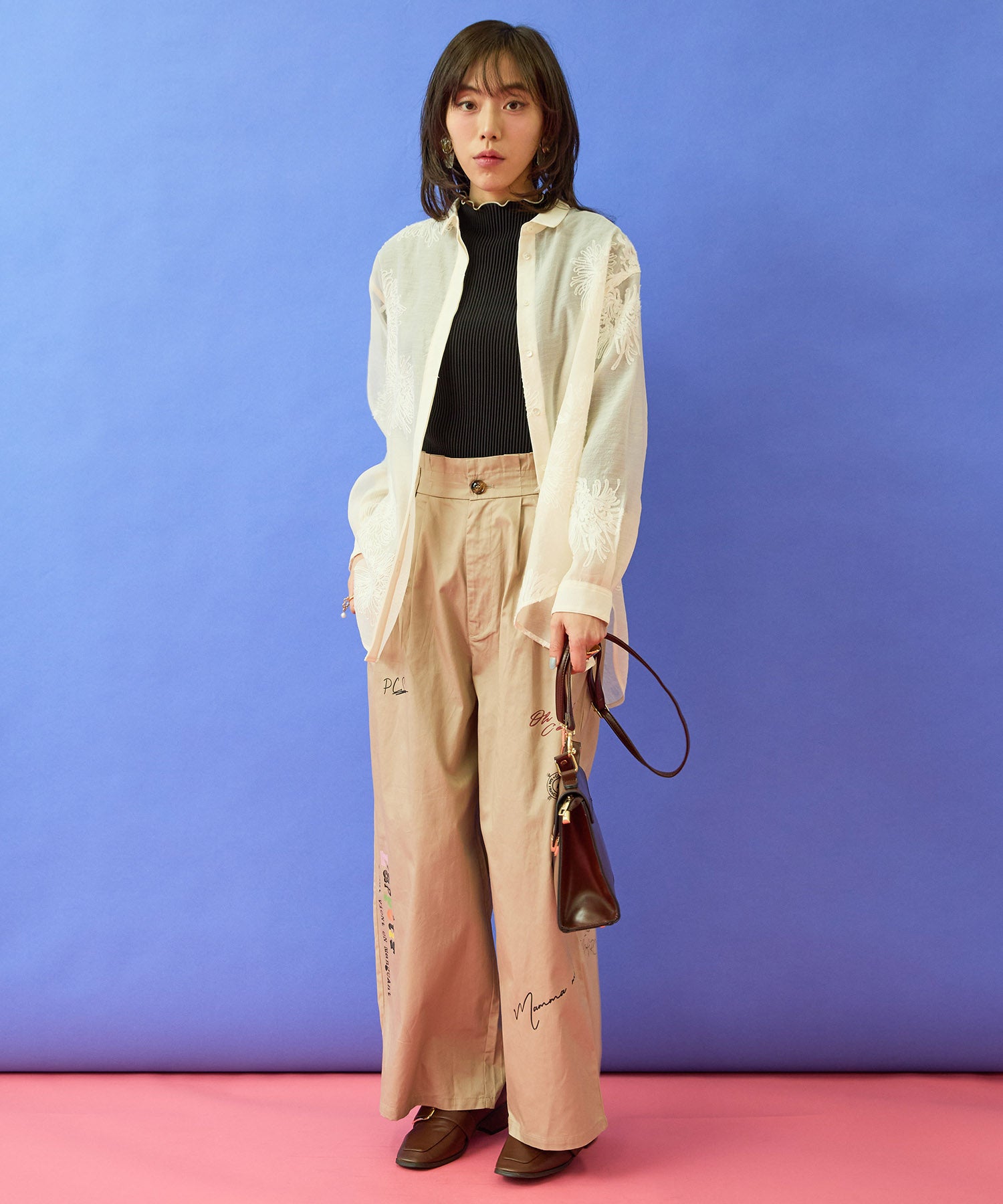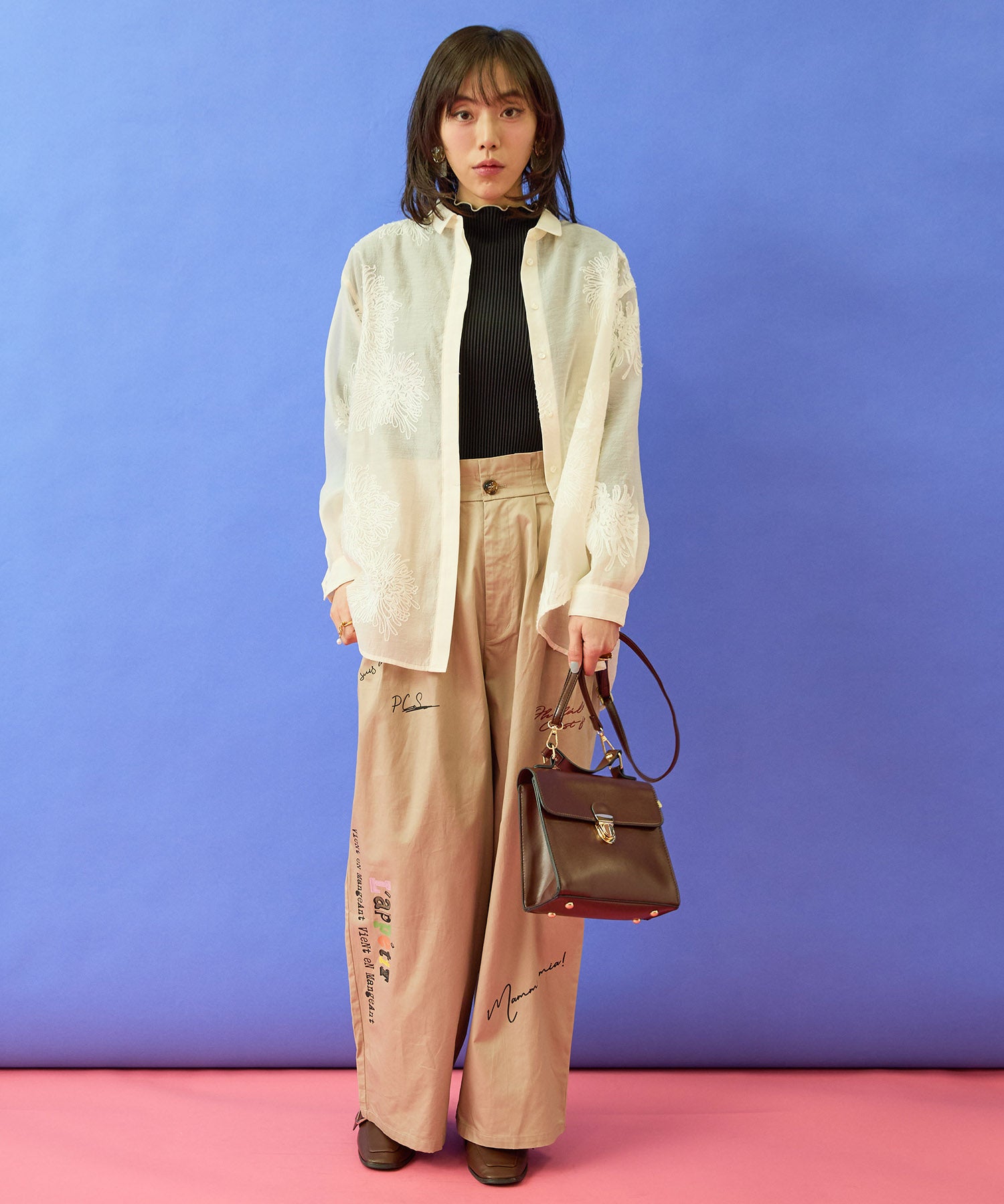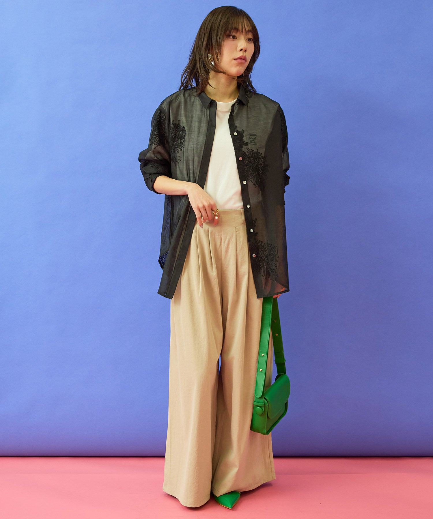オーガンジーの透け感に、3Dフラワーモチーフを重ねた表情豊かなシャツ。