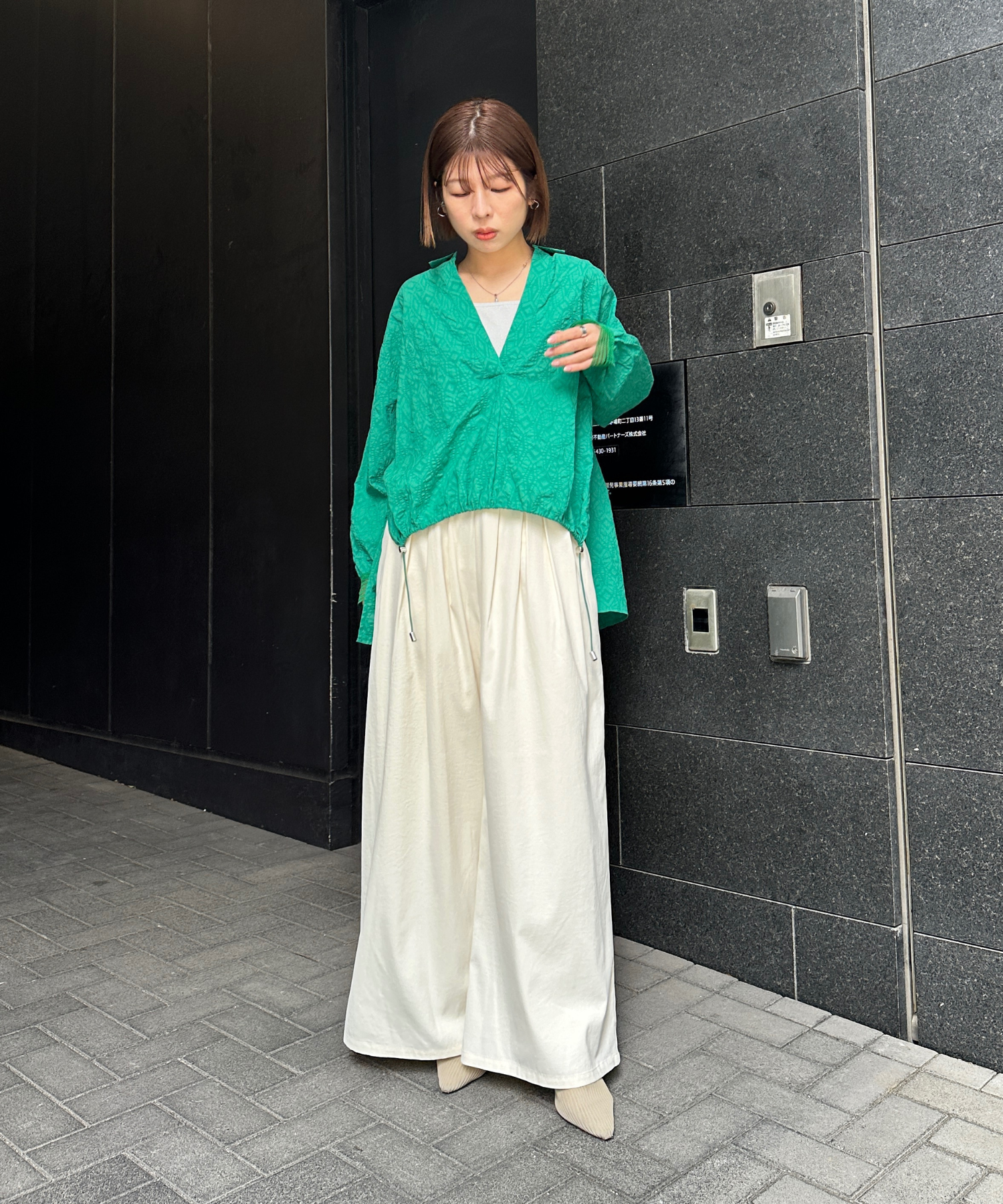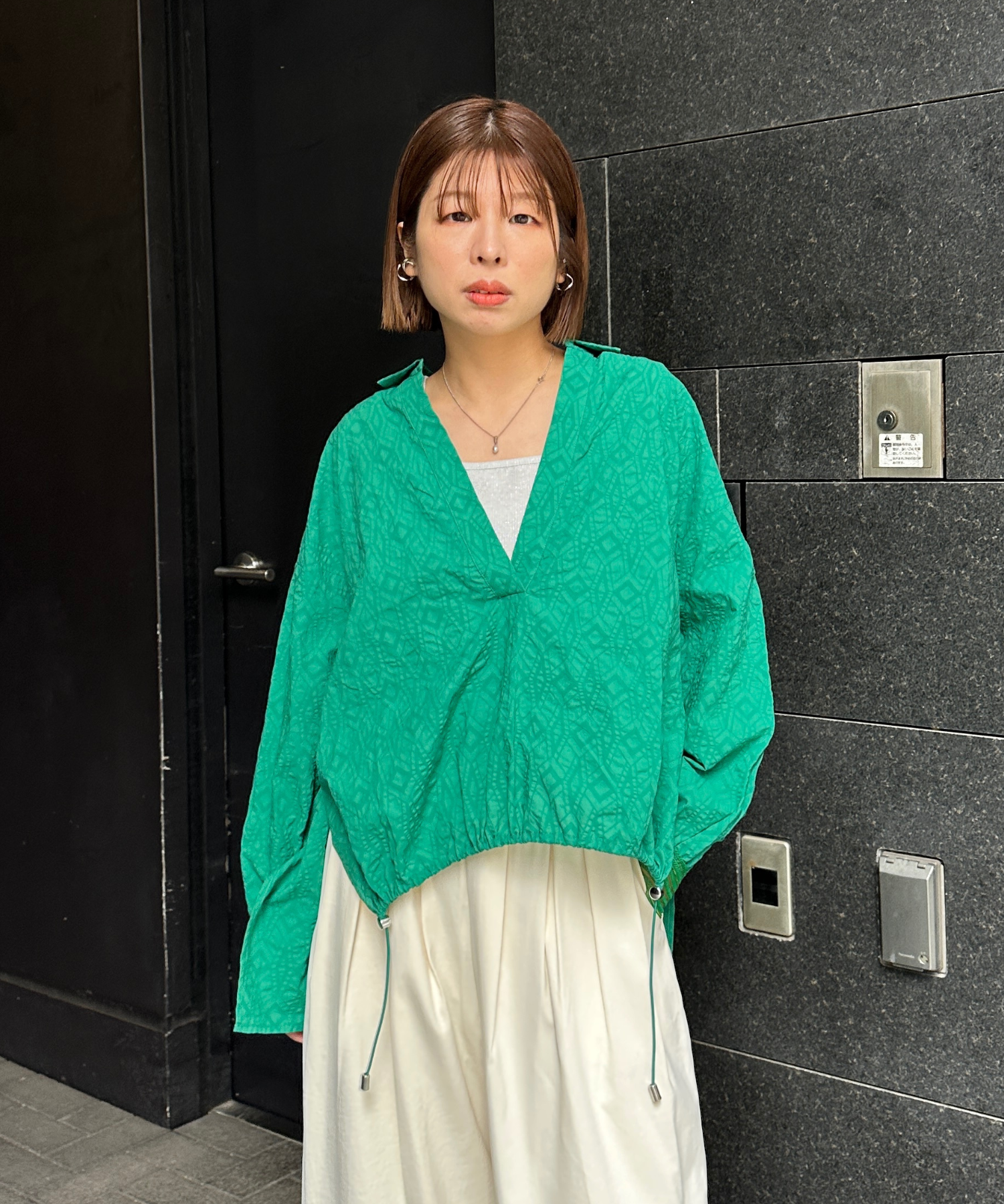 #サッカー素材 #スキッパーシャツ #ドロストデザイン #きれいめカジュアル #大人カジュアル #春コーデ #JETSETSOLOPLUS