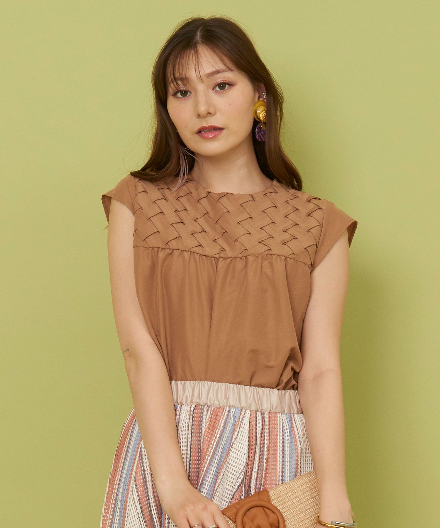 バスケット編みが可愛いさらさらブラウス