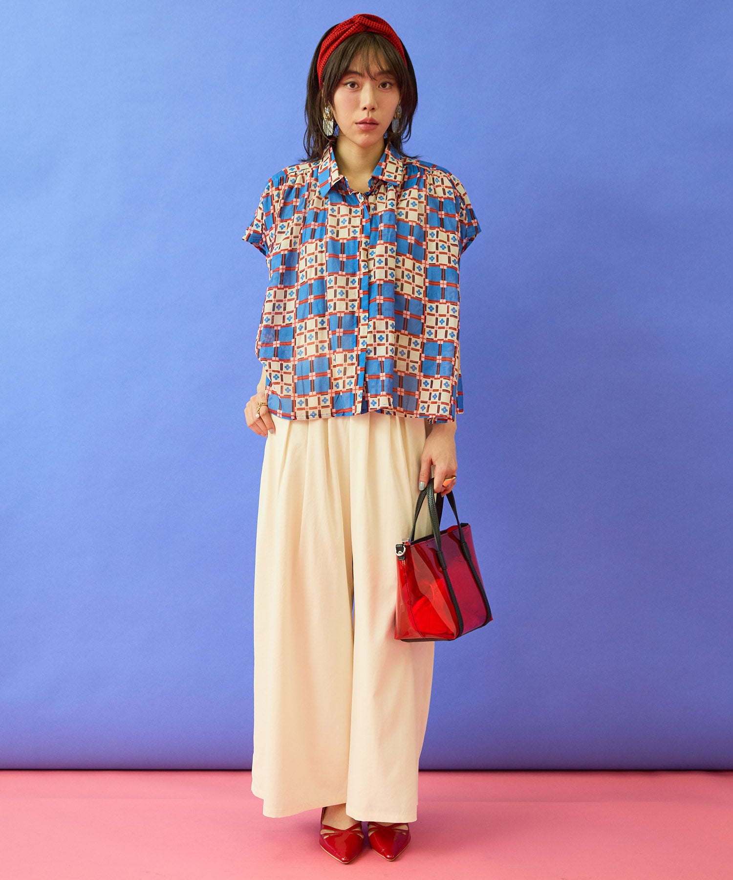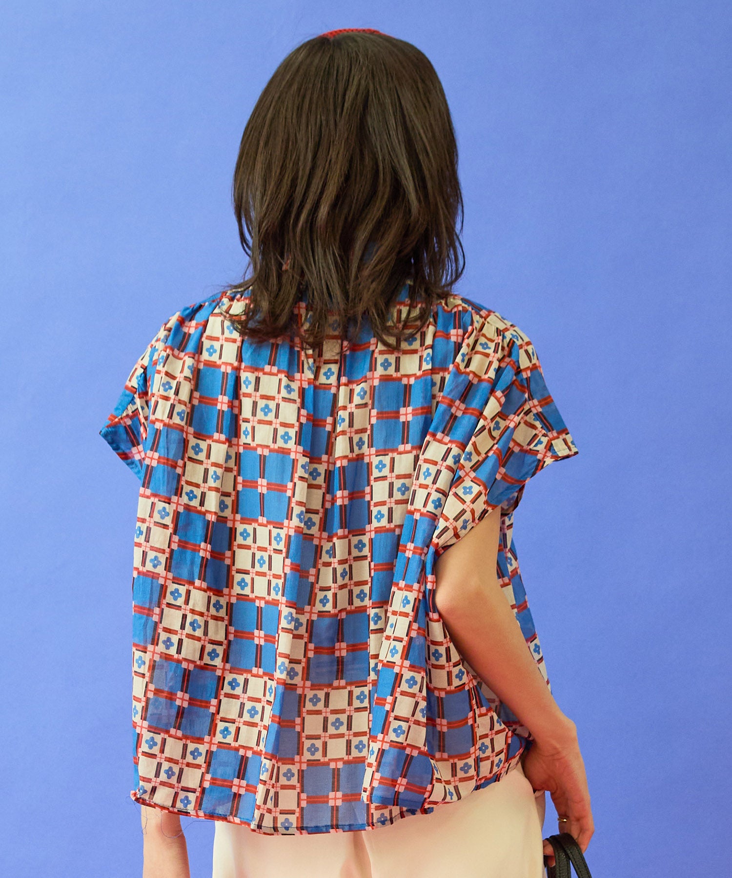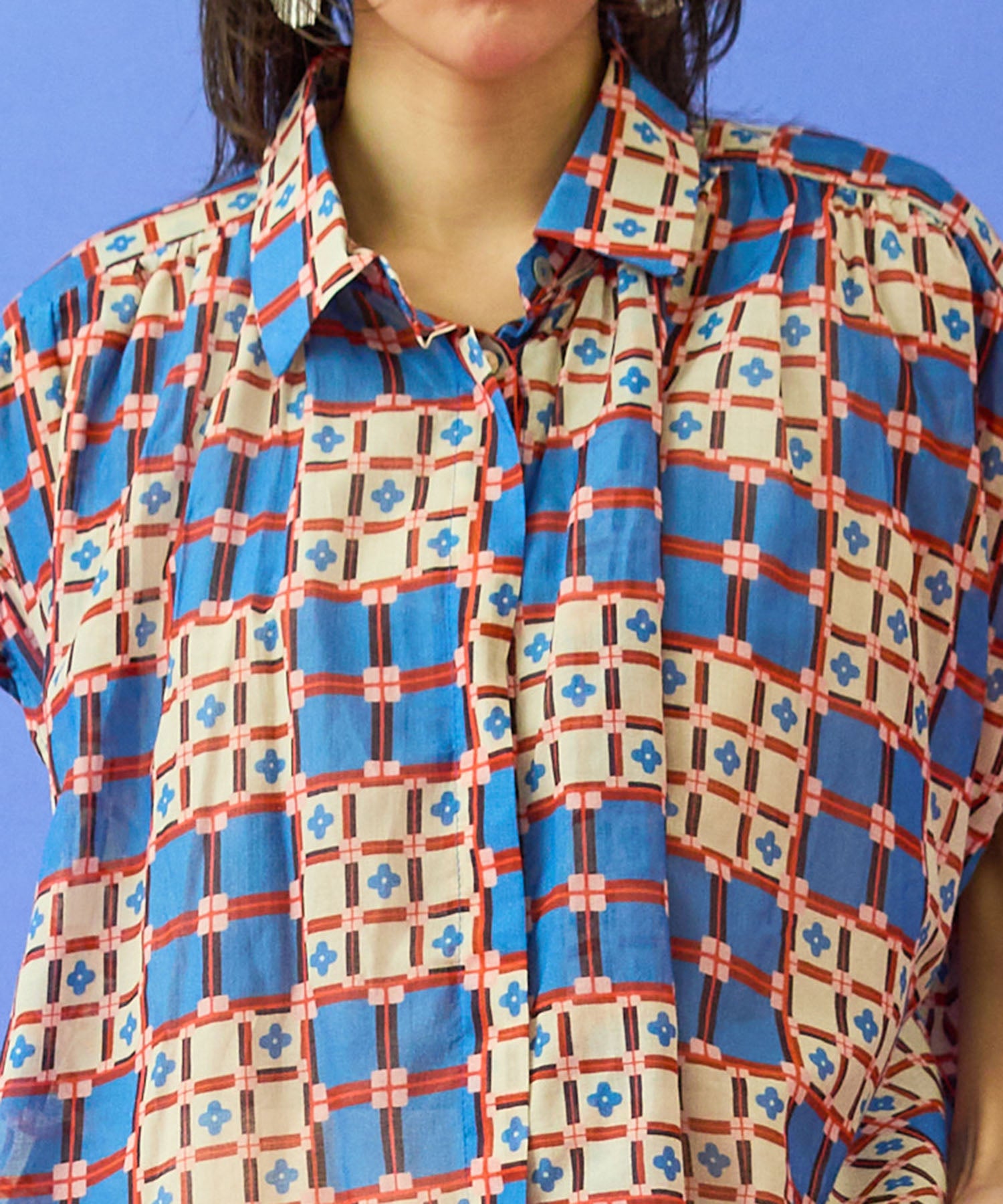 #タイルプリント #フレンチスリーブシャツ #大人シャツ #きれいめカジュアル #大人コーデ #春夏コーデ #JETSETSOLOPLUS