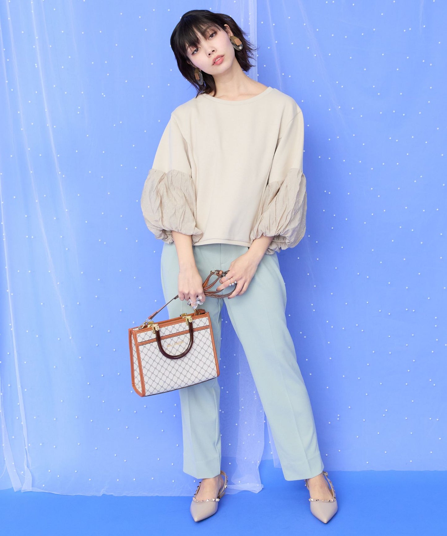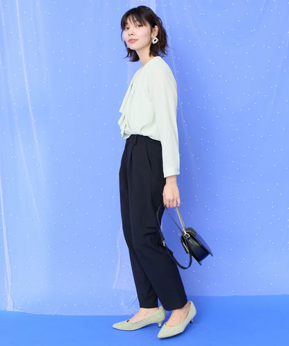 フロントタックとセンタープレスがすっきりとした美脚シルエットを演出し、お腹周りをさりげなくカバー。