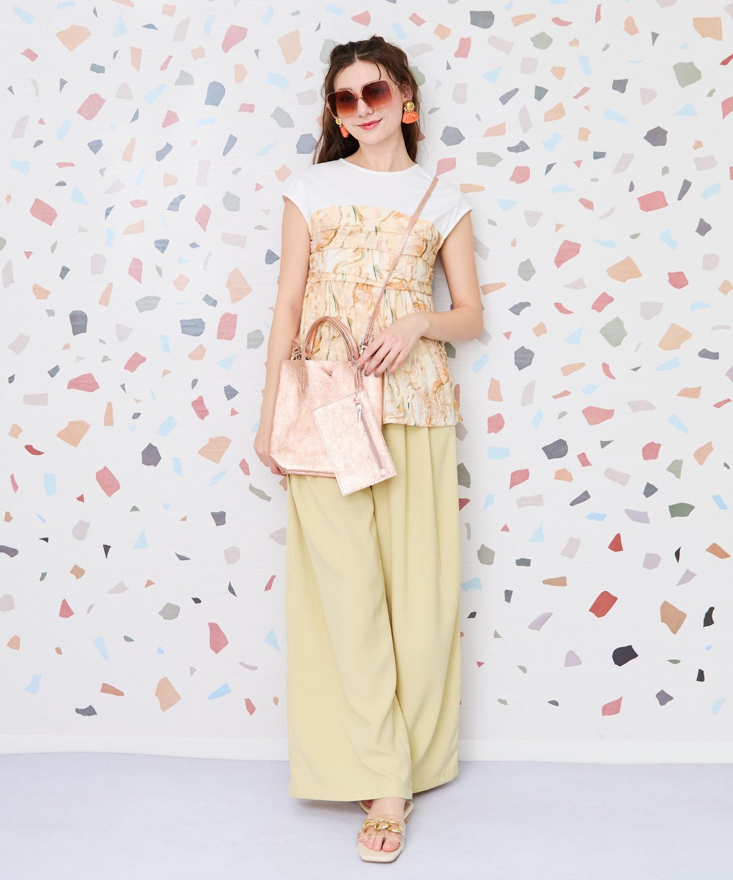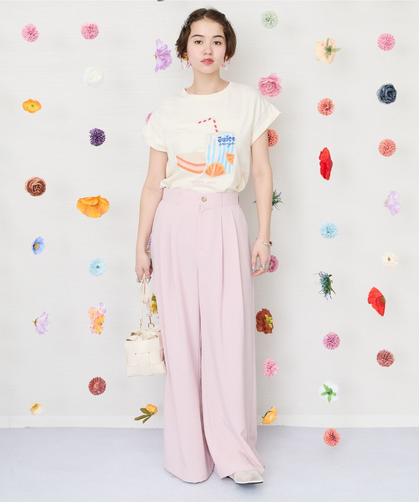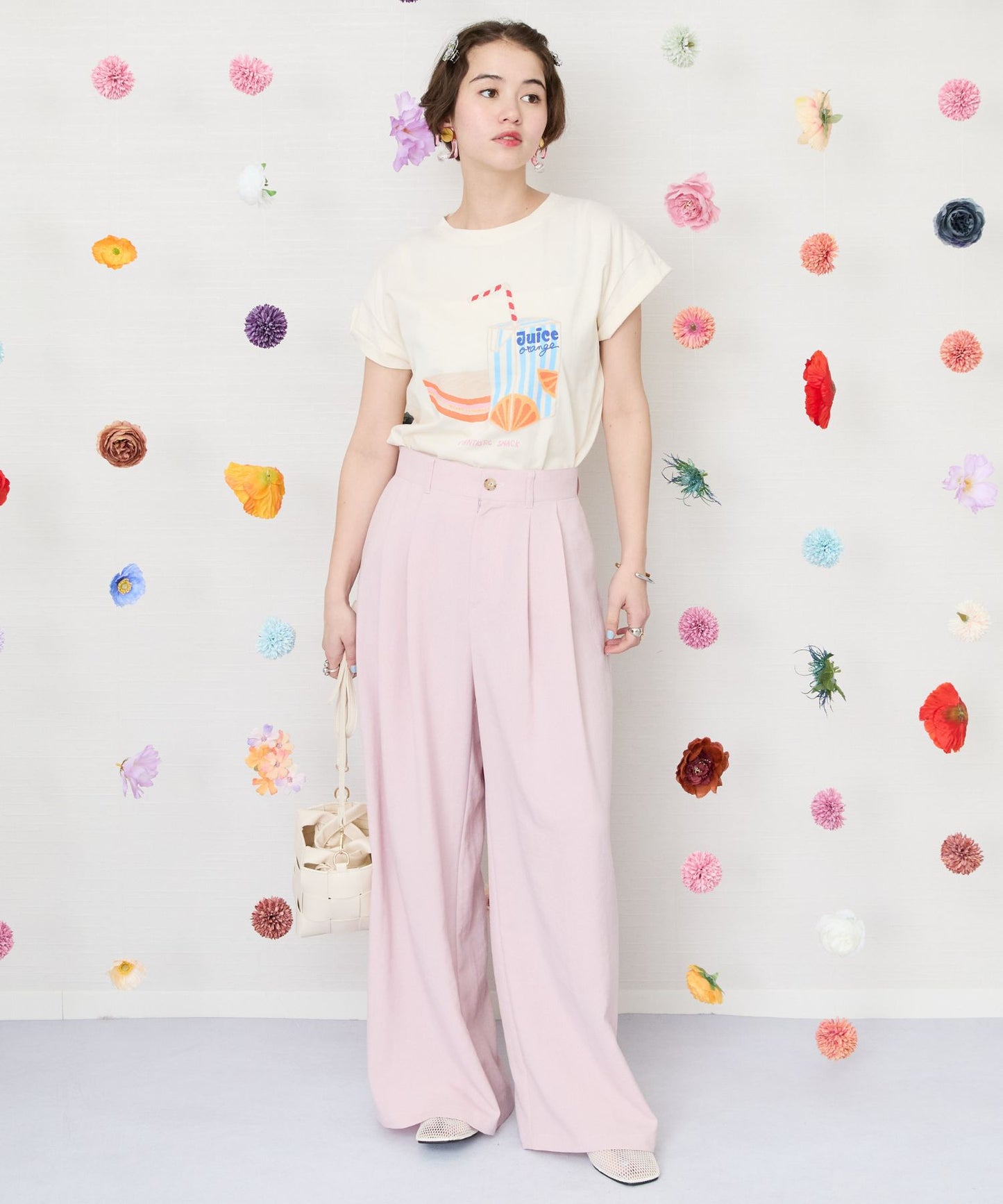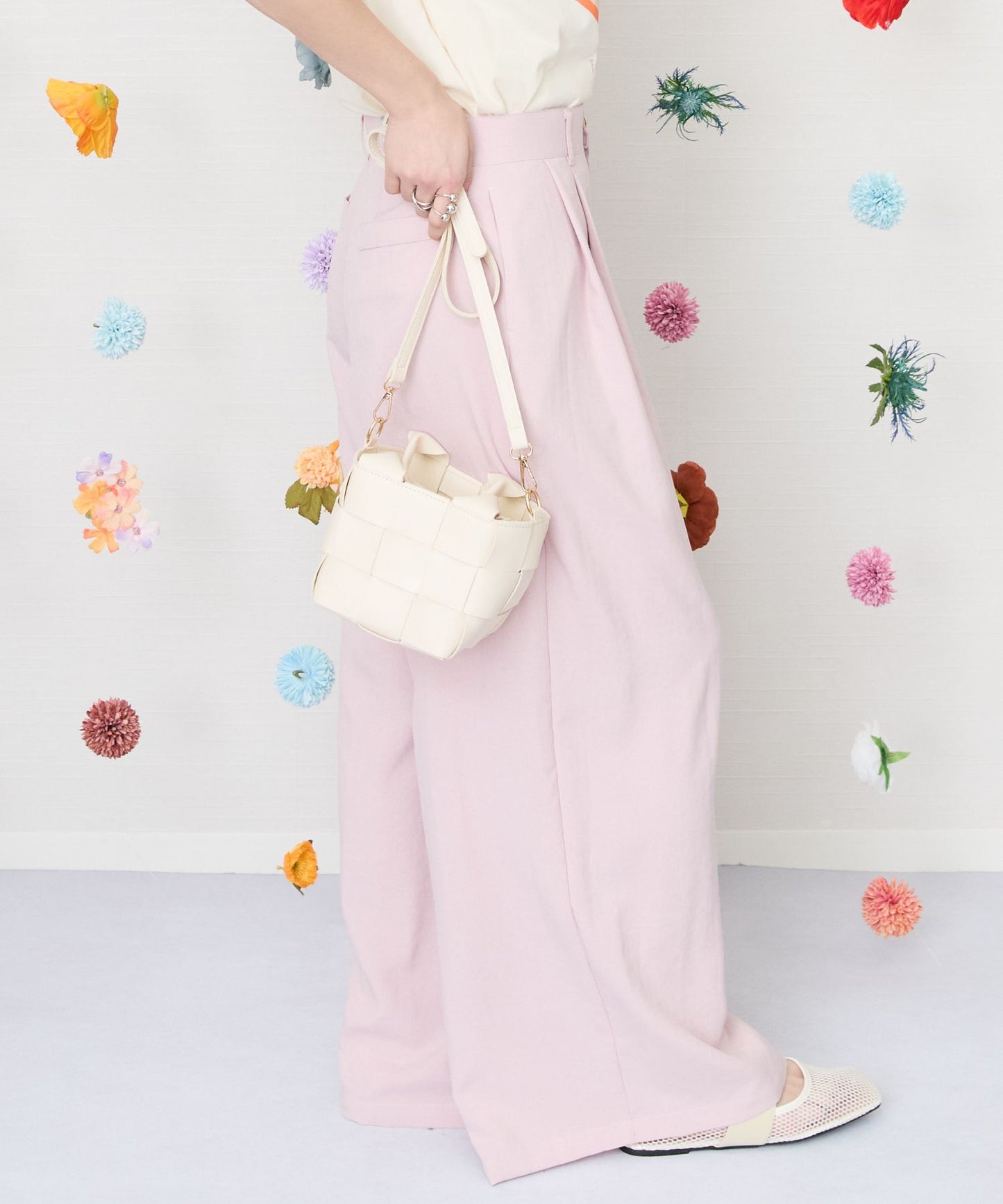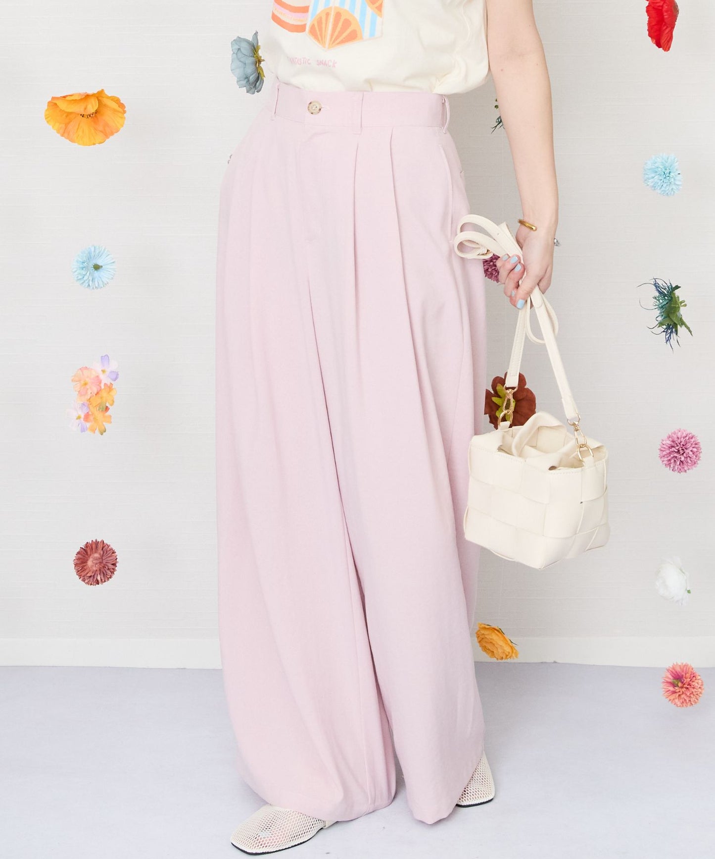 ナチュラルな風合いが魅力のツータックワイドパンツ