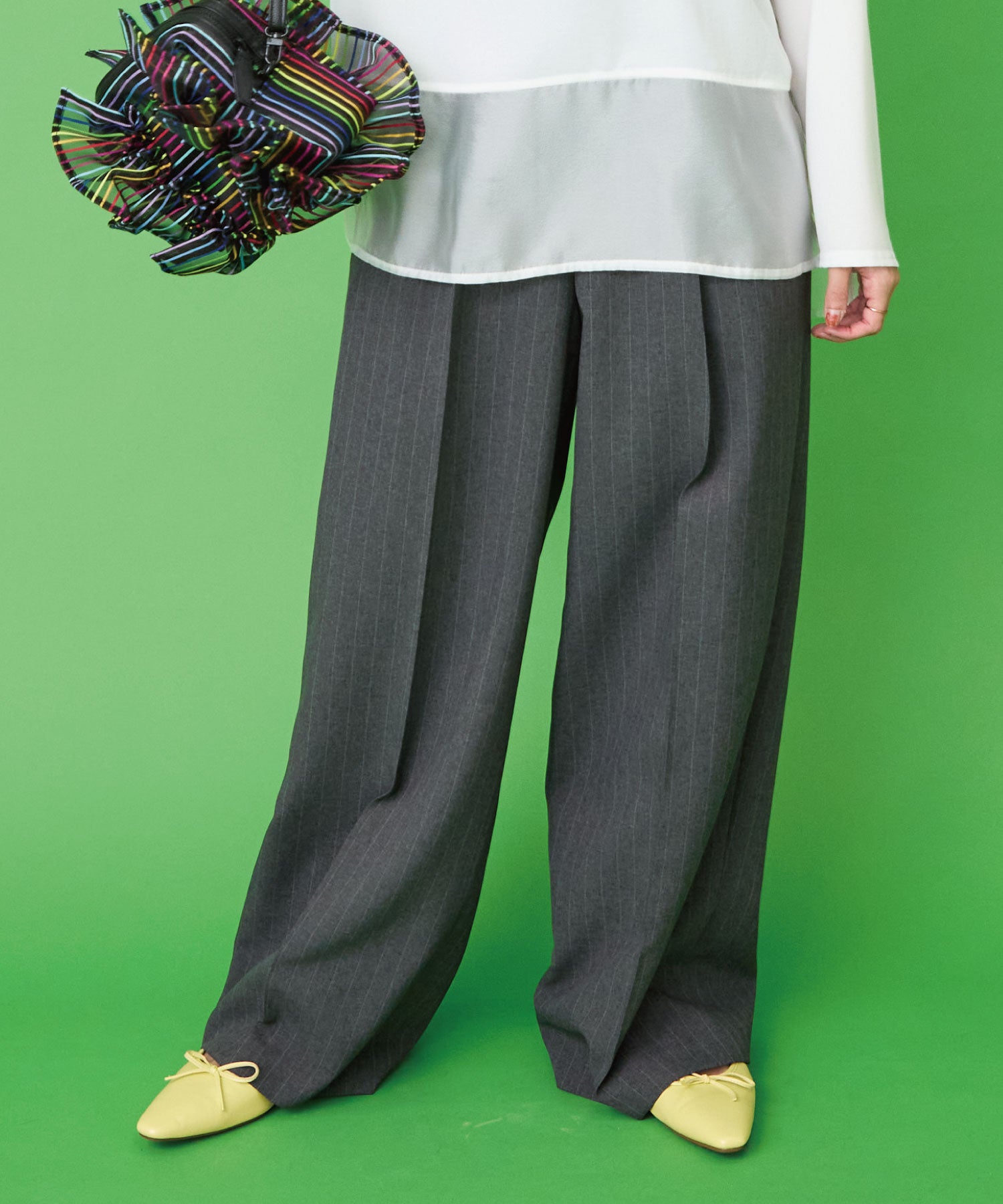 繊細なピンストライプがハンサムな印象を与えるワイドパンツ。