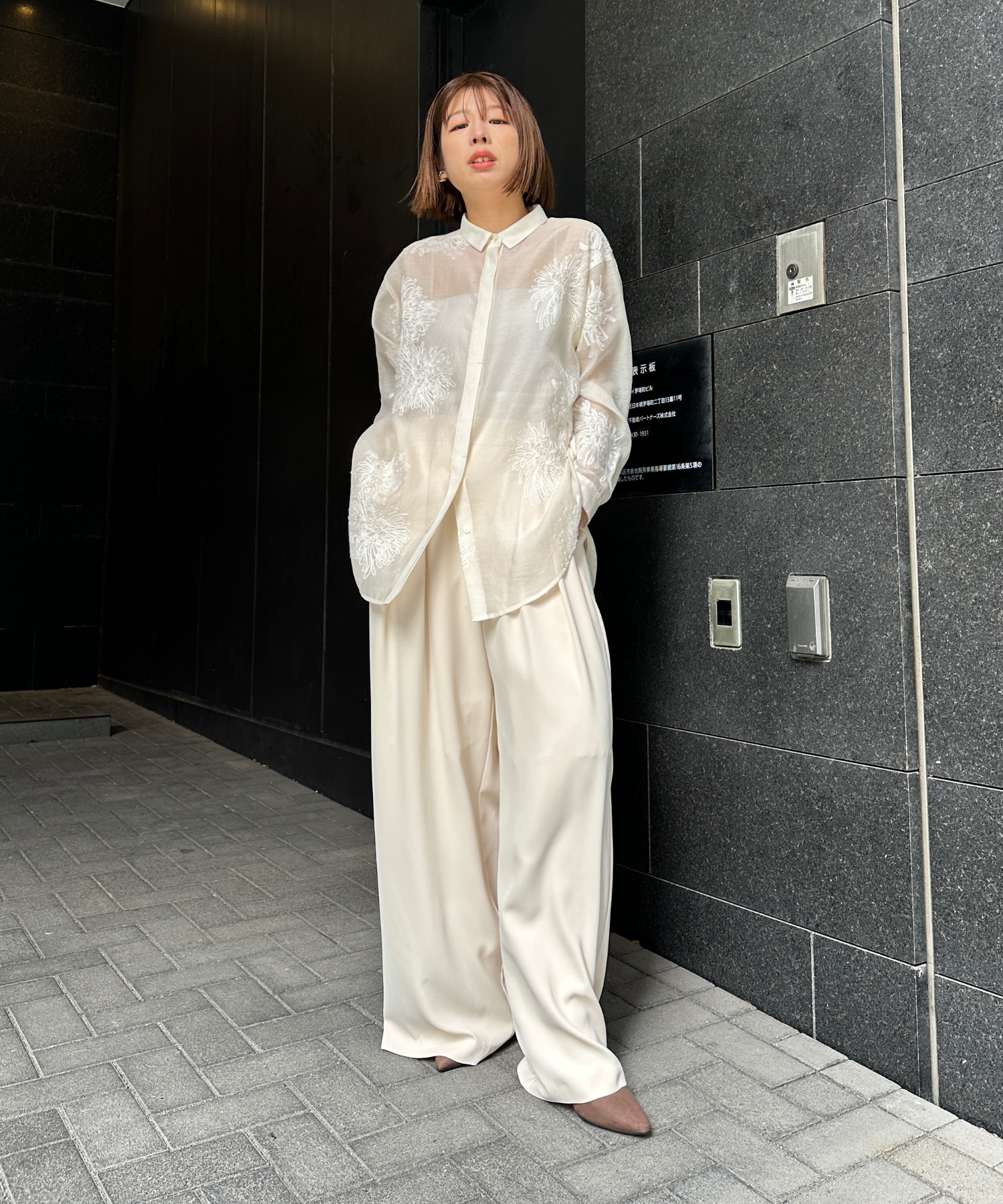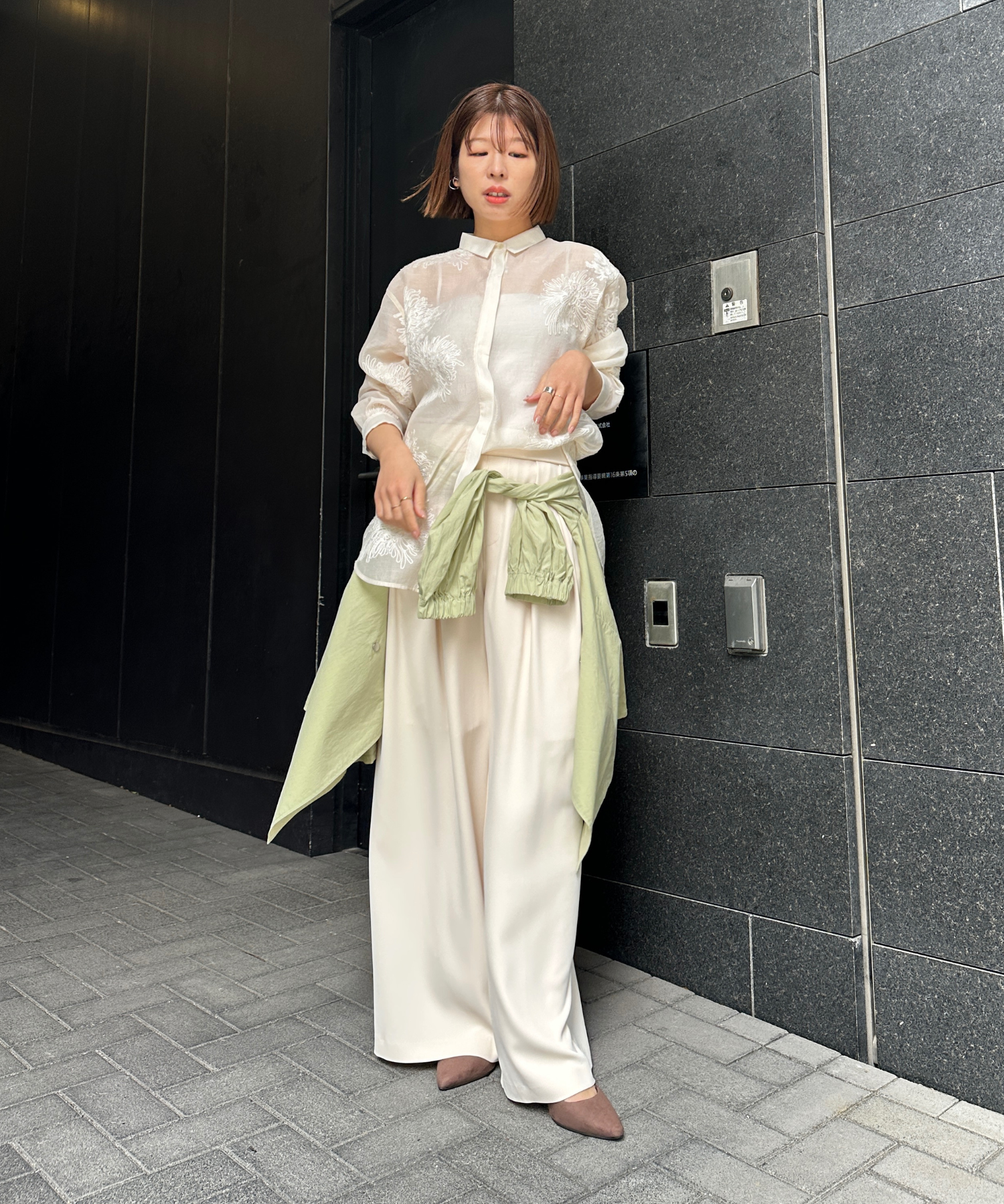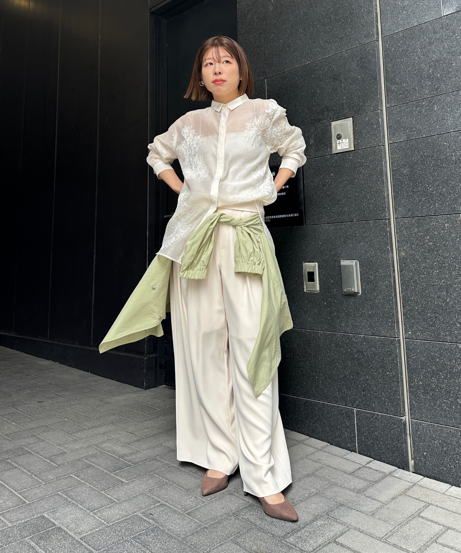ブラウスやシャツを合わせて、きれいめなスタイリングに。