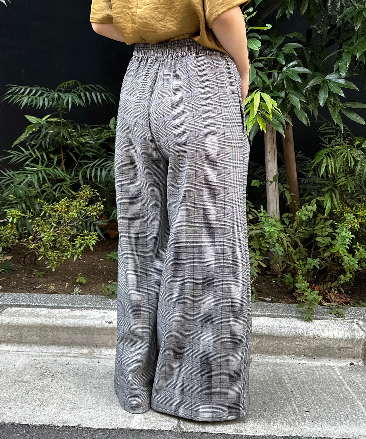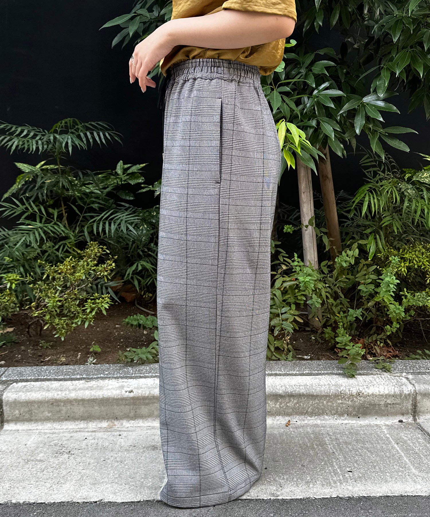 秋らしいグレンチェック柄が目を引く、大人のためのストレートパンツ。