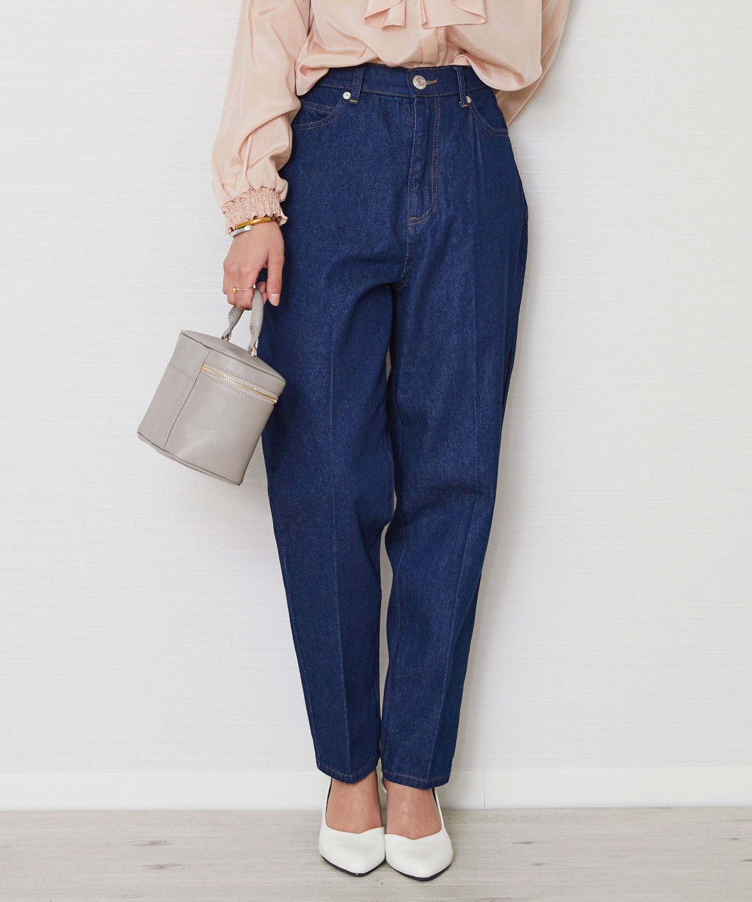ハイウエストでお腹周りのおさまりがよく安心感があり、クロップド丈の短めトップスとも相性◎です。