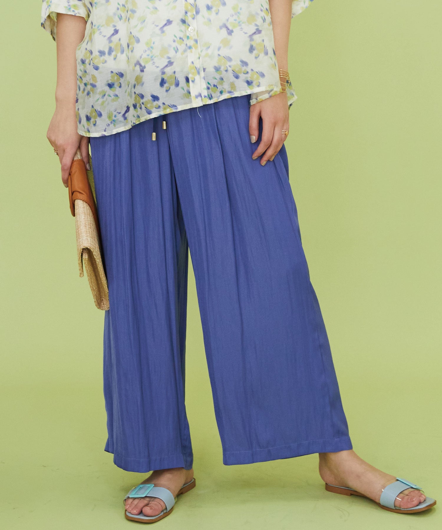 上品な光沢感とドレープ感が美しいリラックス感満載のワイドパンツ。