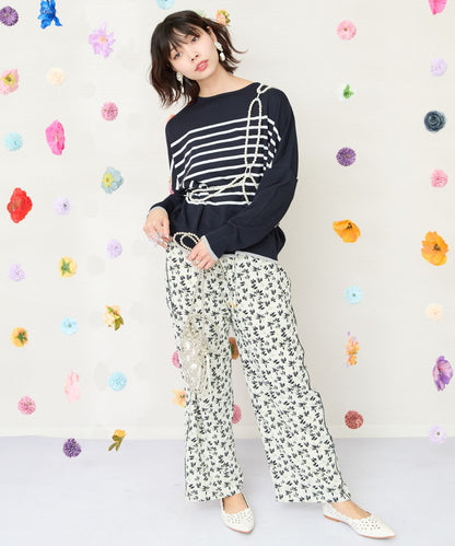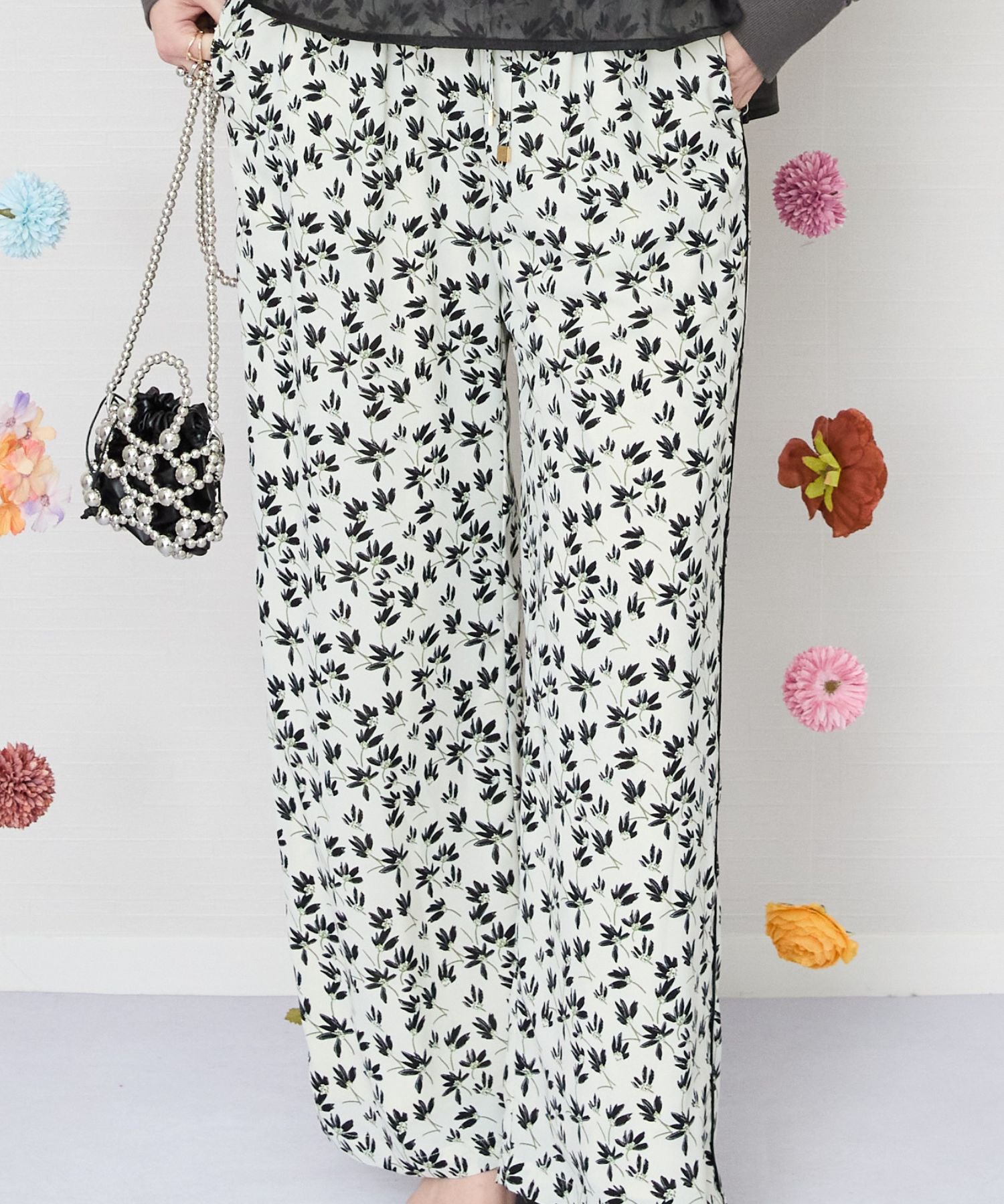 モノトーンのデイジープリントに、花の色に合わせたサイドラインがアクセントに。