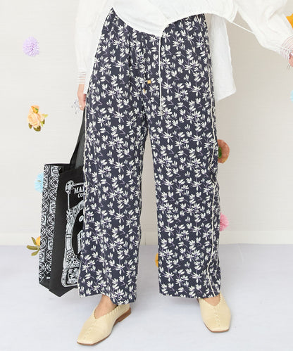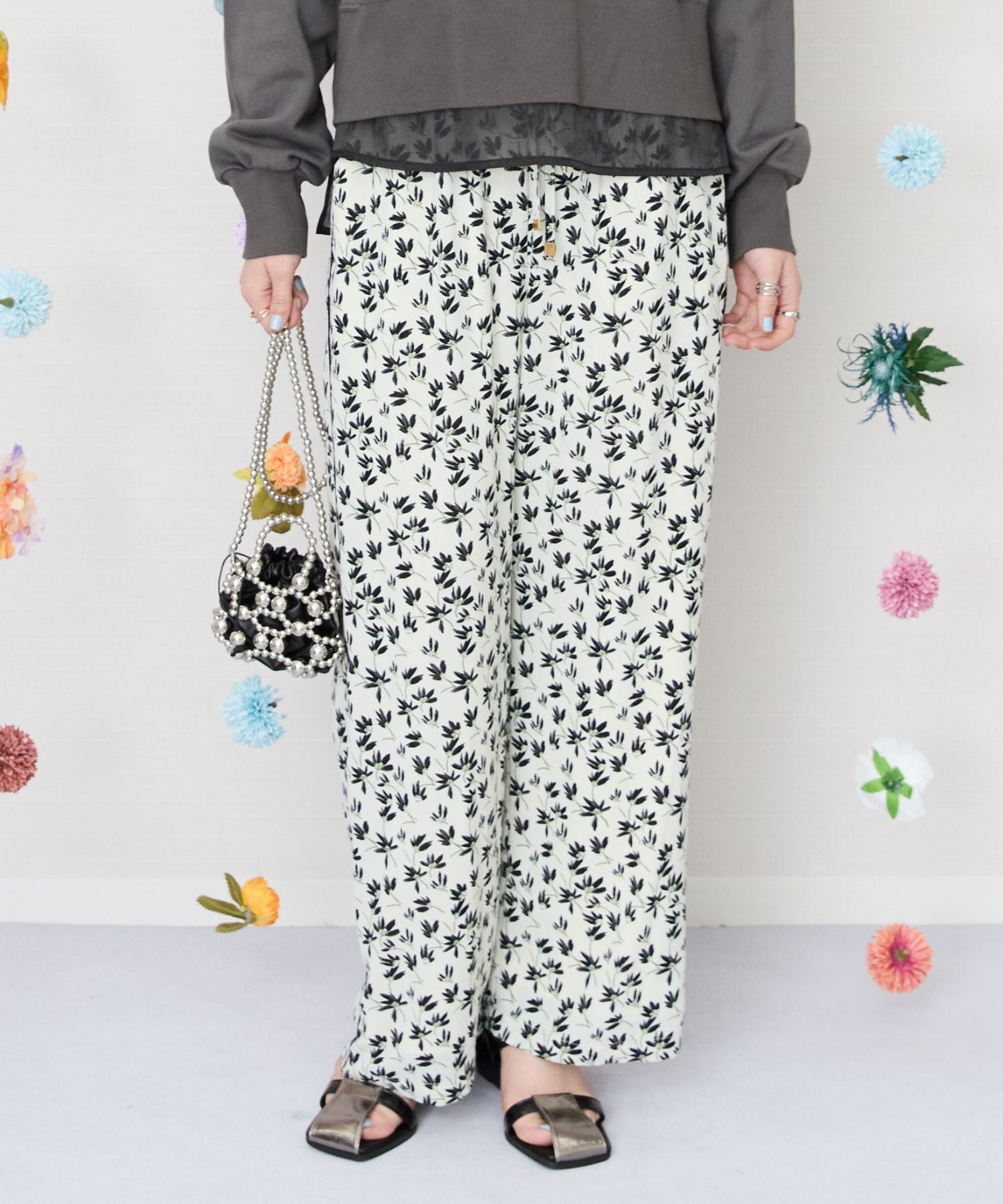さらりとした肌触りの良い素材と、ウエストゴム仕様で快適な履き心地が魅力。