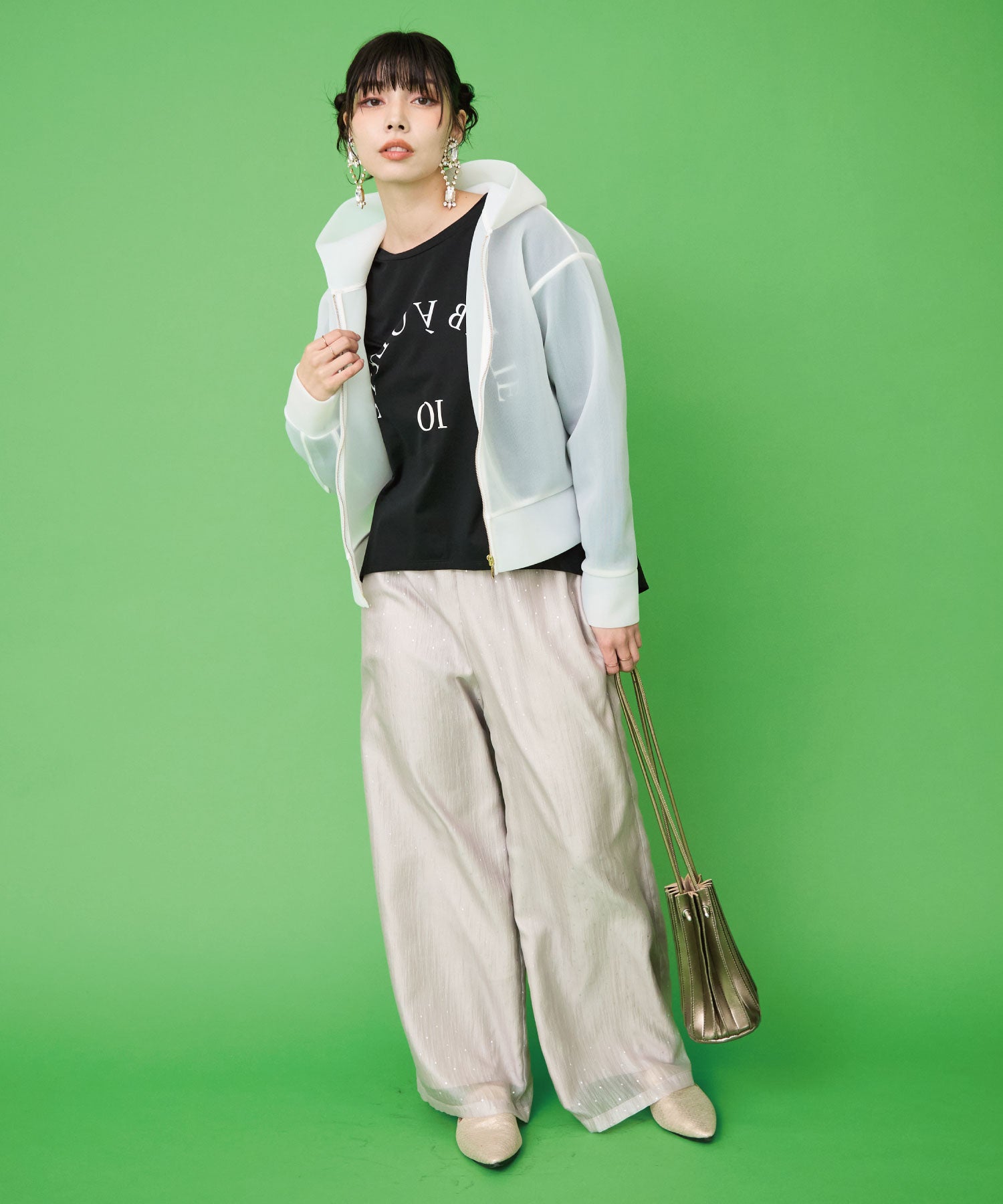 さらりとした落ち感と程よい透け感が魅力のソフトオーガンジー素材。