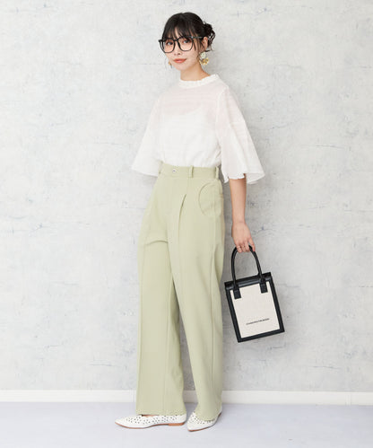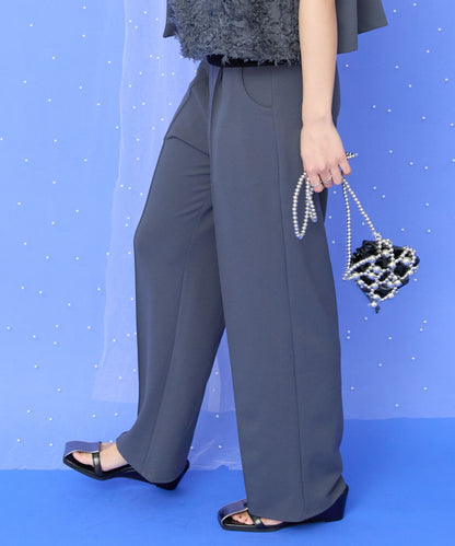 半円デザインのポケットがさりげなく映える、洗練されたストレートパンツ。