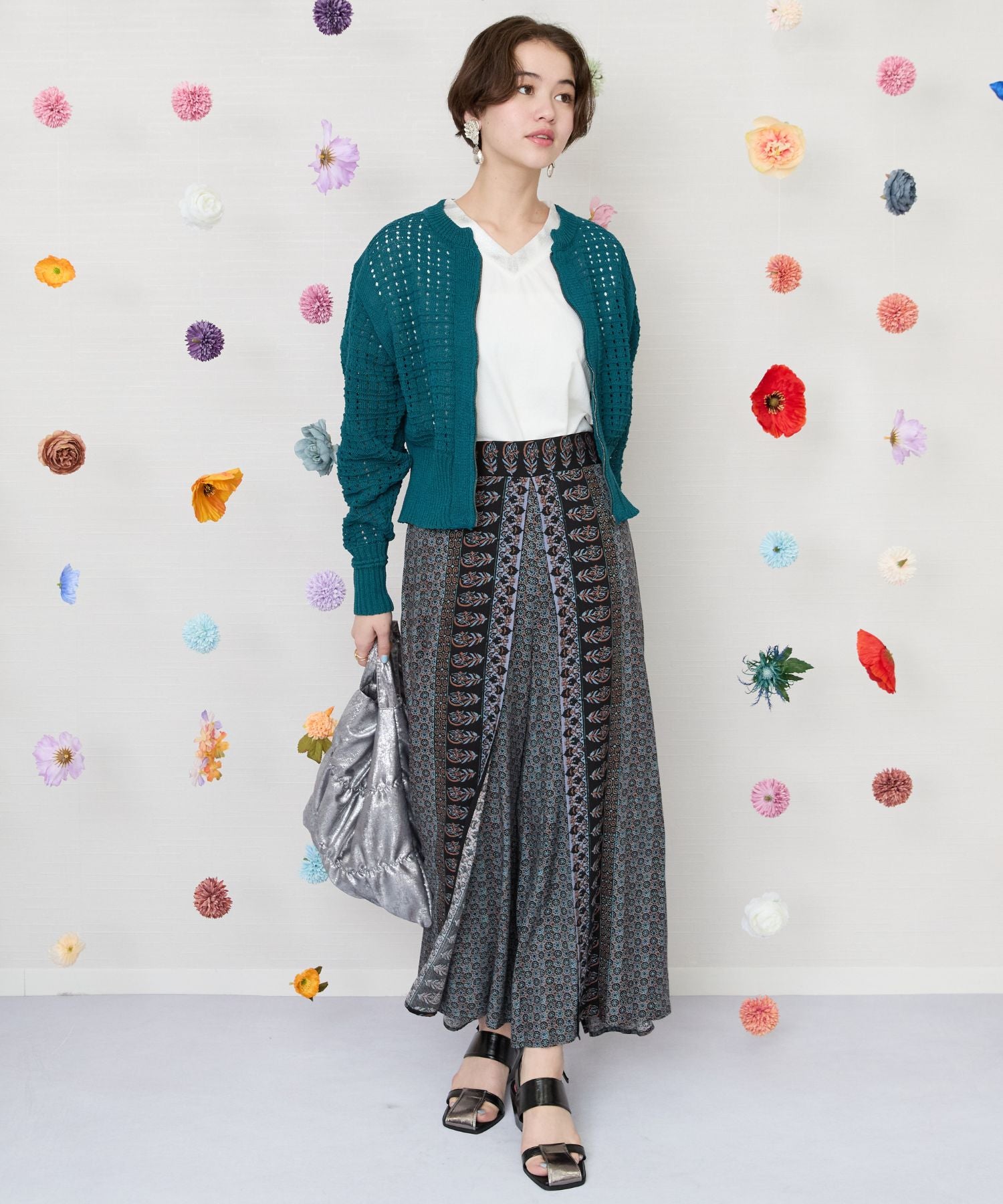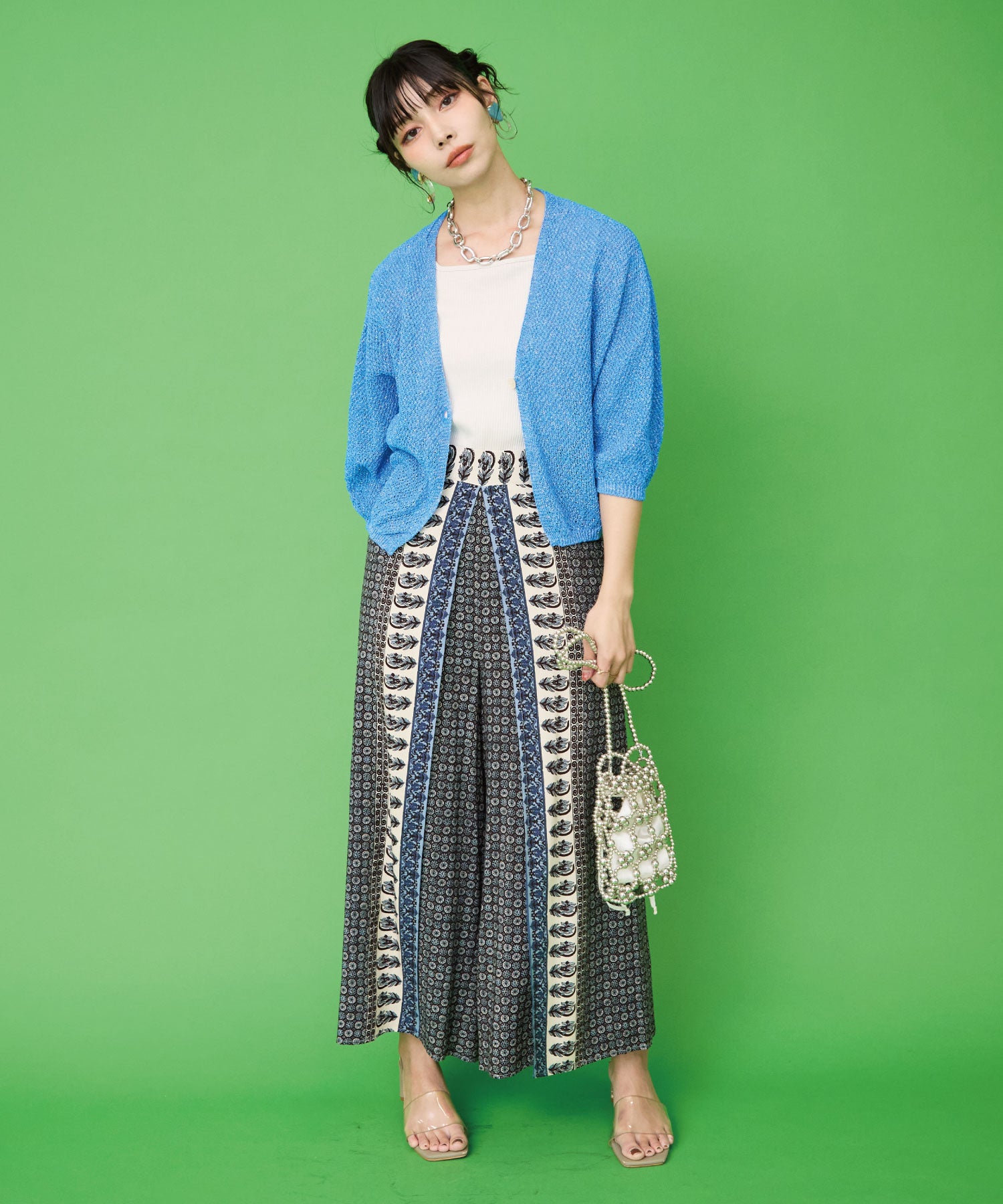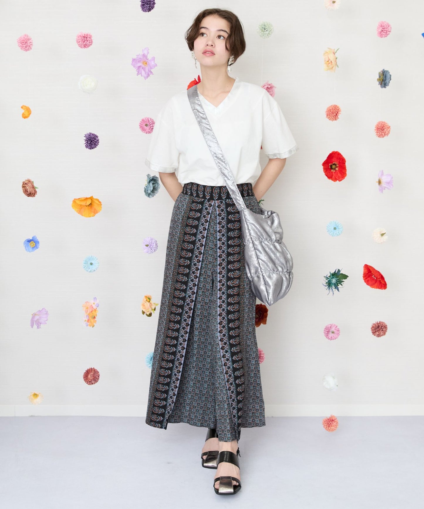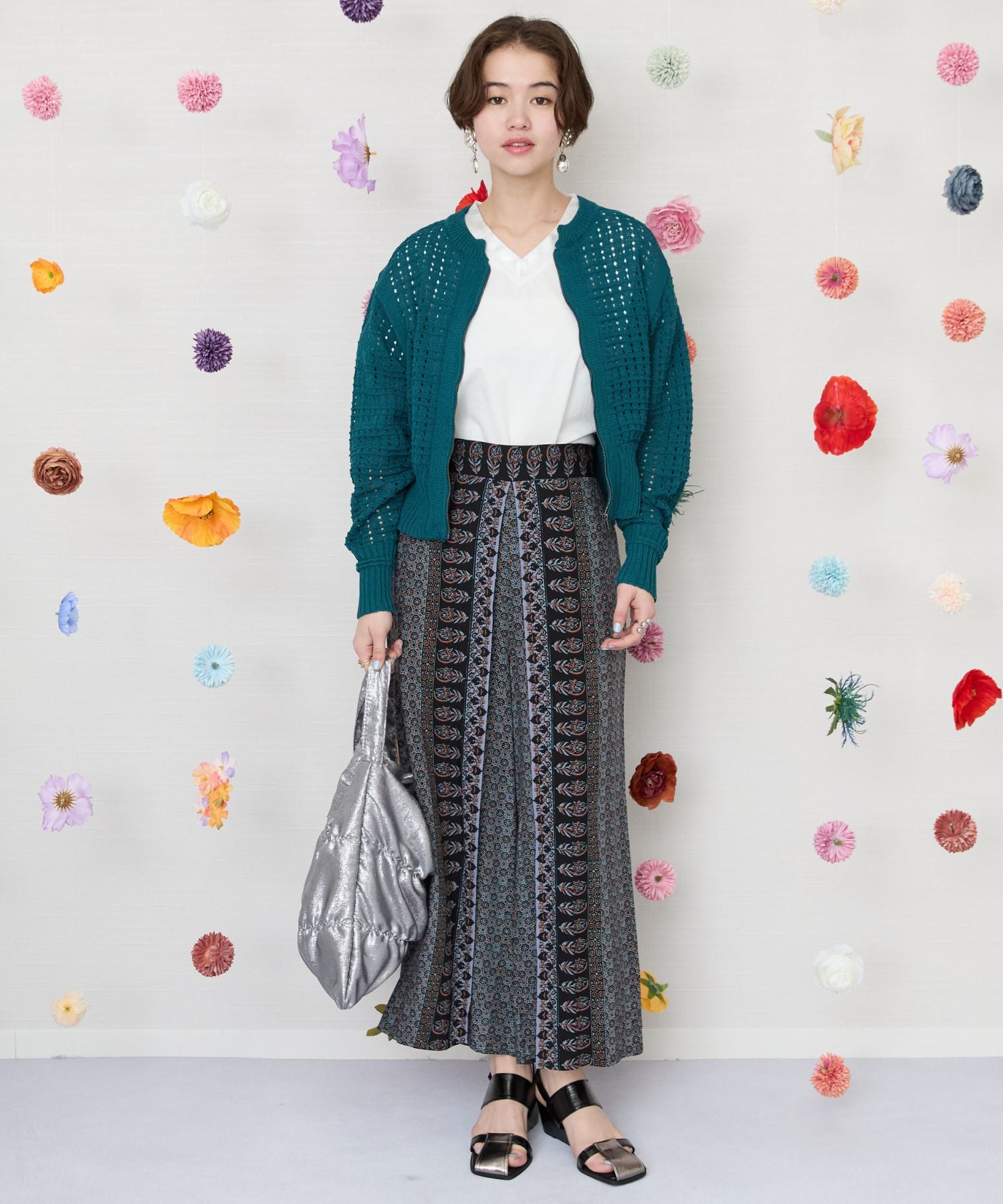 縦のラインを強調するパネルプリントが脚長効果を演出。