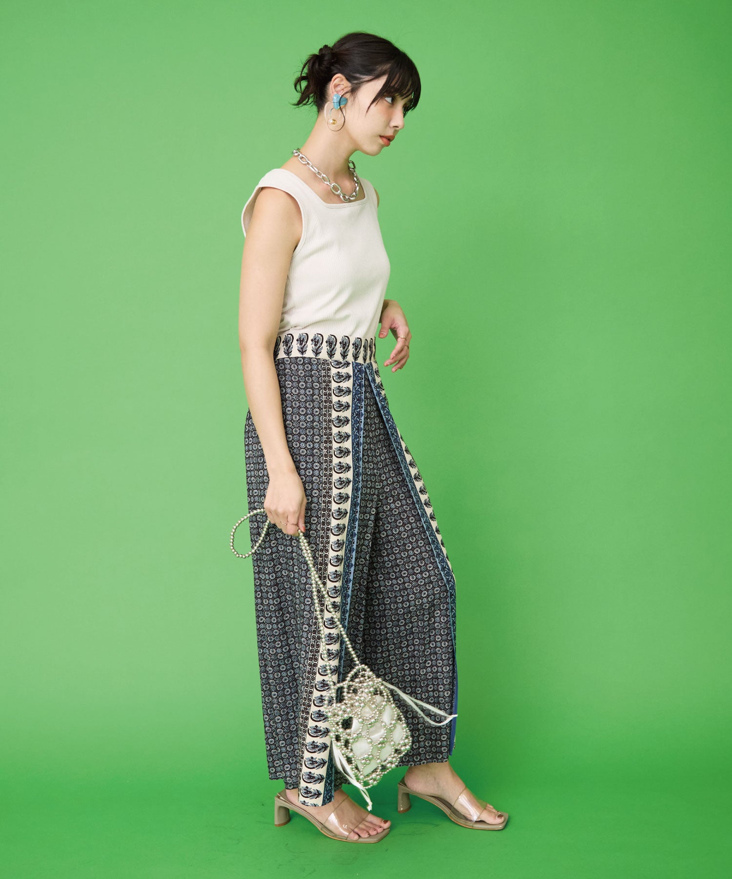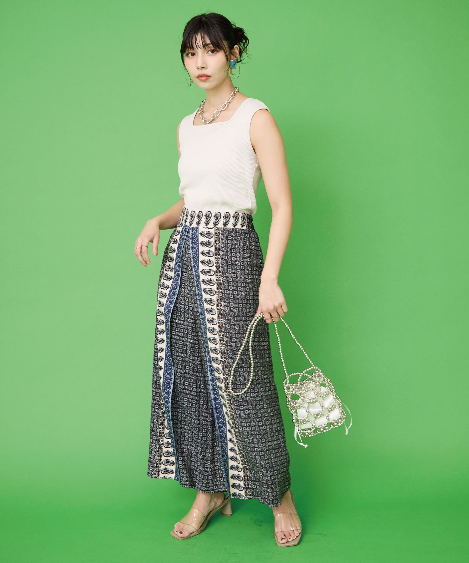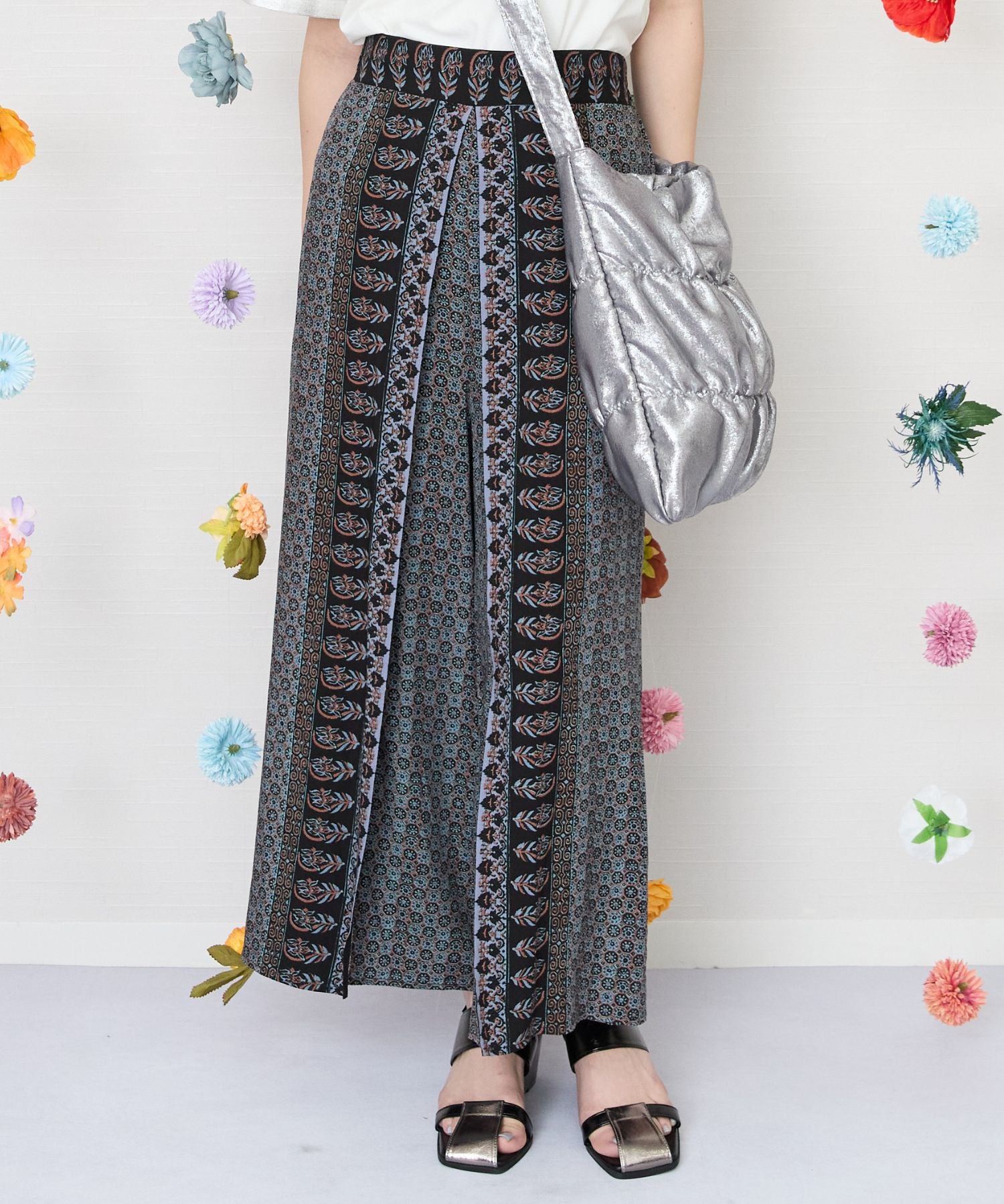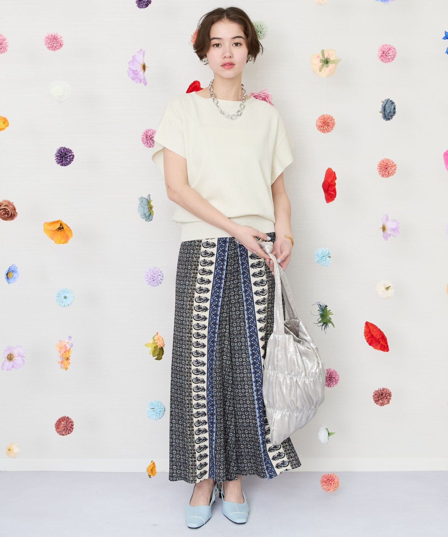縦のラインを強調するパネルプリントが脚長効果を演出。