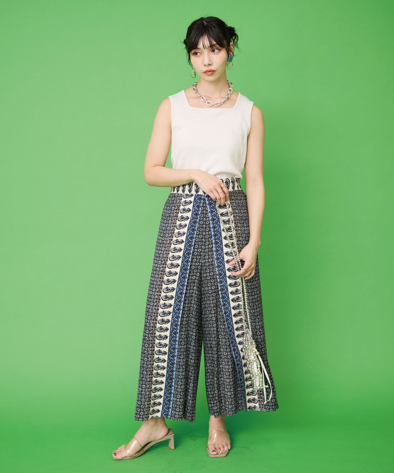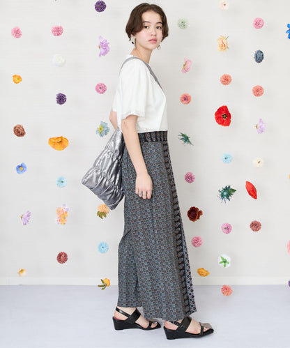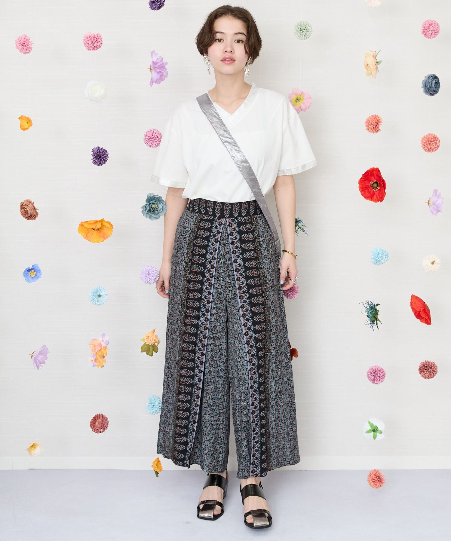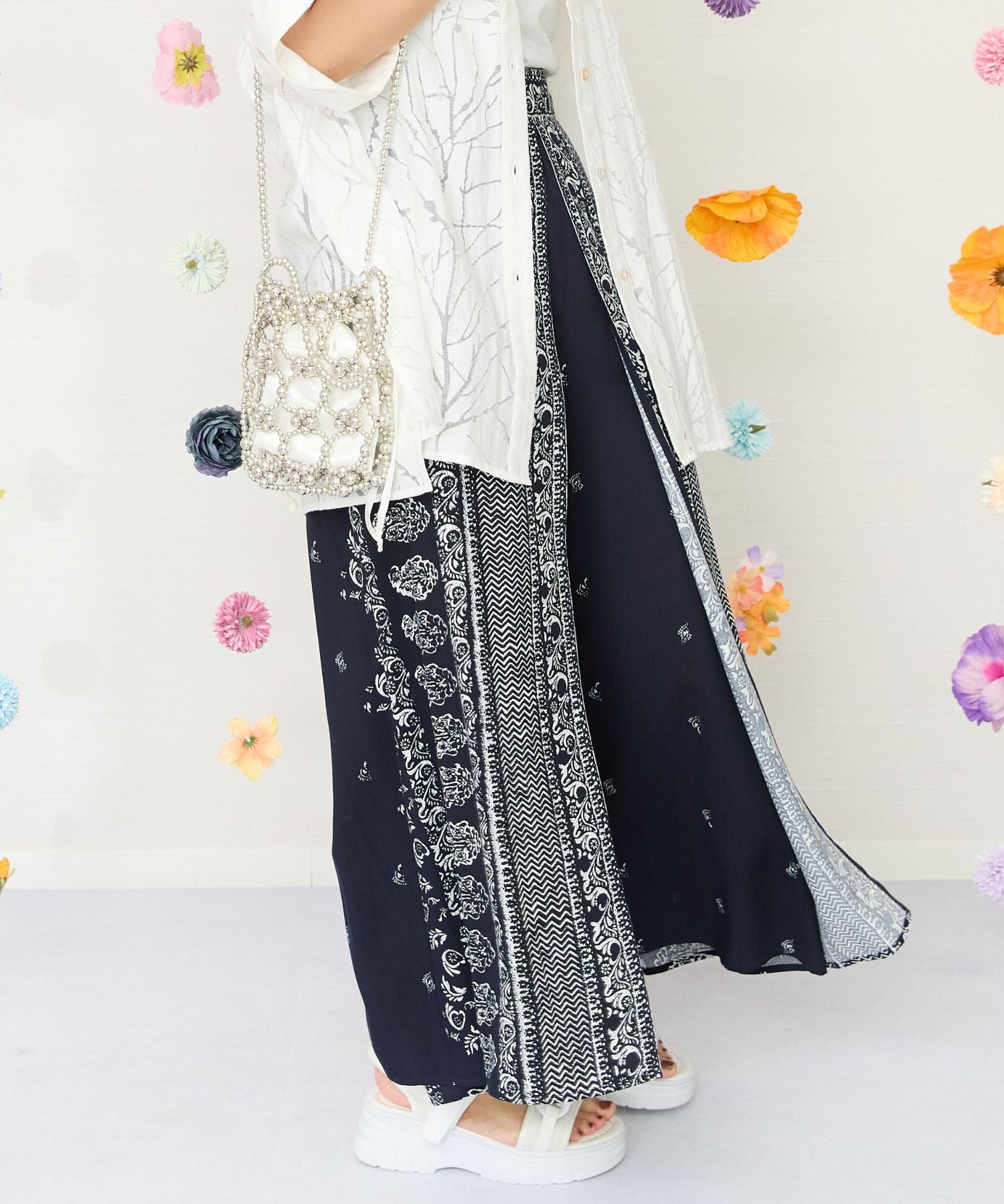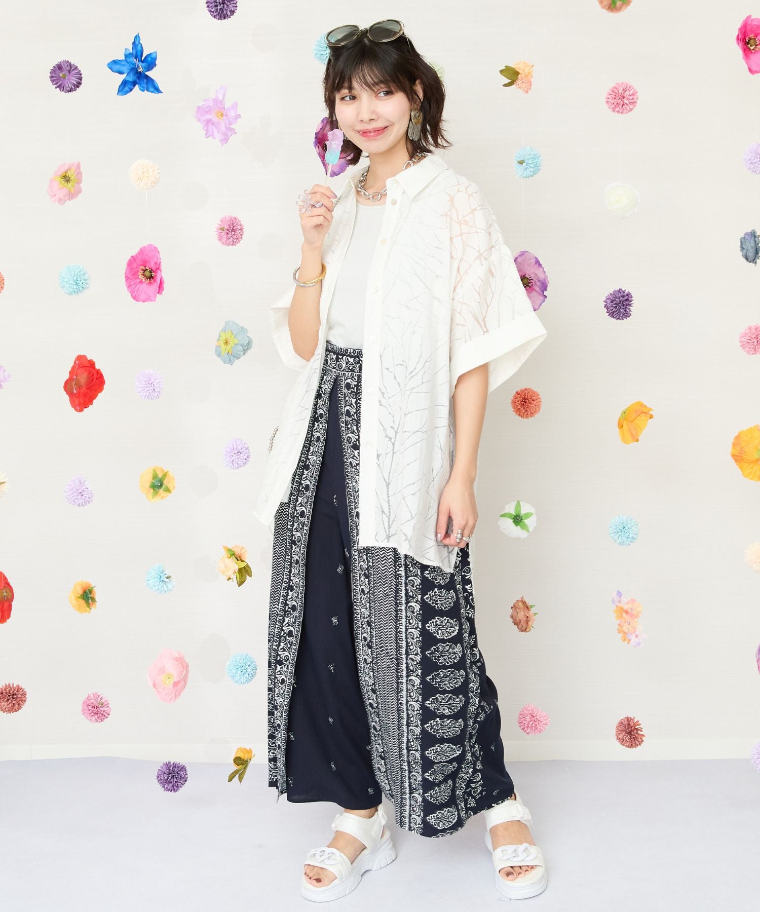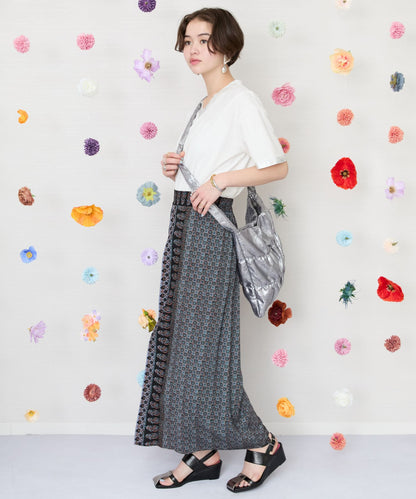 縦のラインを強調するパネルプリントが脚長効果を演出。