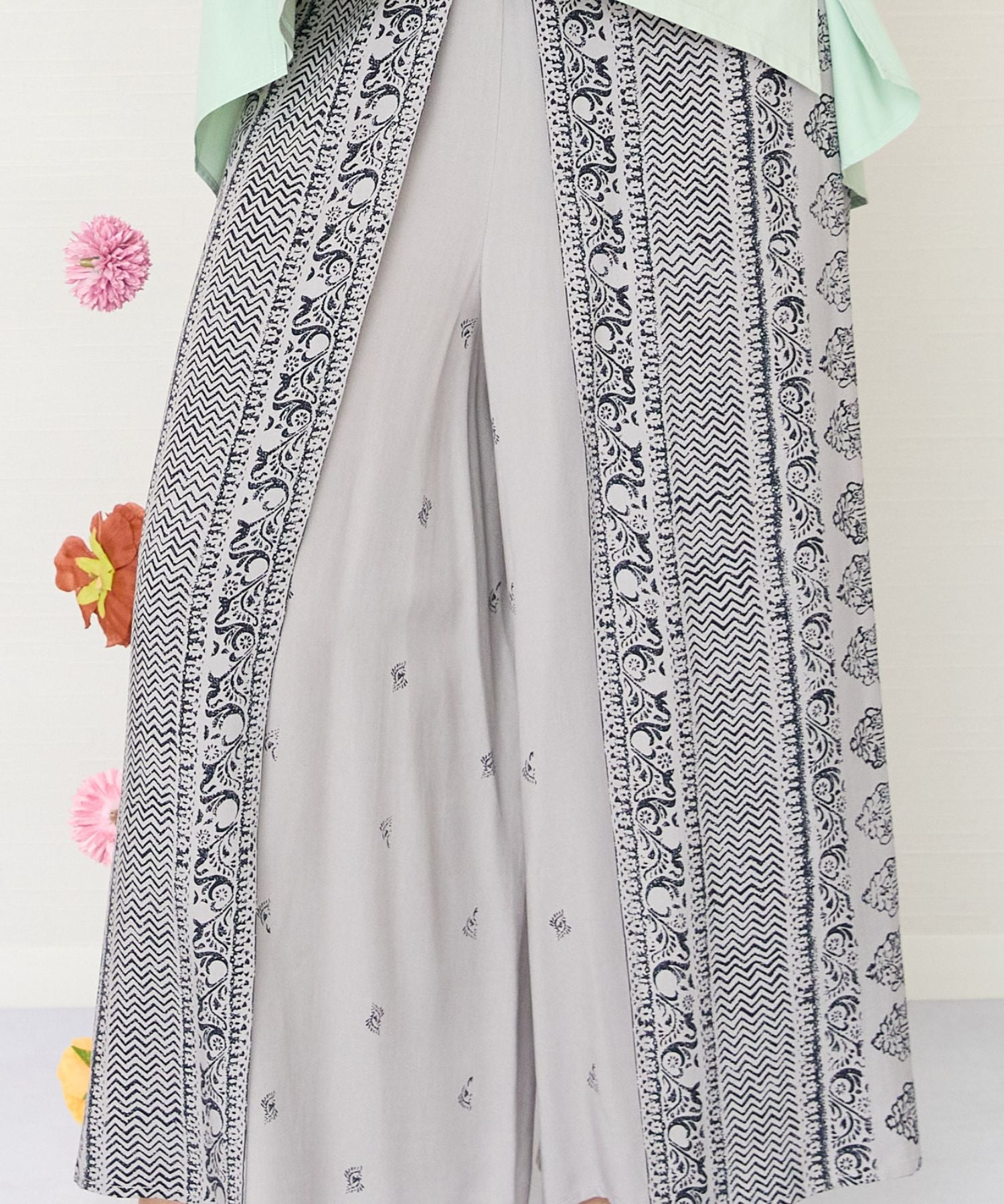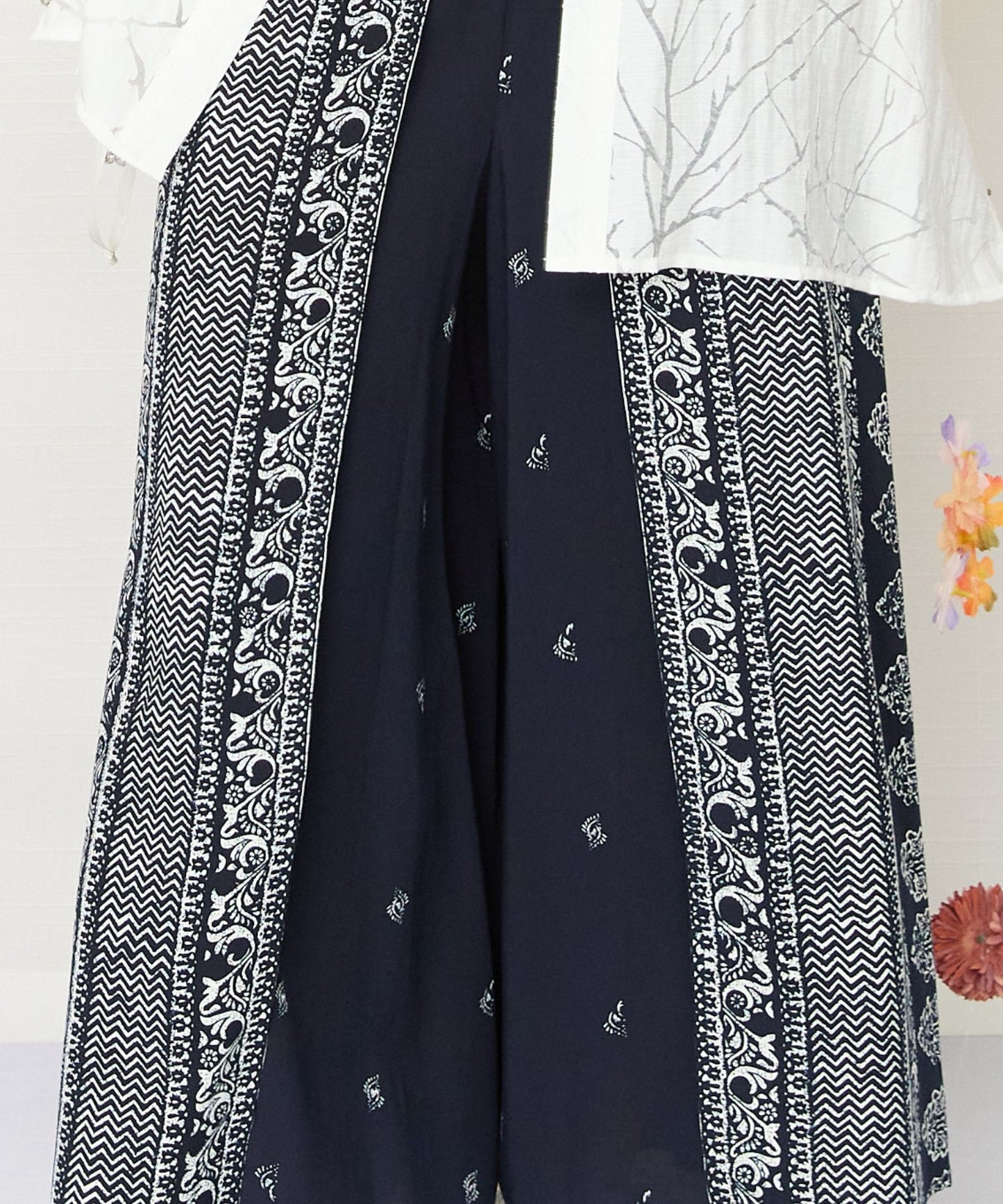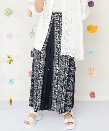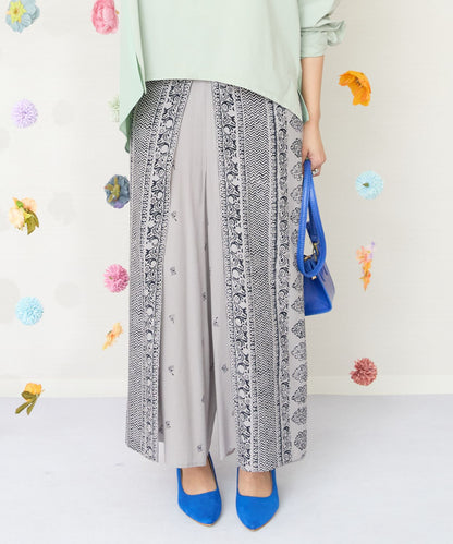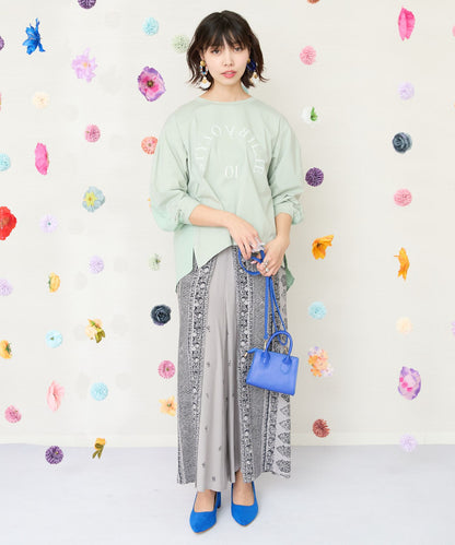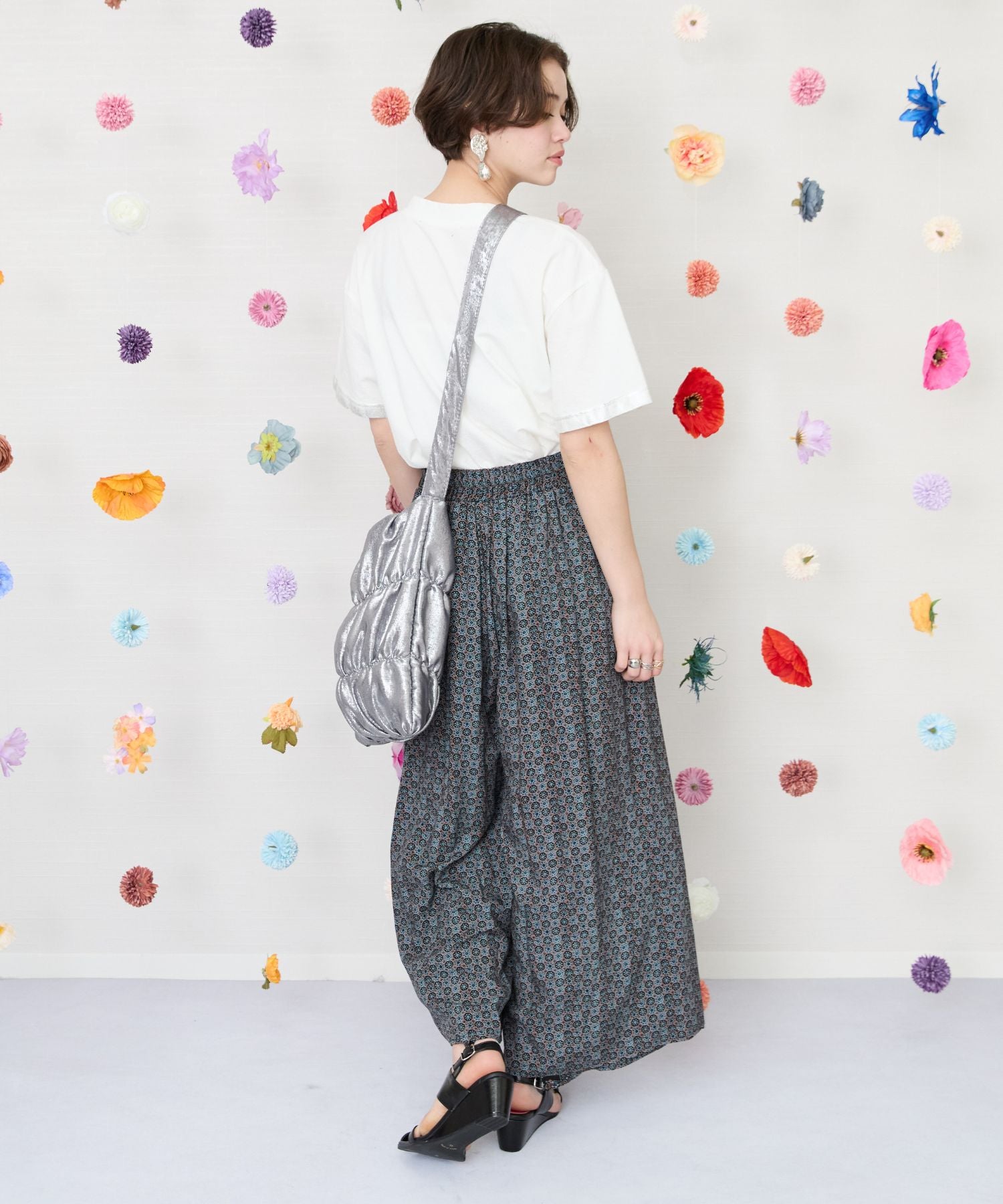 縦のラインを強調するパネルプリントが脚長効果を演出。
