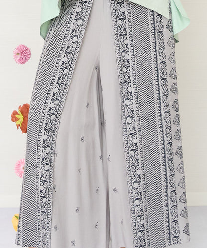 今季はブラックとブルーのジオメトリックとグレーとネイビーのブロックプリントの計4色展開です。