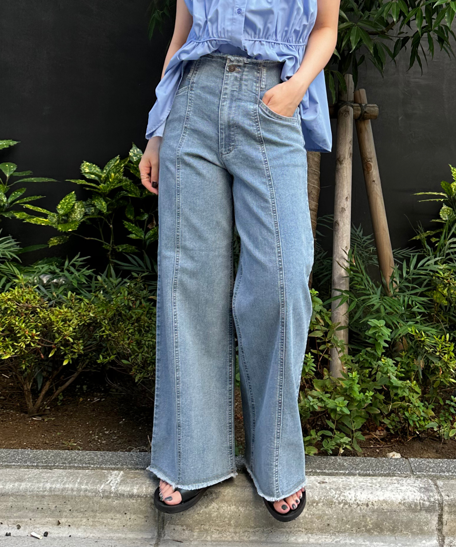 【切り替えデザインがアクセント、こなれ感漂うワイドデニム】