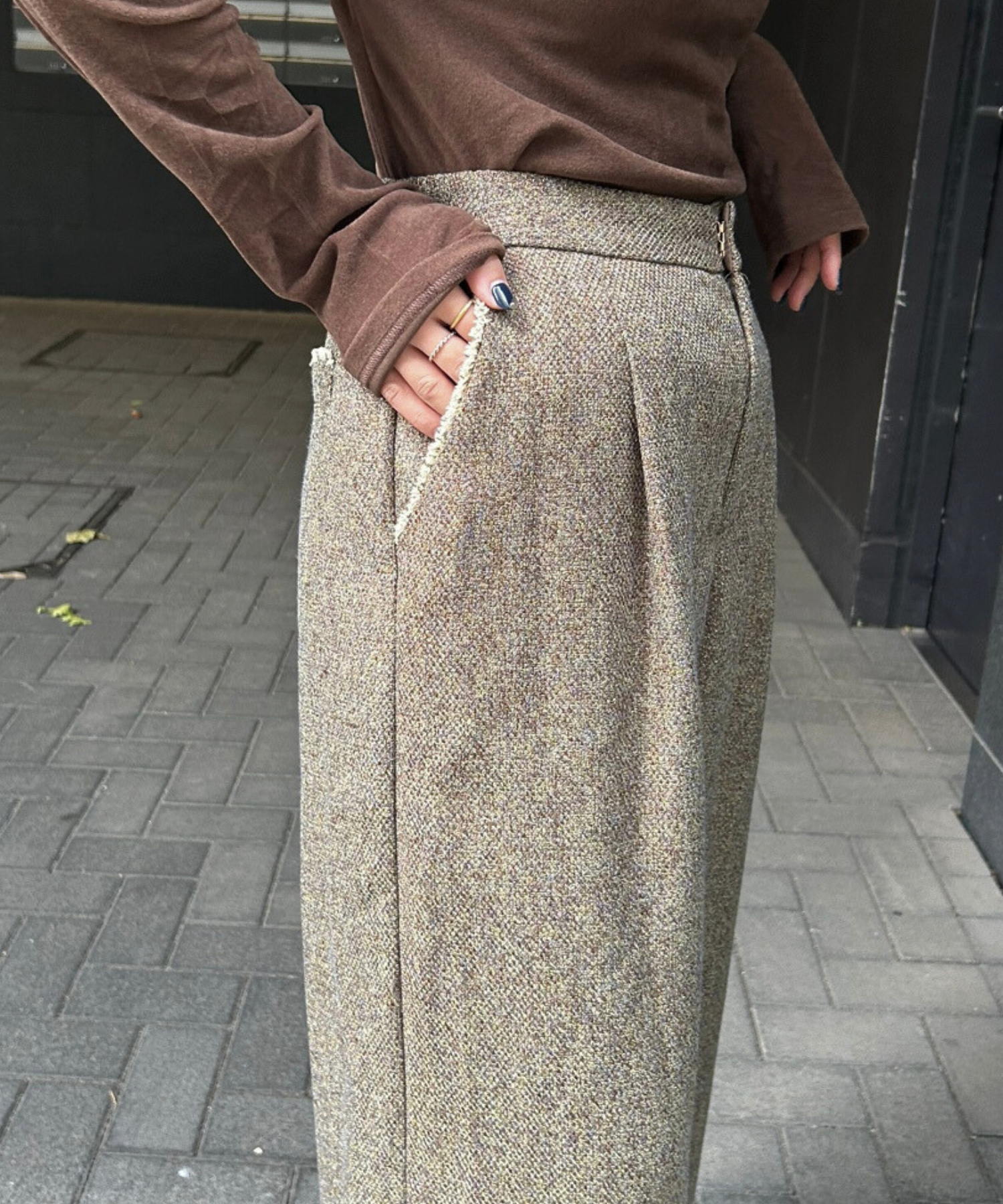 #ツイードパンツ #フリンジデザイン #ワイドパンツ #秋冬コーデ #きれいめカジュアル #大人スタイル#JETSETSOLOPLUS