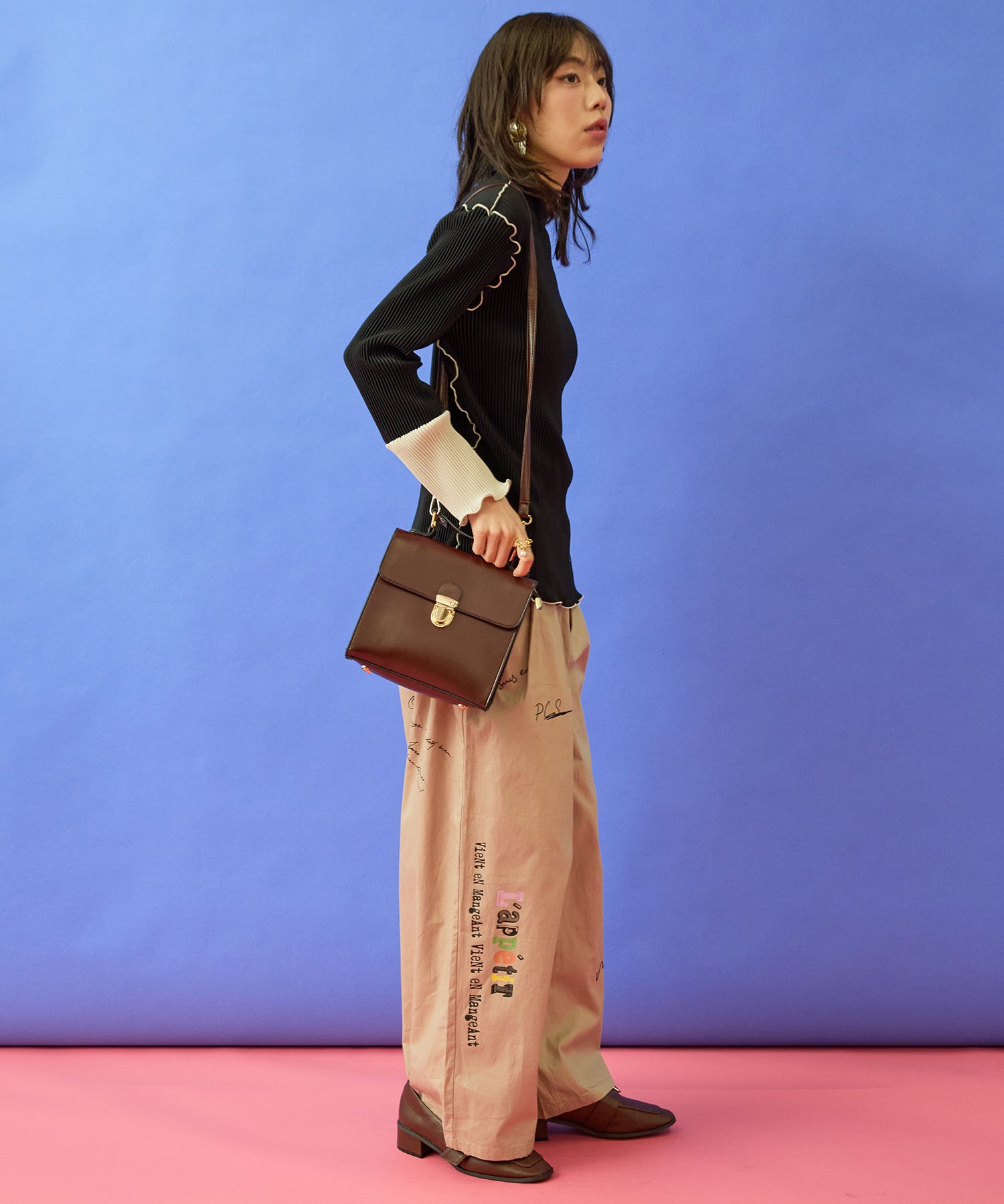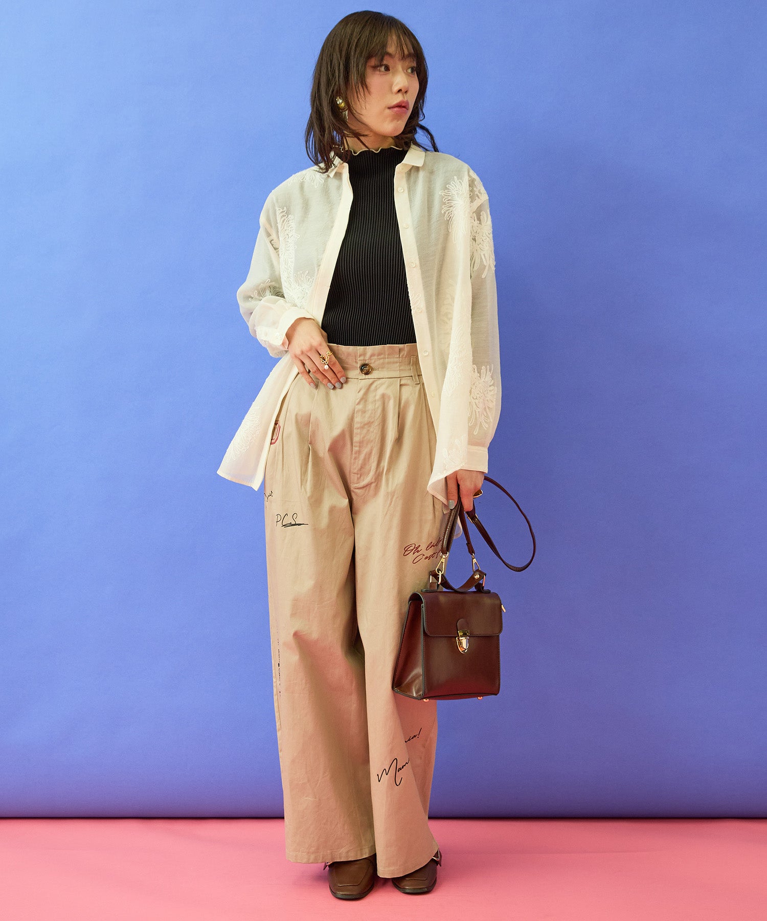 シャツやブラウスと合わせて、きれいめカジュアルに。