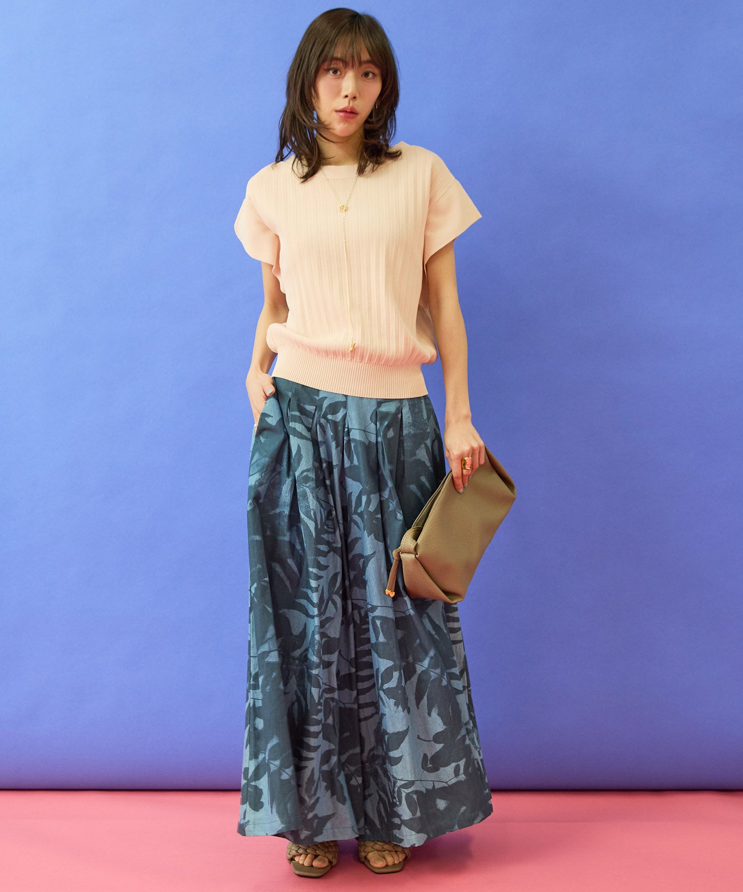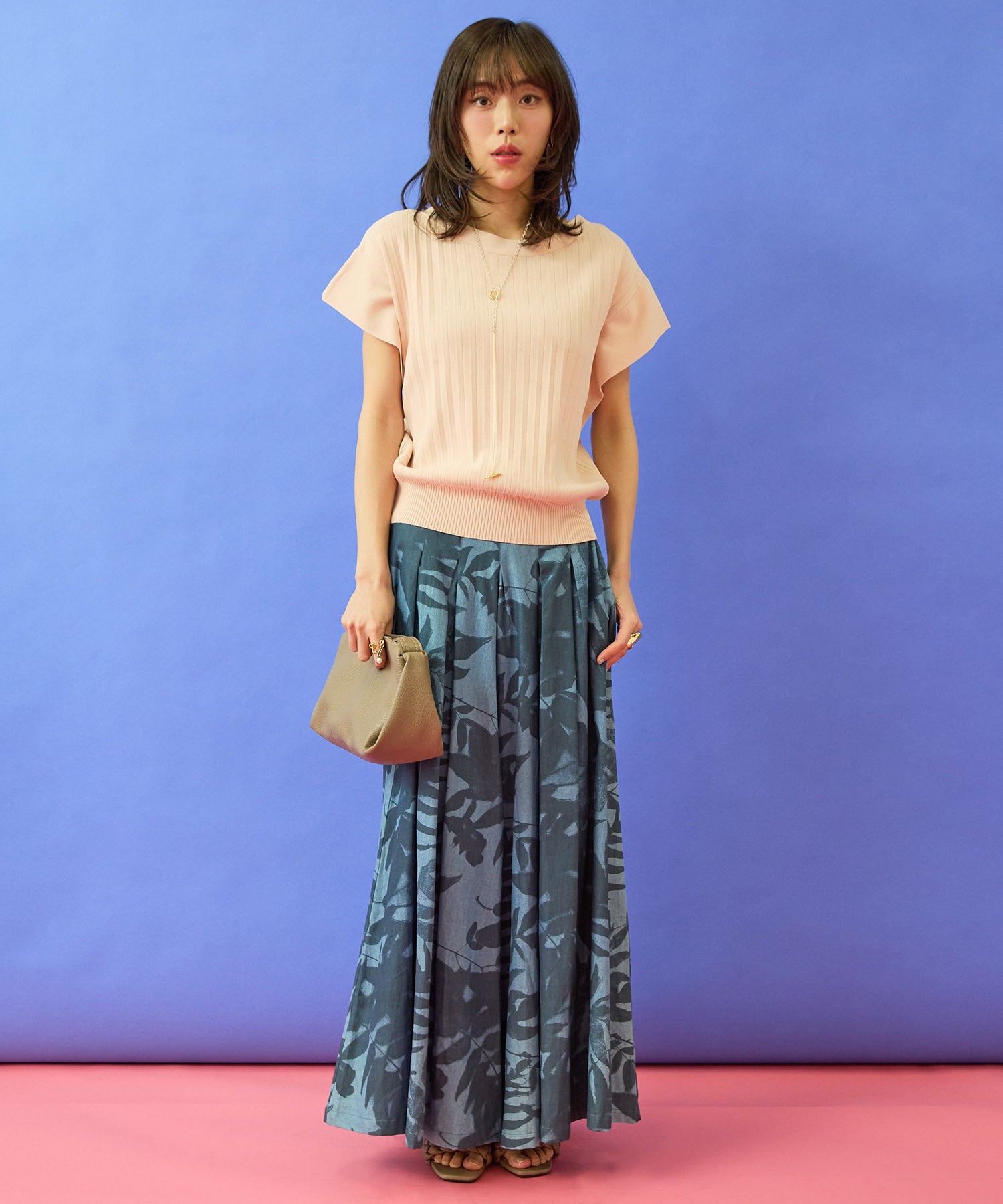 動くたびに表情が生まれ、シンプルなトップス合わせでも印象的なスタイルに。