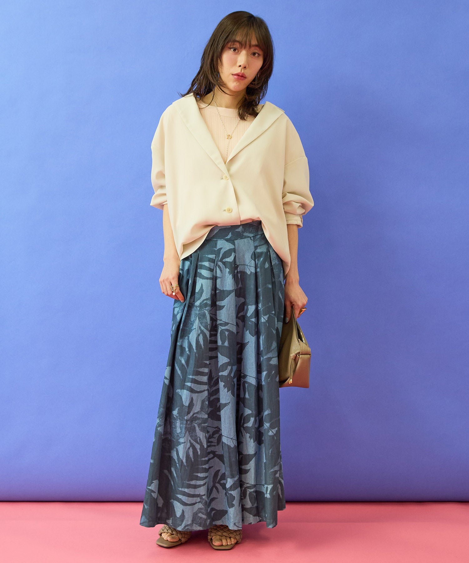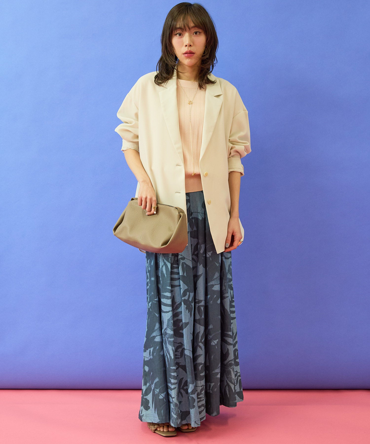 落ち着いた色合いと広がりのあるシルエットが、大人らしい余裕を感じさせます。