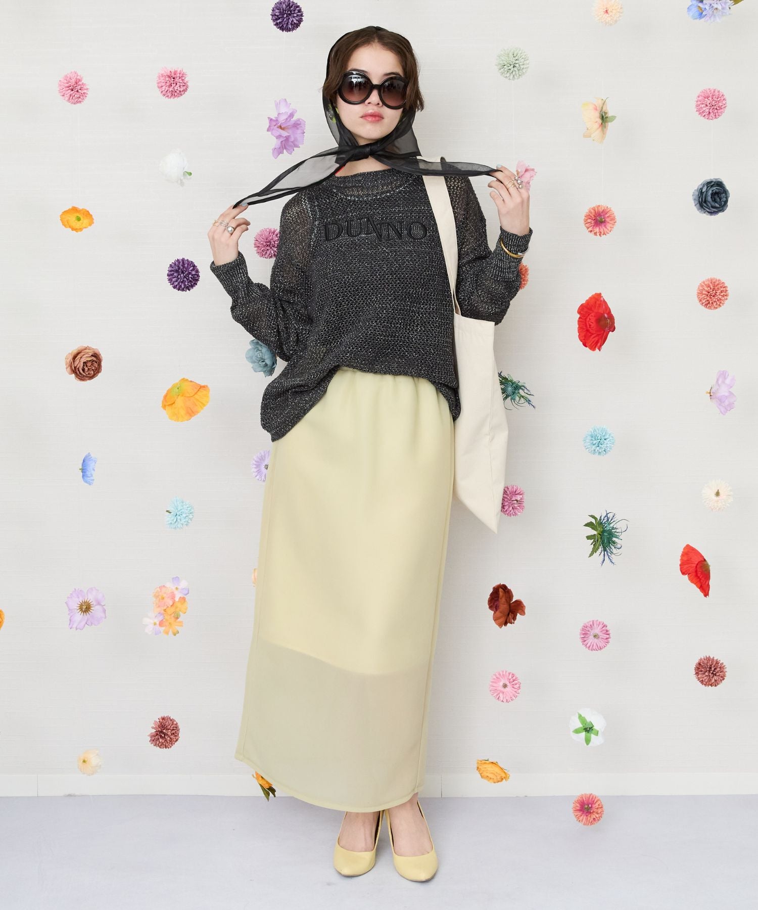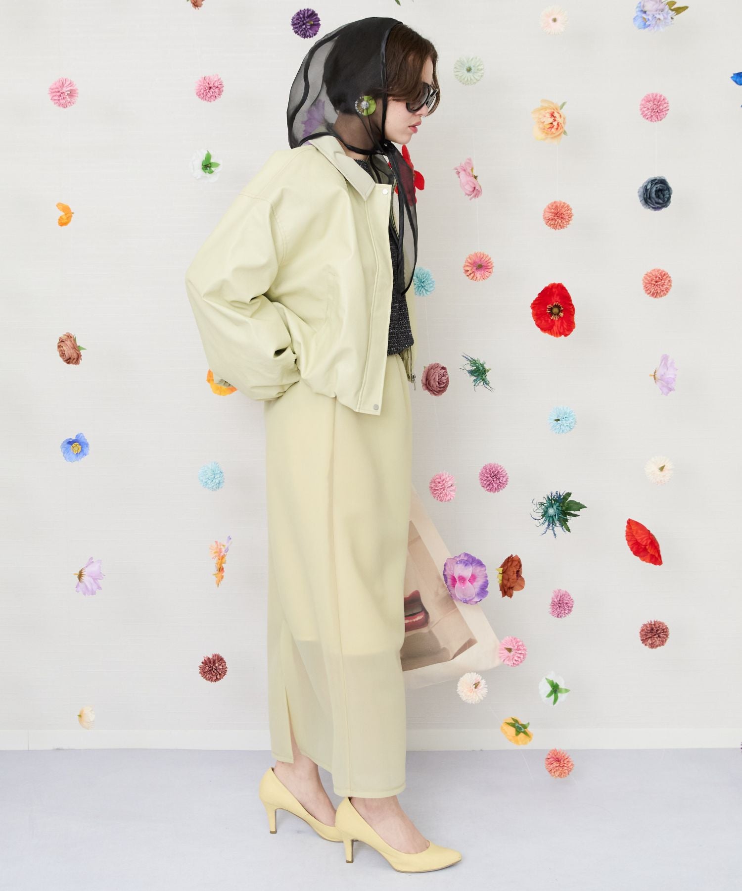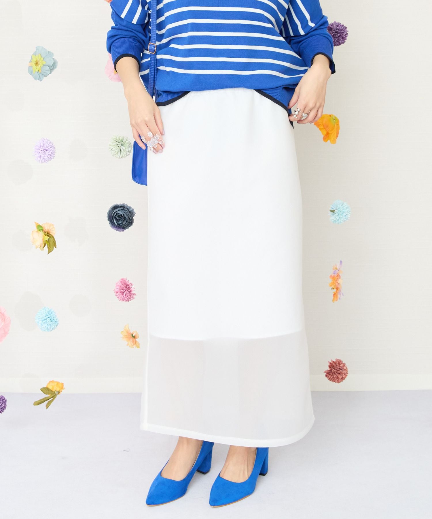 透け感と立体的なフォルムが目を惹くのナロースカート。