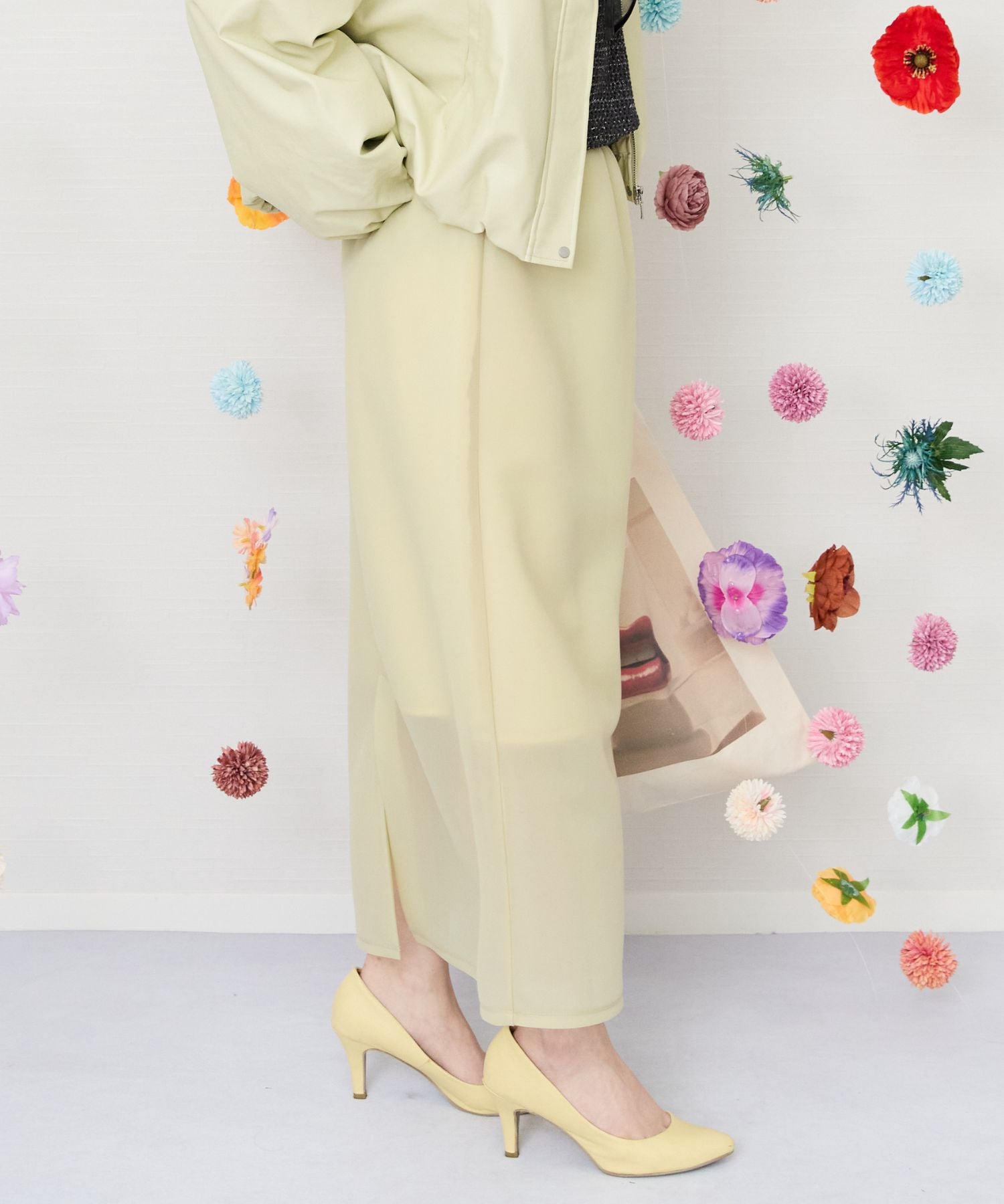 動きやすい深めの後ろスリットと程よく脚が透ける裏地丈が抜け感を演出。