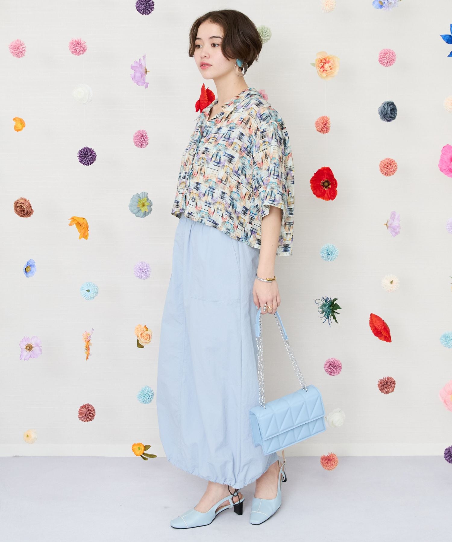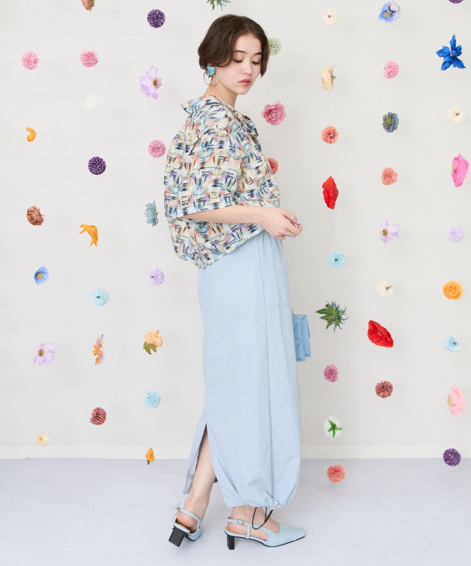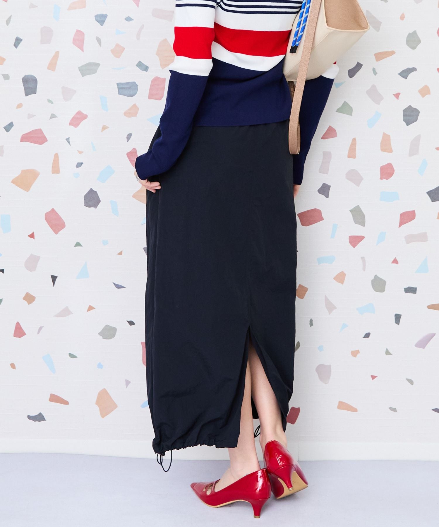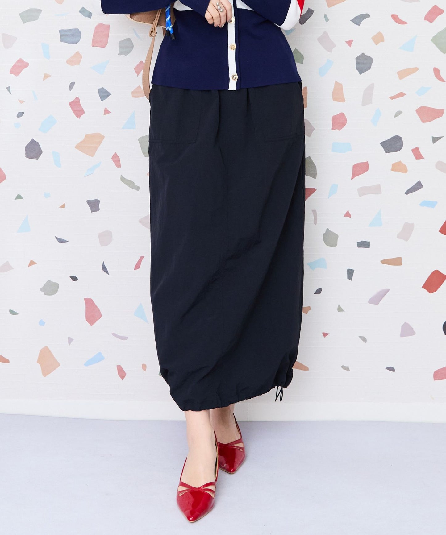 裾のドローコードを絞ればバルーンシルエットになり、違う雰囲気を楽しめます。