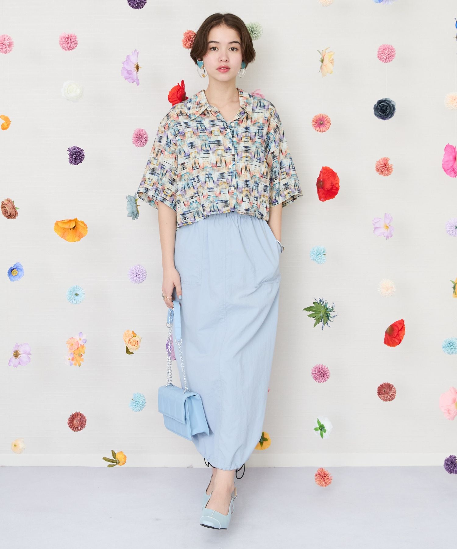 パンツとのレイヤードスタイルにもおすすめな、トレンド感あふれる一枚。