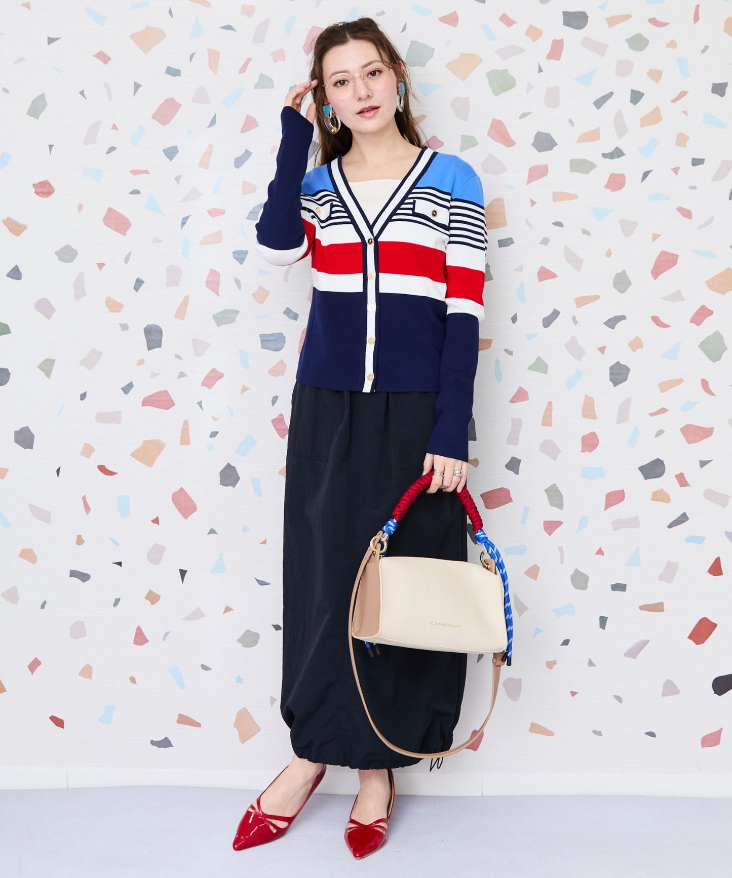 グログラン加工のナイロン素材が、凹凸のある美しい光沢感を生み出し、カジュアルながらも上品な印象に。