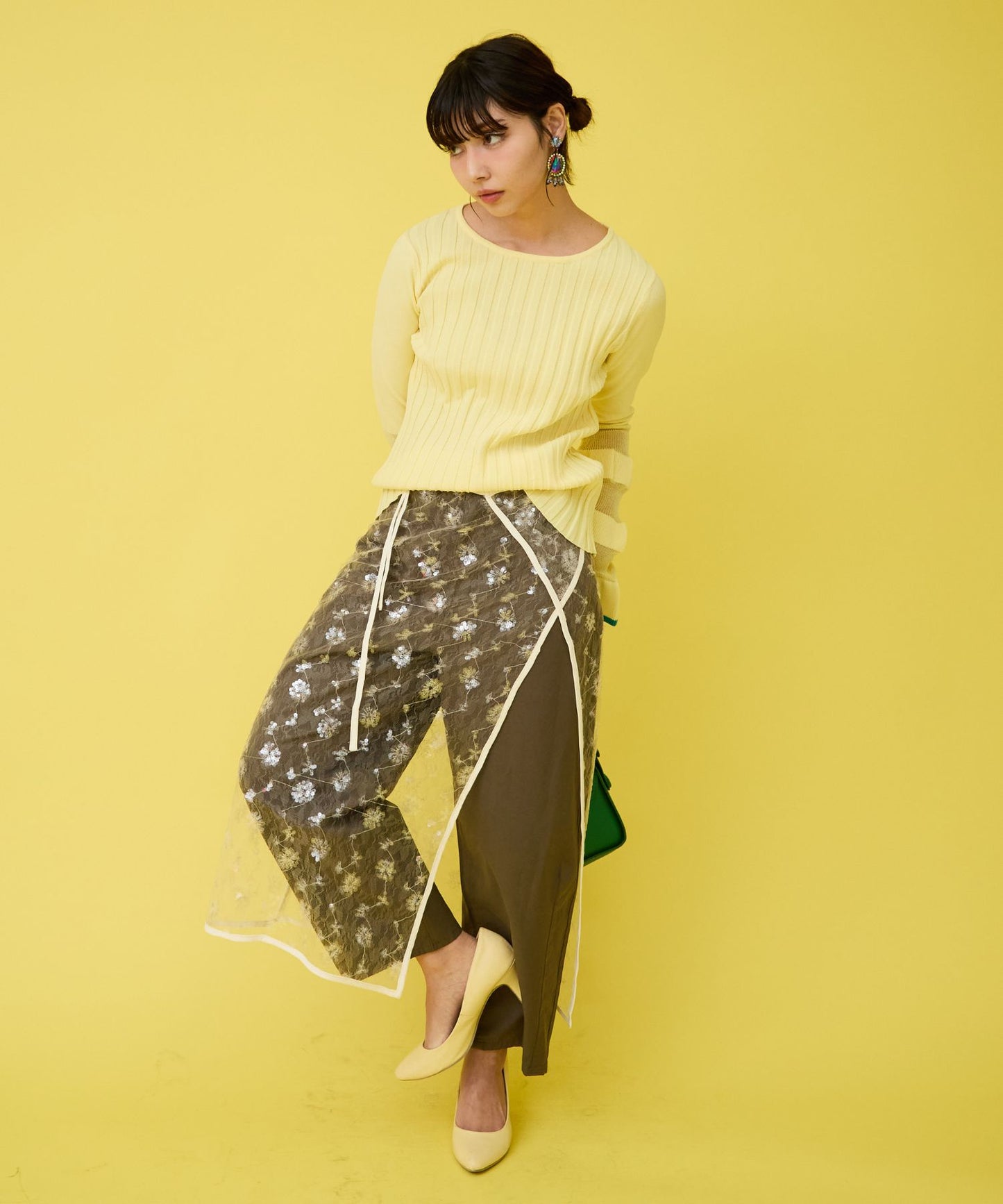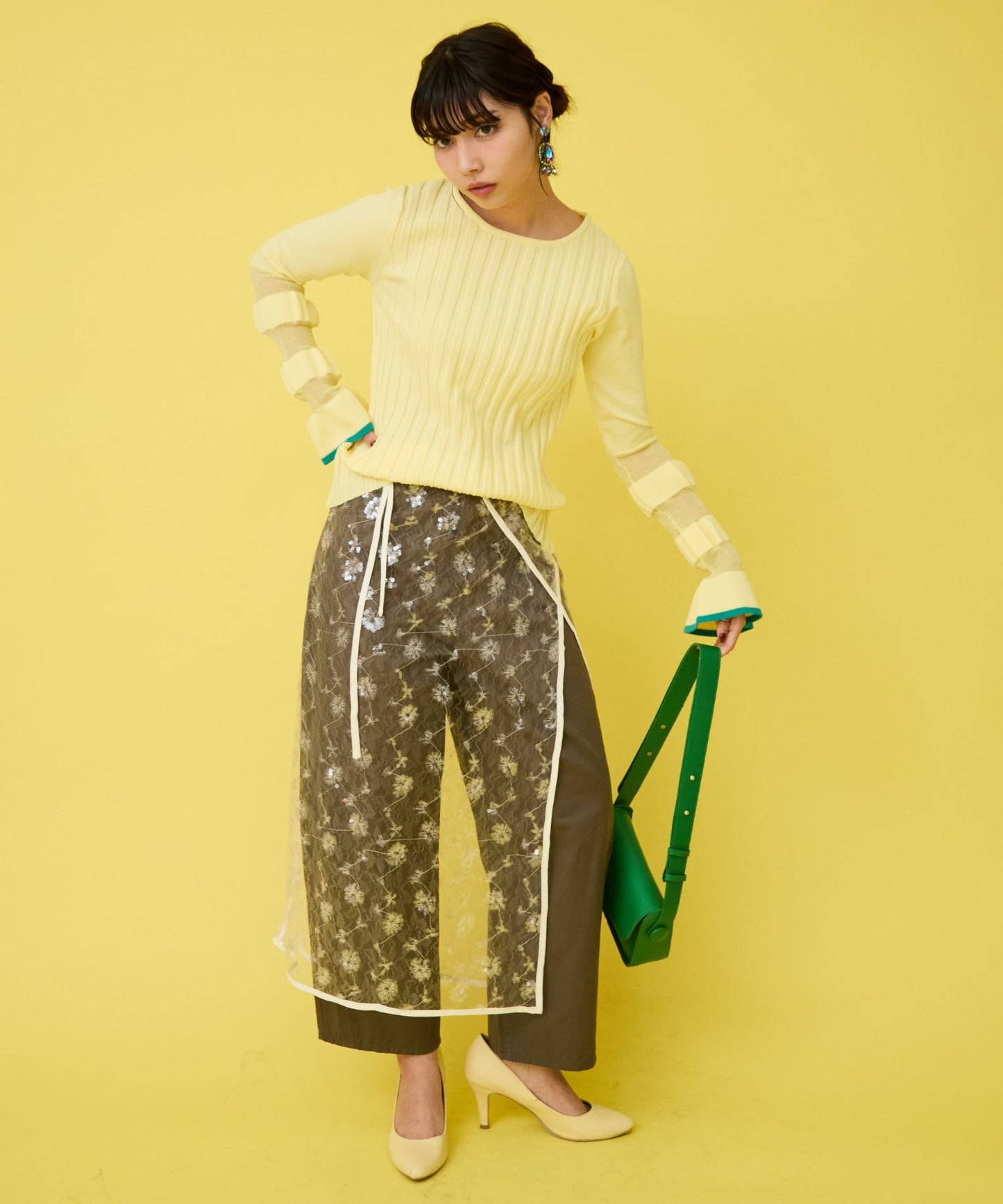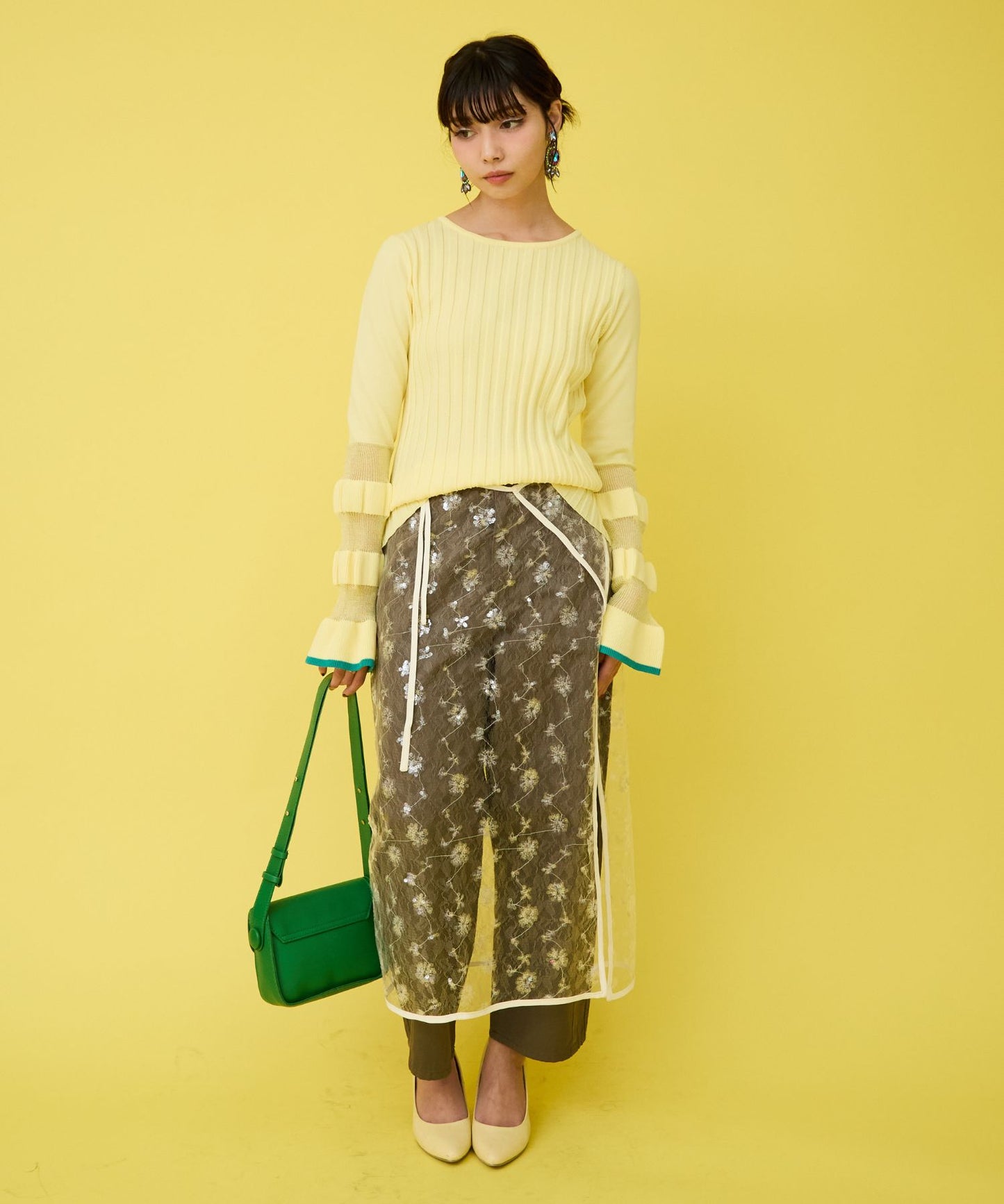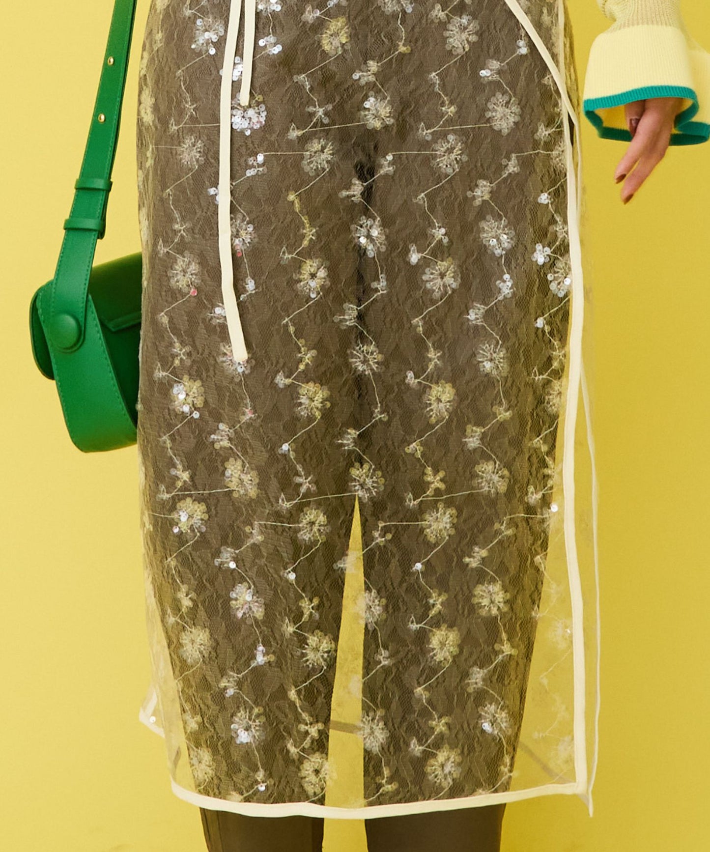 チュール素材にフラワー柄をスパンコール刺繍で表現した、トレンド感溢れるラップスカート。