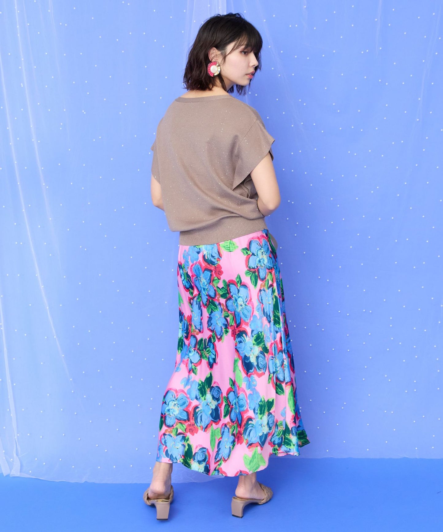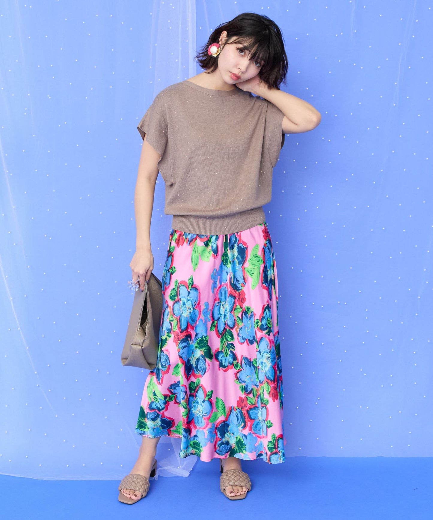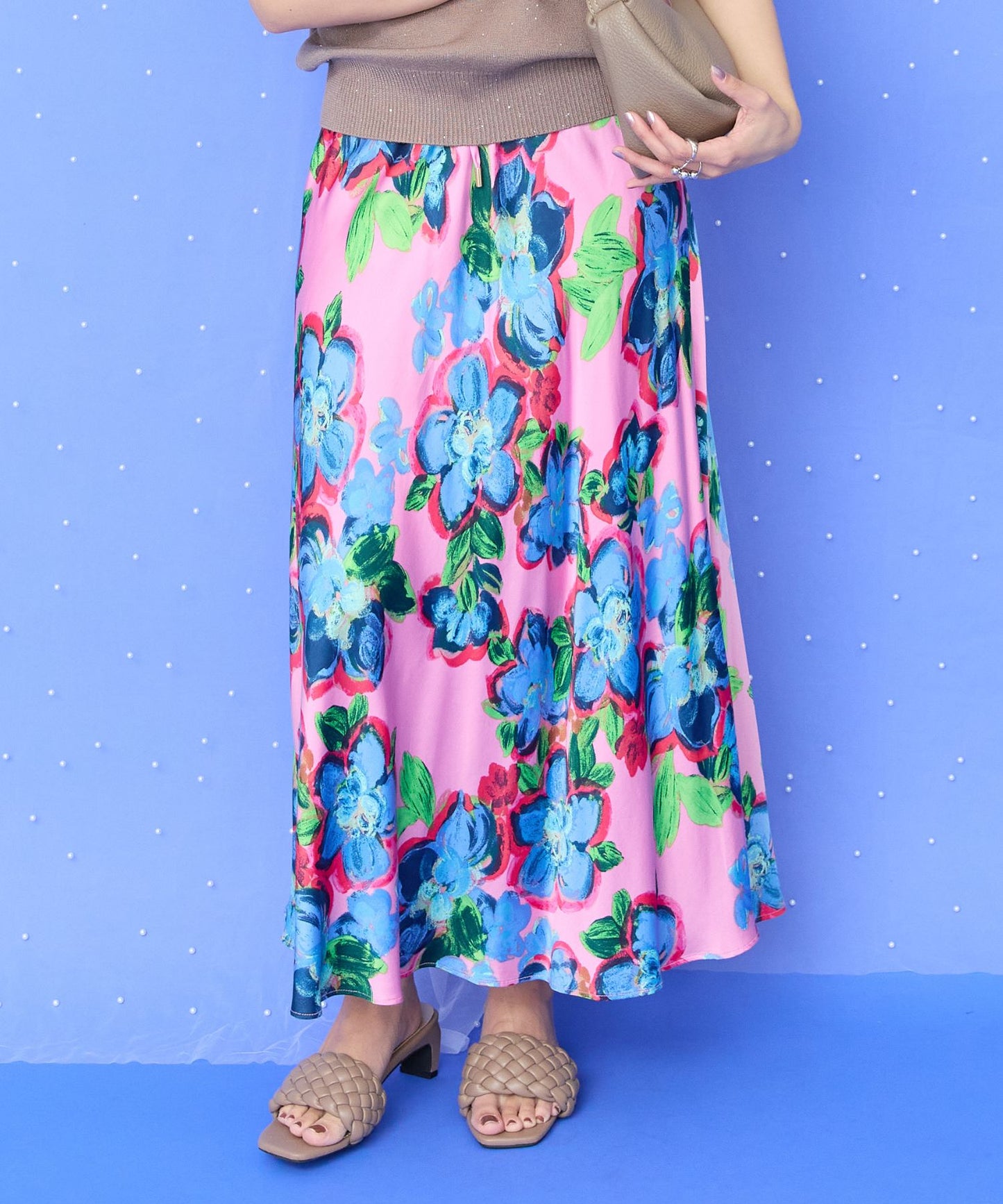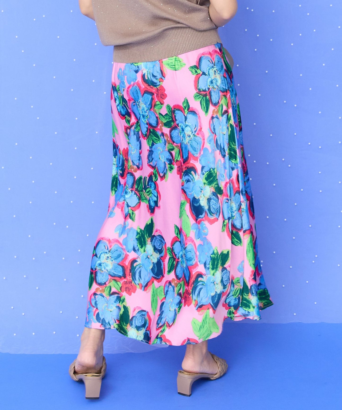 大胆なビッグフラワープリントが目を惹くエレガントなスカート。