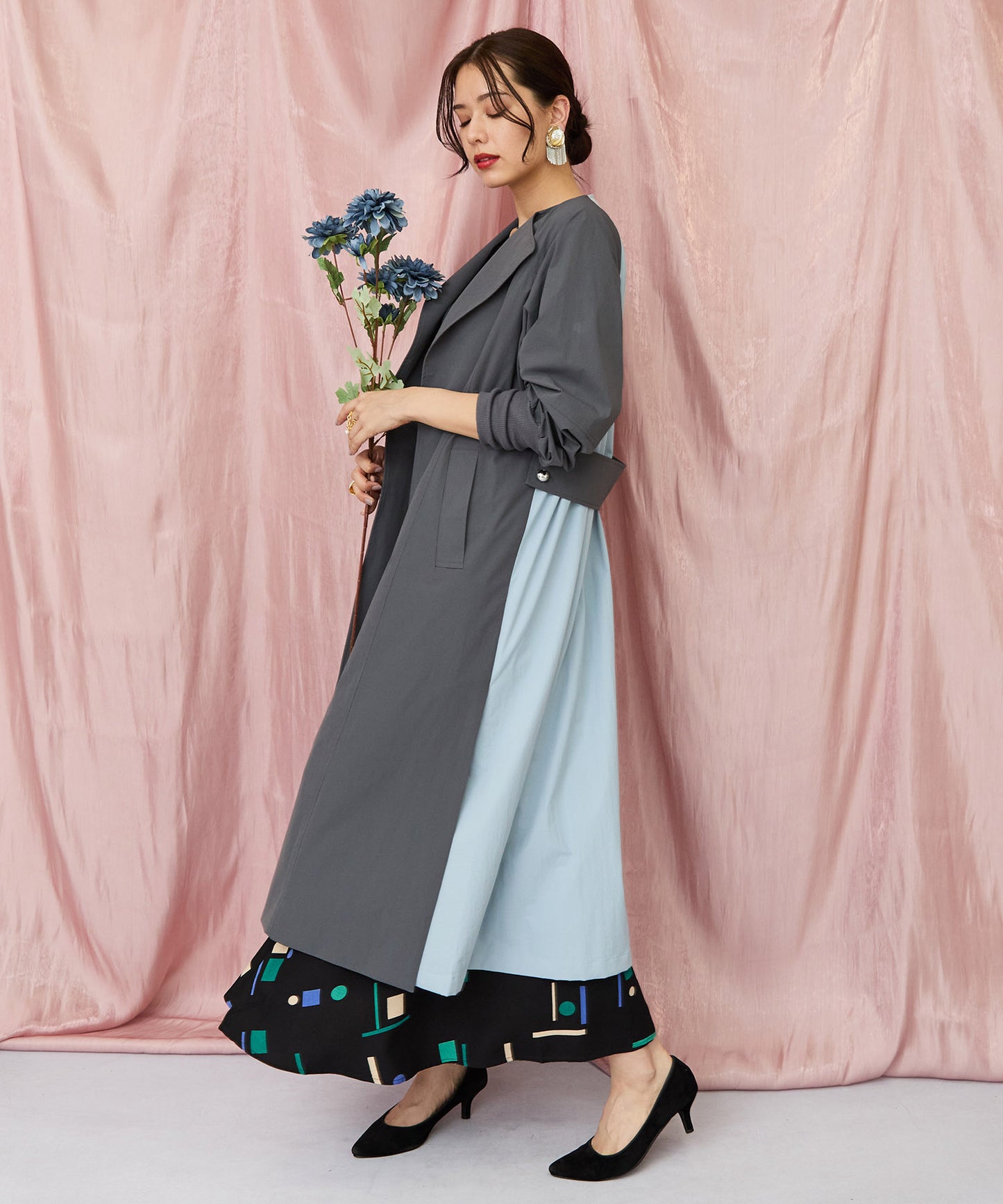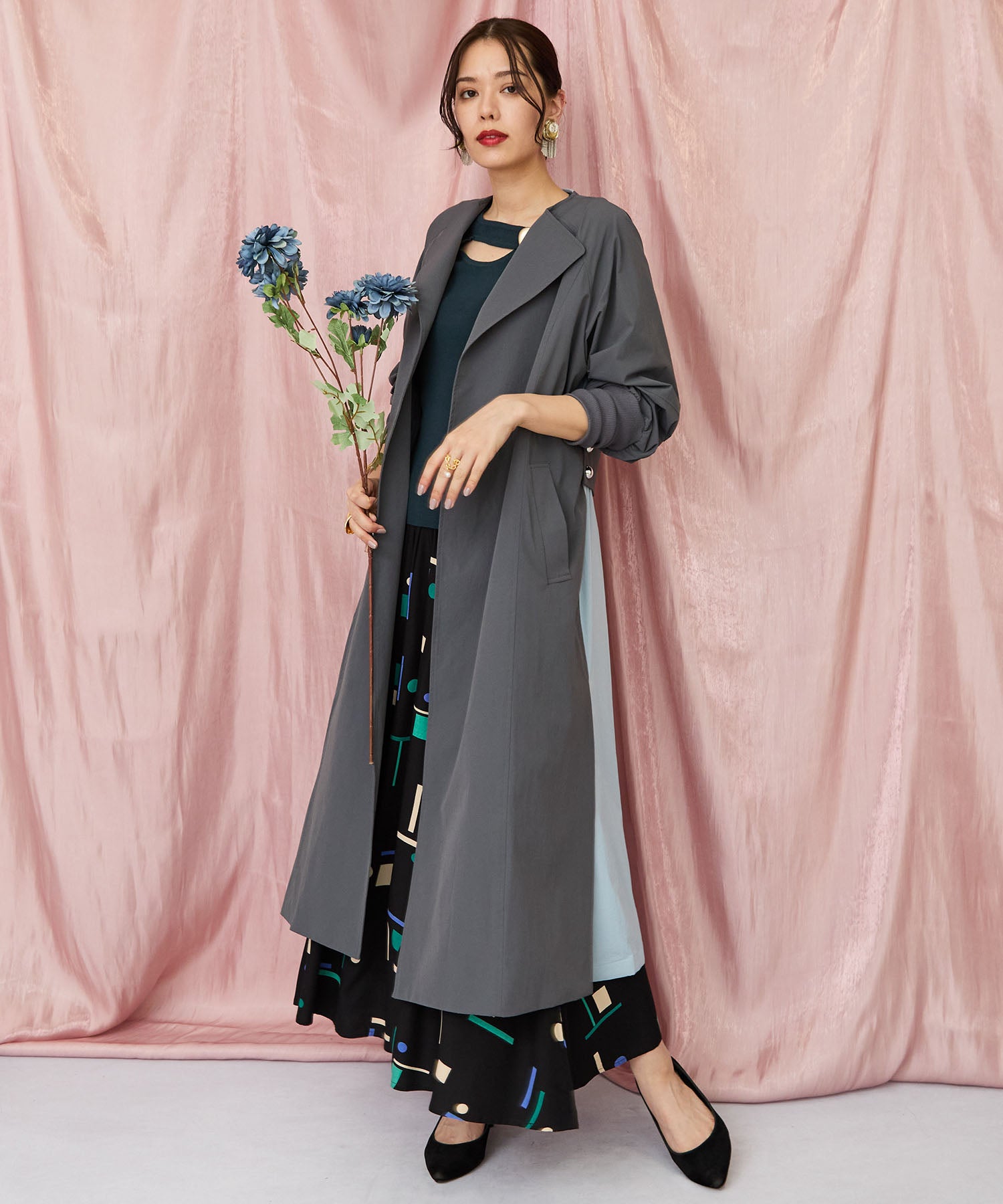 動くたびに揺れる柔らかな素材感が、女性らしいシルエットを引き立てます。
