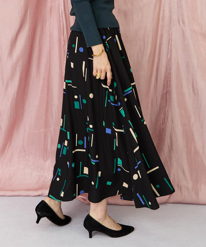 【モダンな幾何学柄で魅せる、大人のフレアスカート】