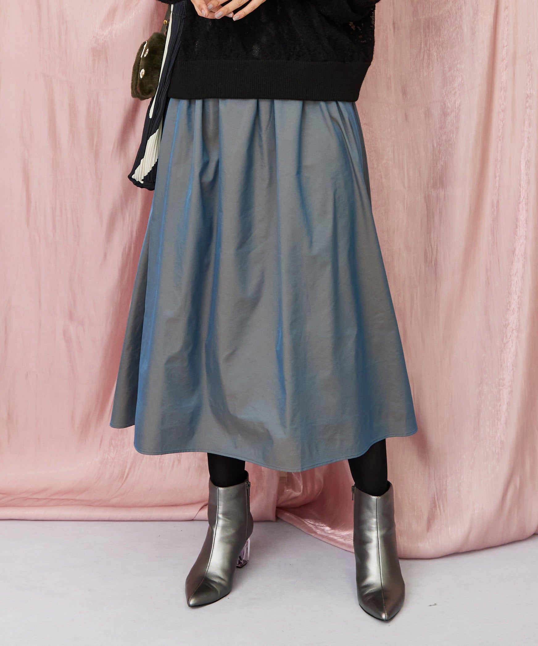 シックなカラー展開で、上品な微光沢が目を引くフレアスカート。