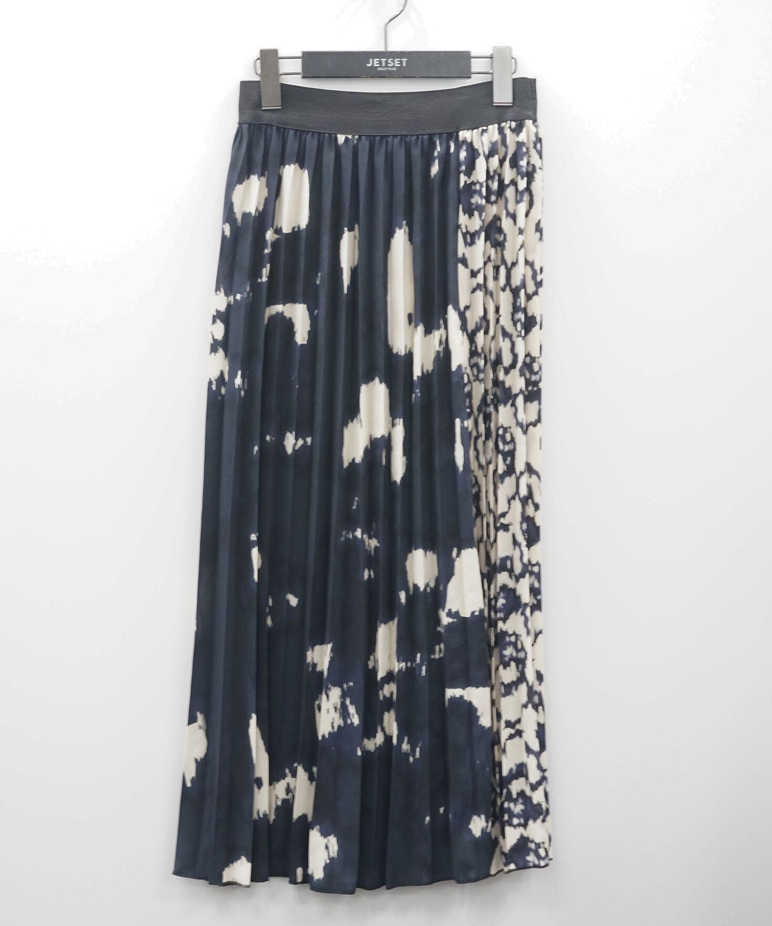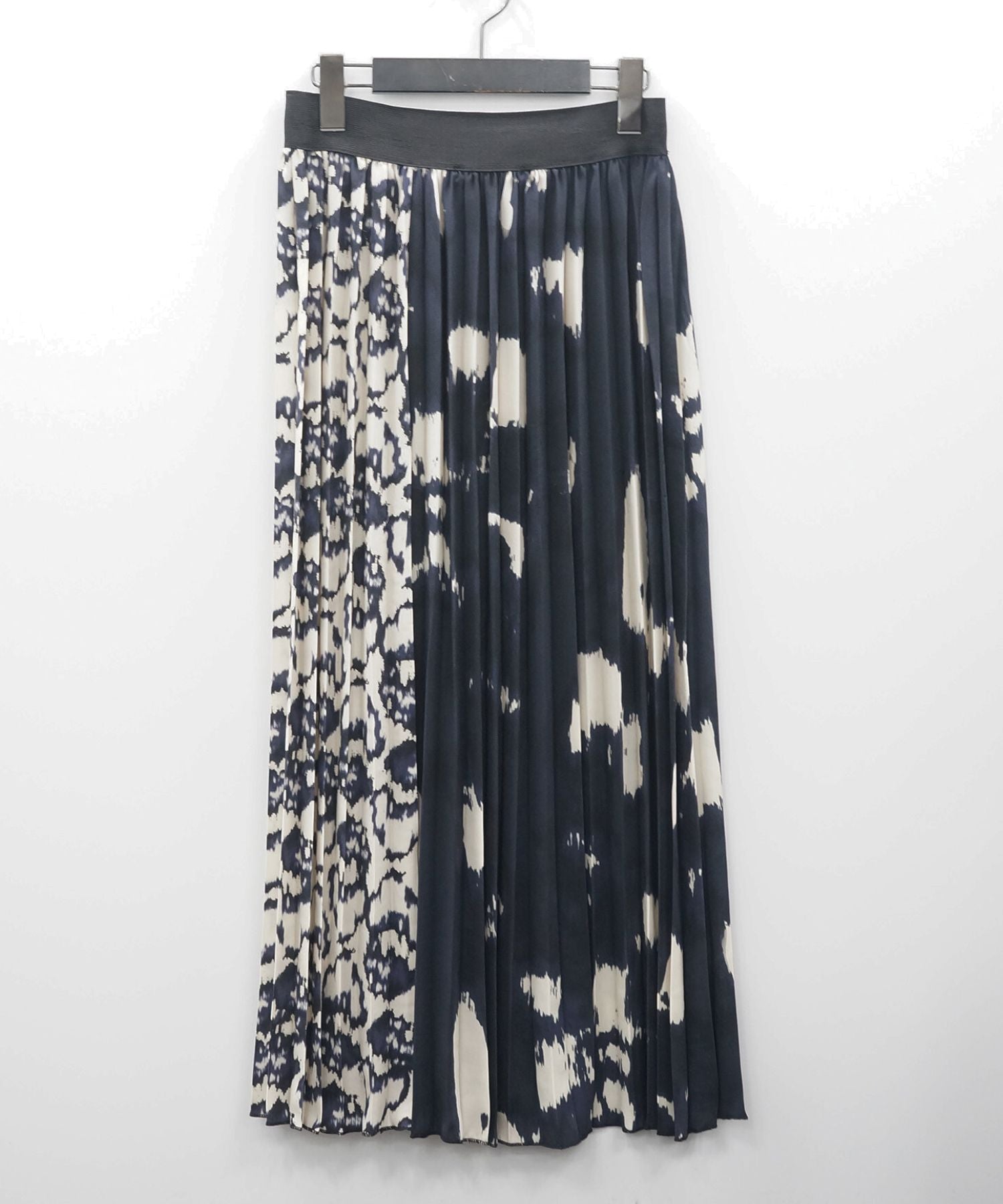 【視線を惹きつける、プリントコンビプリーツスカート】