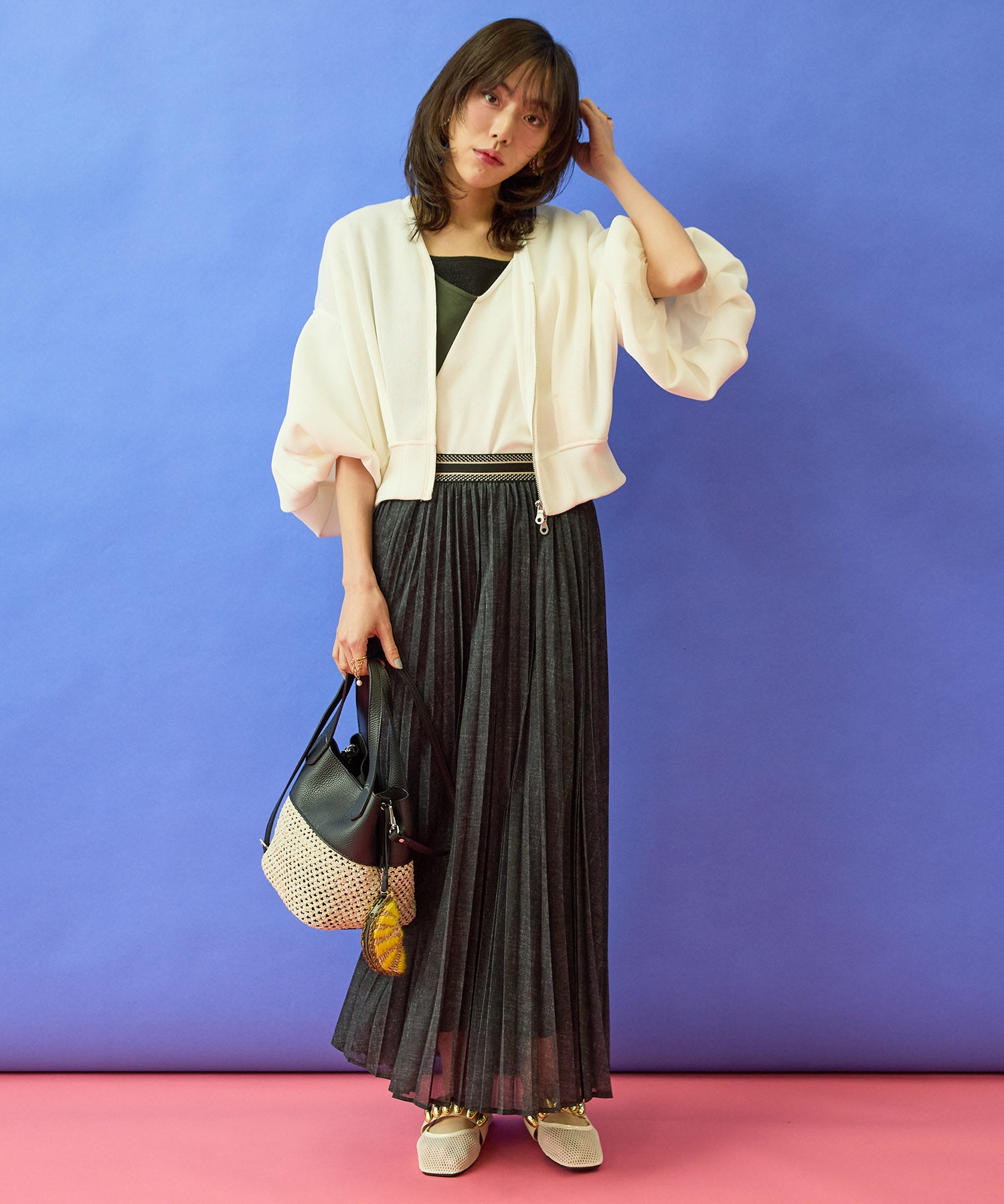 #デニムプリント #シアープリーツ #大人スカート #きれいめカジュアル #大人コーデ #春夏コーデ #JETSETSOLOPLUS