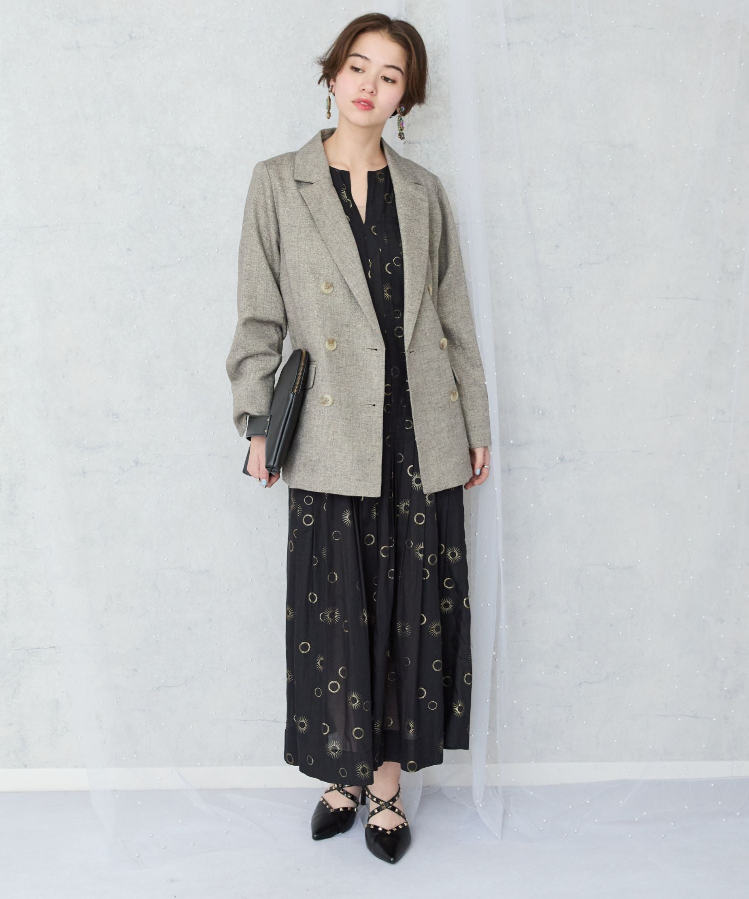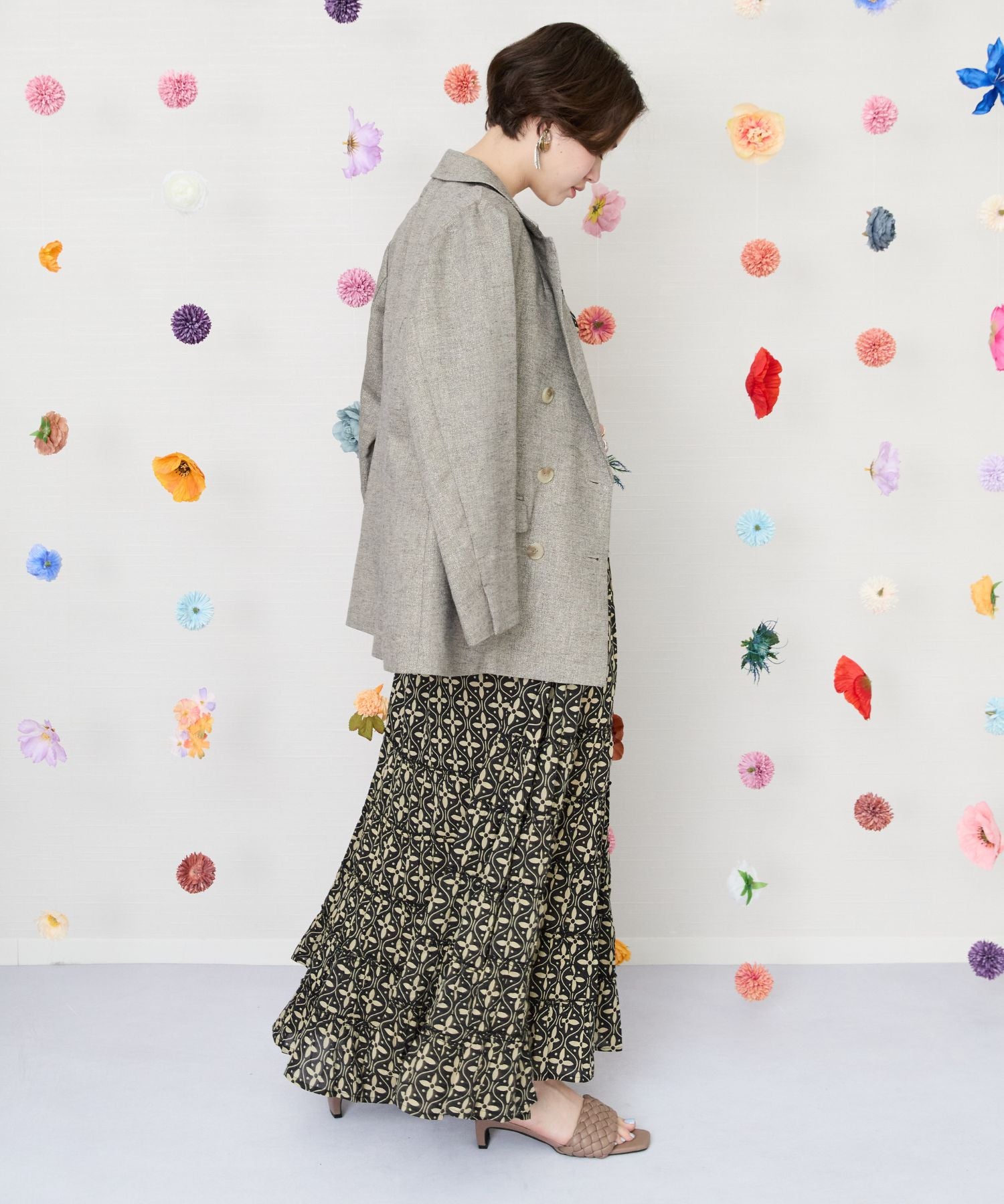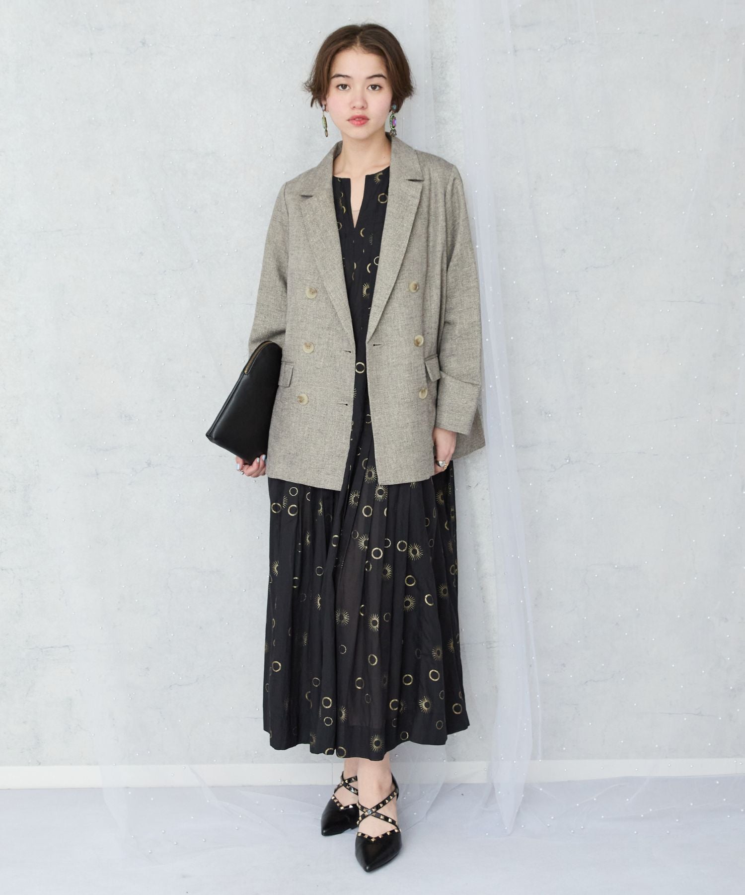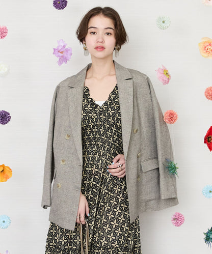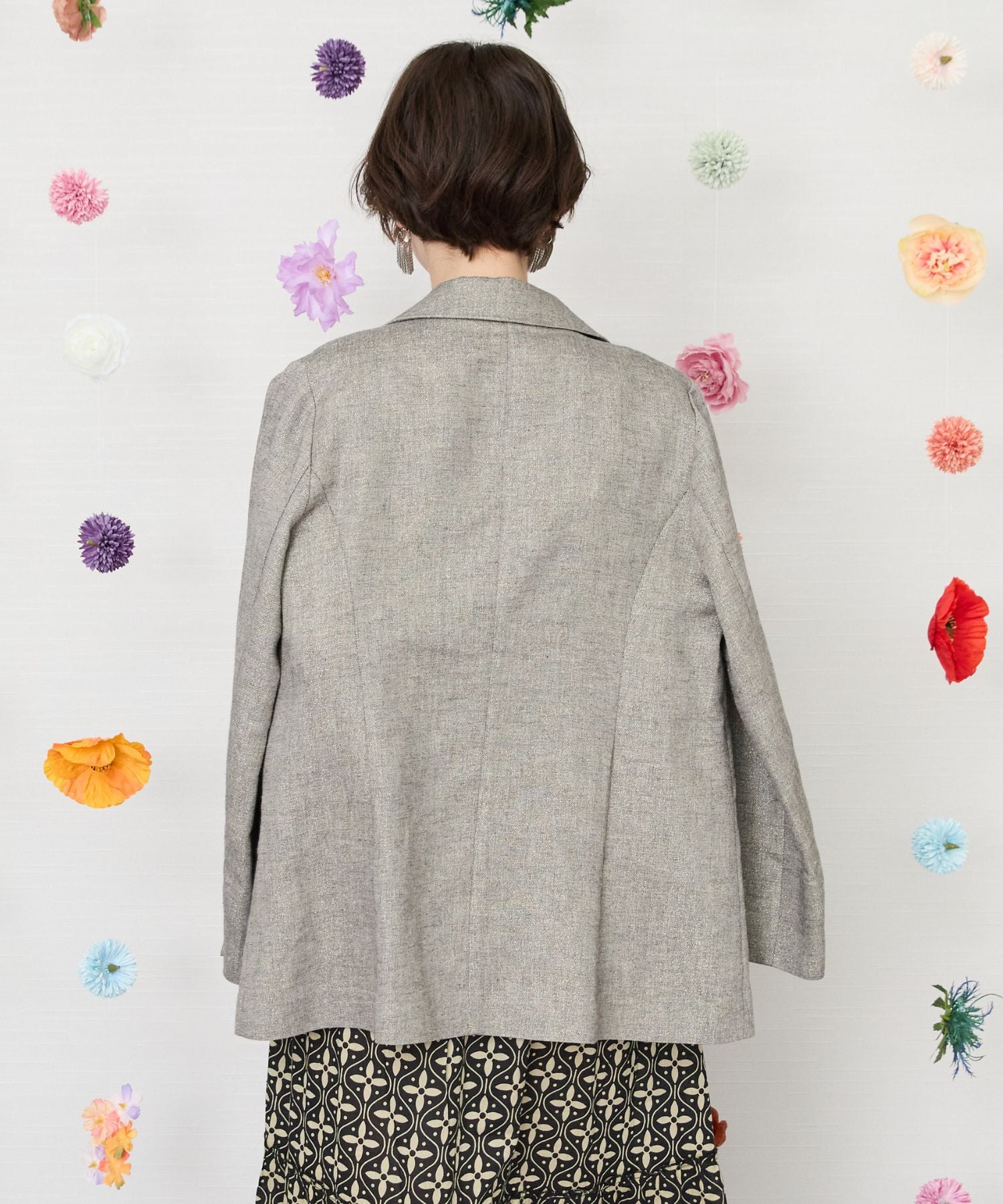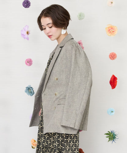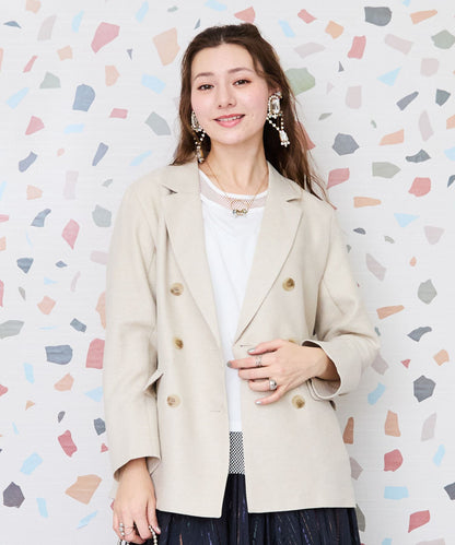 ナチュラルなリネンブレンドにラメを織り込み、トレンド感をプラスしたダブルブレストジャケット。