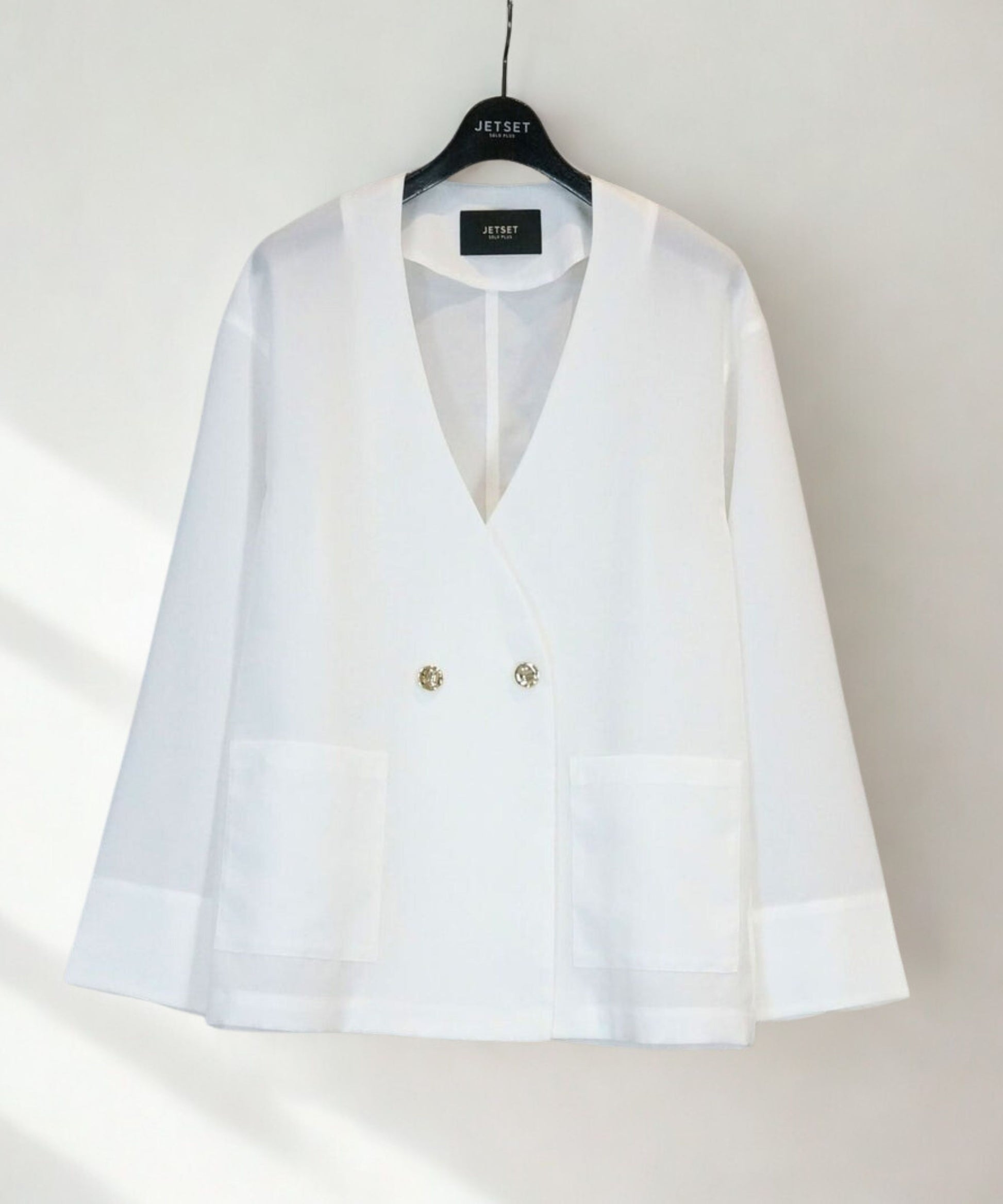 シアー素材の軽やかさとリネンライクな質感が魅力のジャケット。
