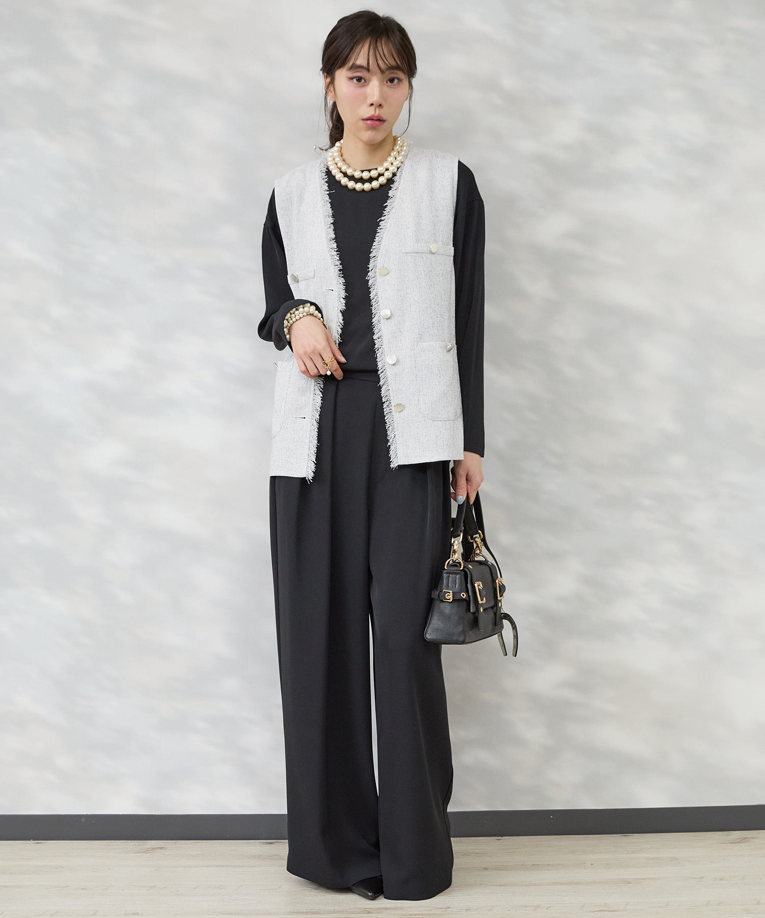 #ツイードジレ #フリンジデザイン #レイヤードスタイル #きれいめカジュアル #大人コーデ #秋冬コーデ #JETSETSOLOPLUS