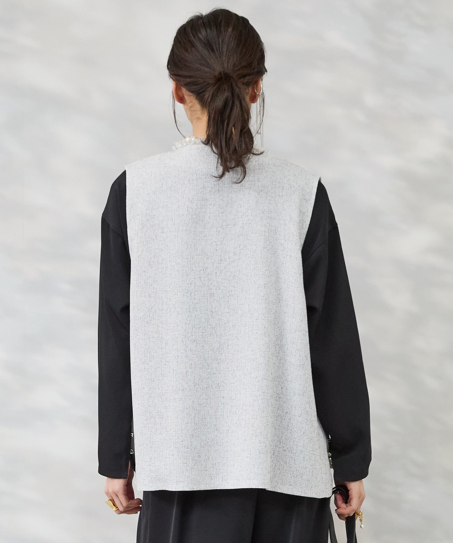 ・レイヤードしやすいジレデザイン