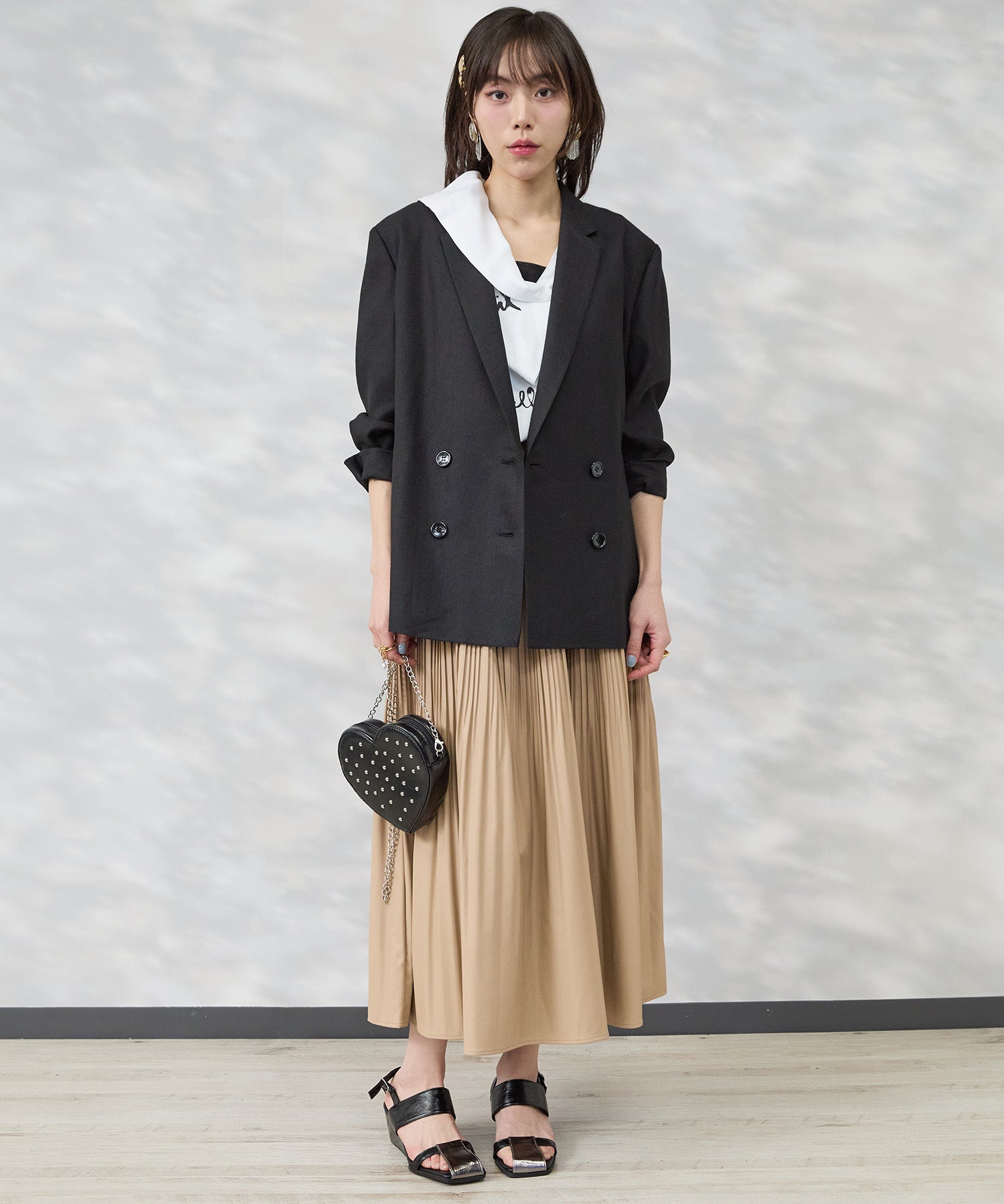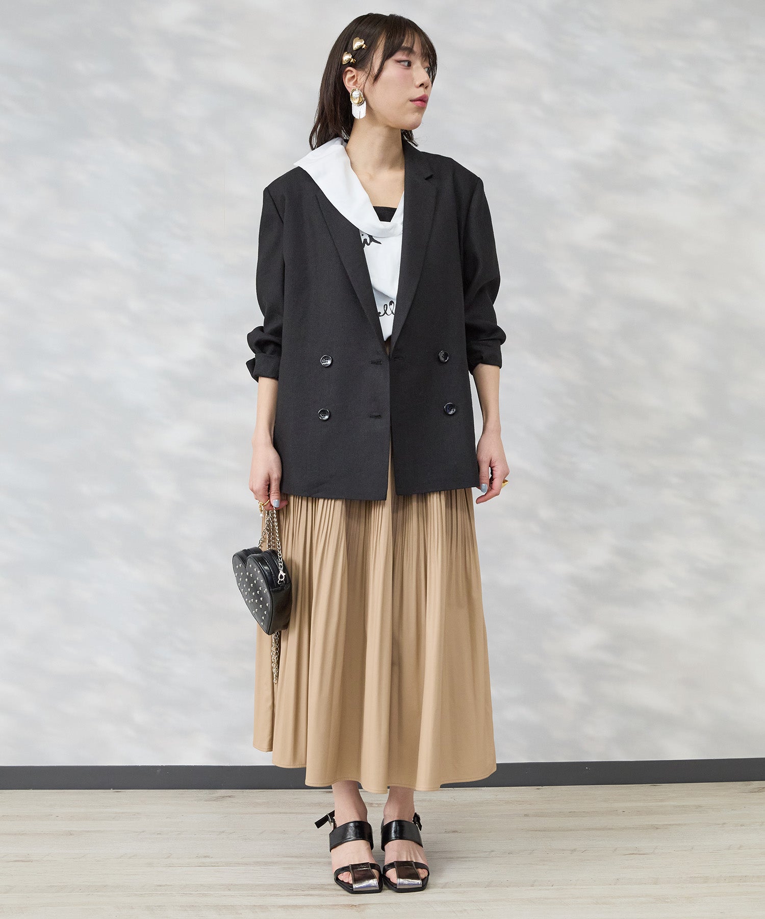 ほどよくゆとりのあるシルエットで、きちんと感がありながらも肩の力を抜いた印象に。