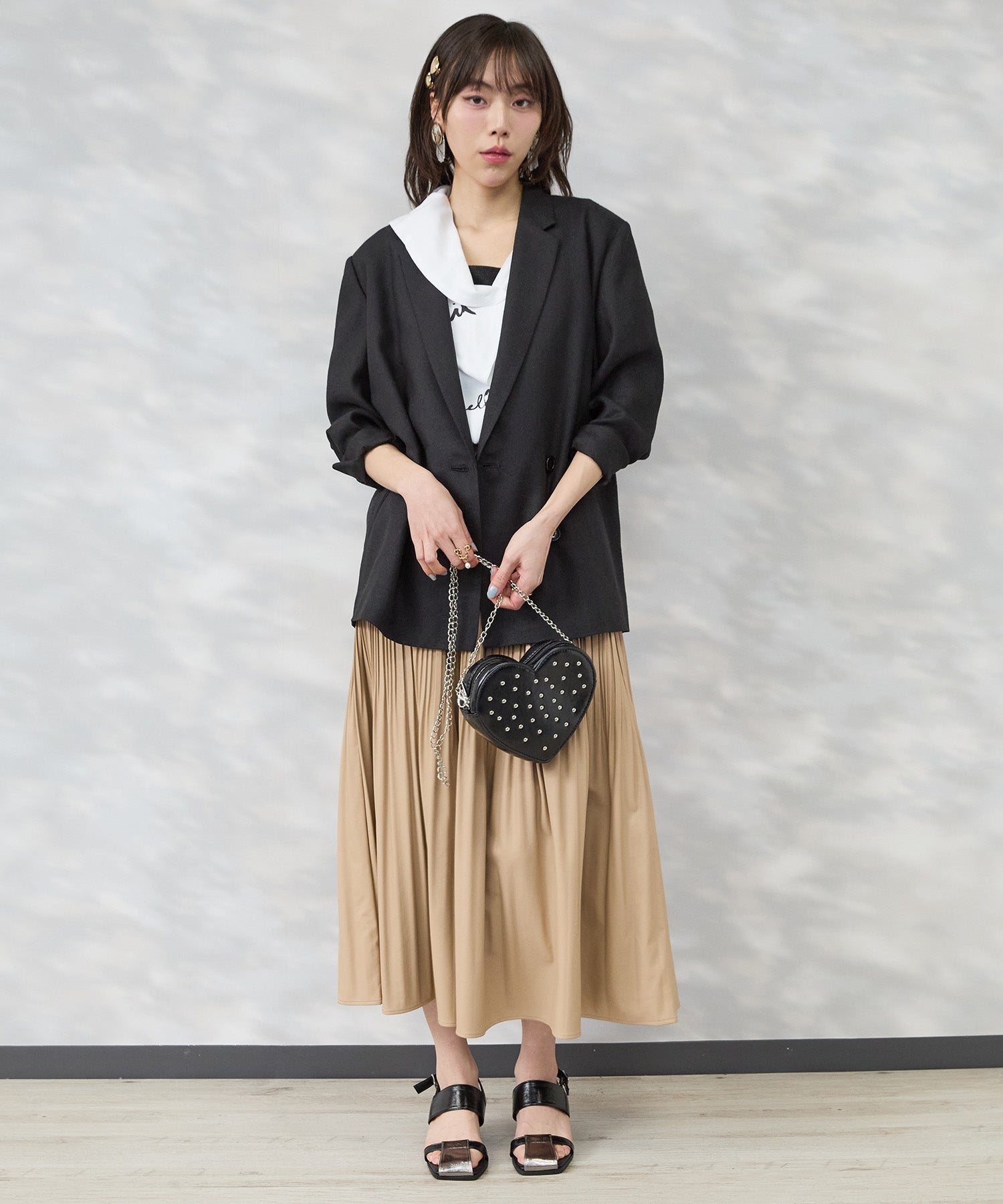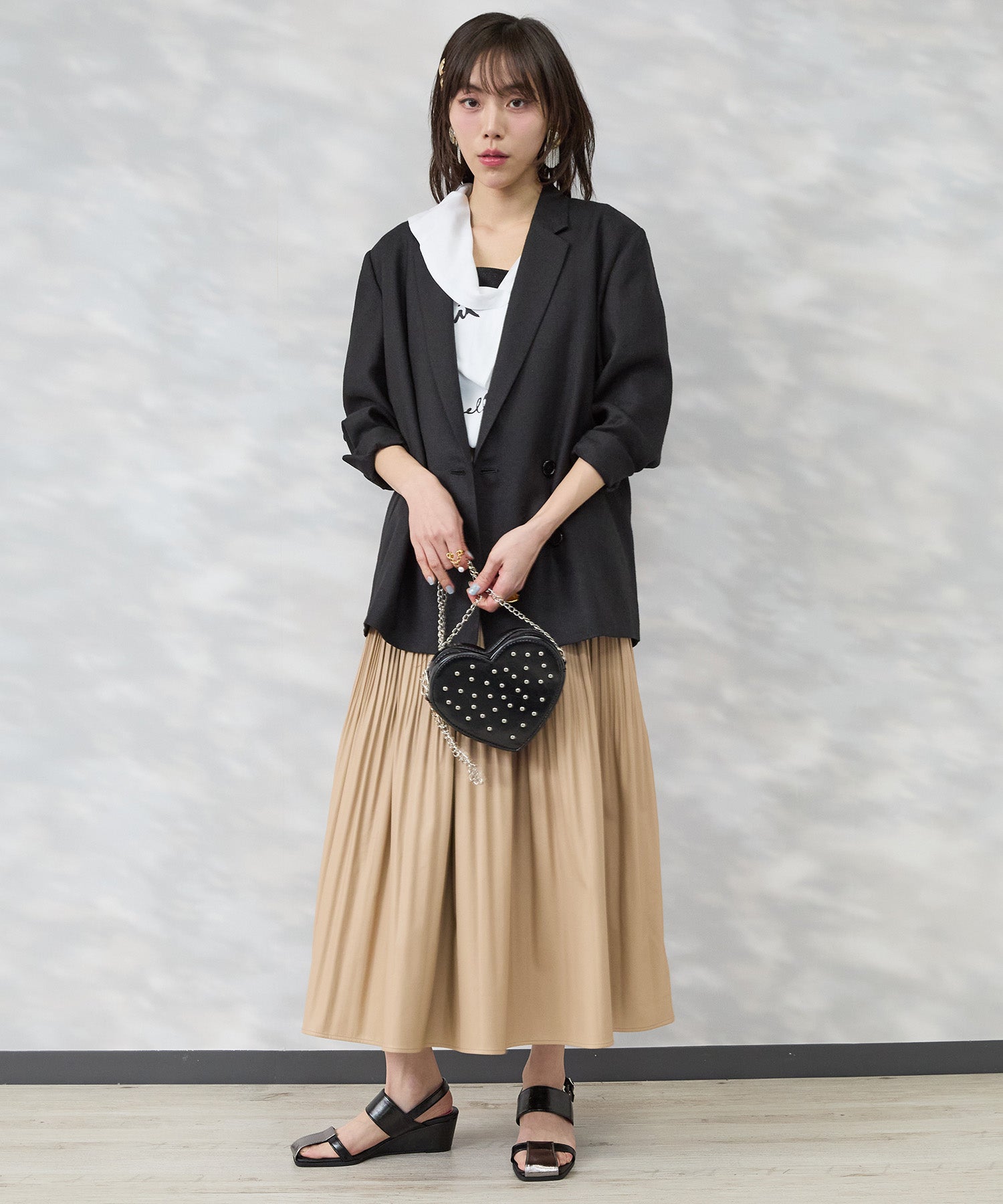 ワンピースや落ち感のあるボトムと合わせれば、女性らしい抜け感のある着こなしもおすすめ。