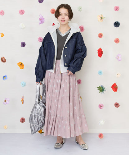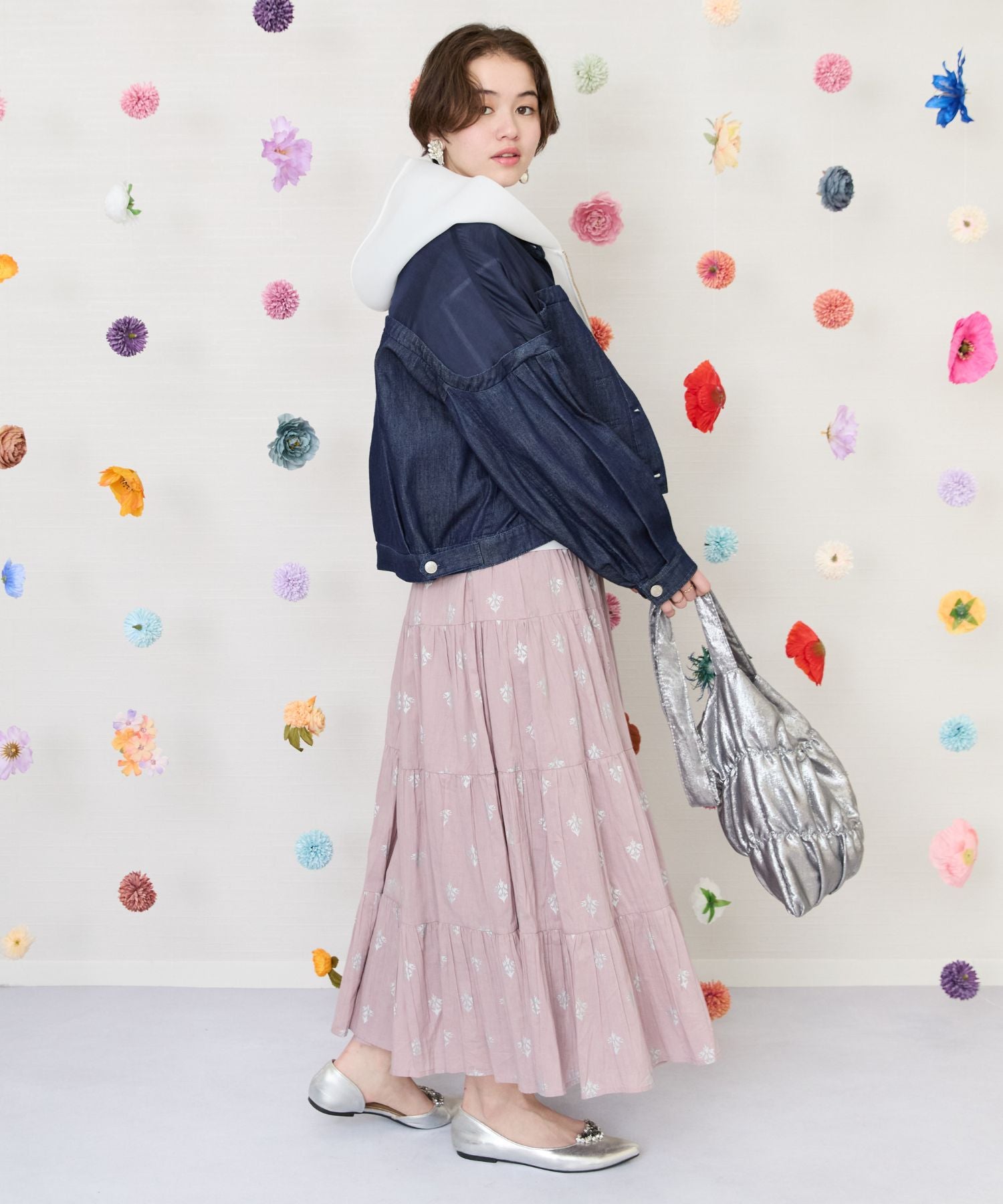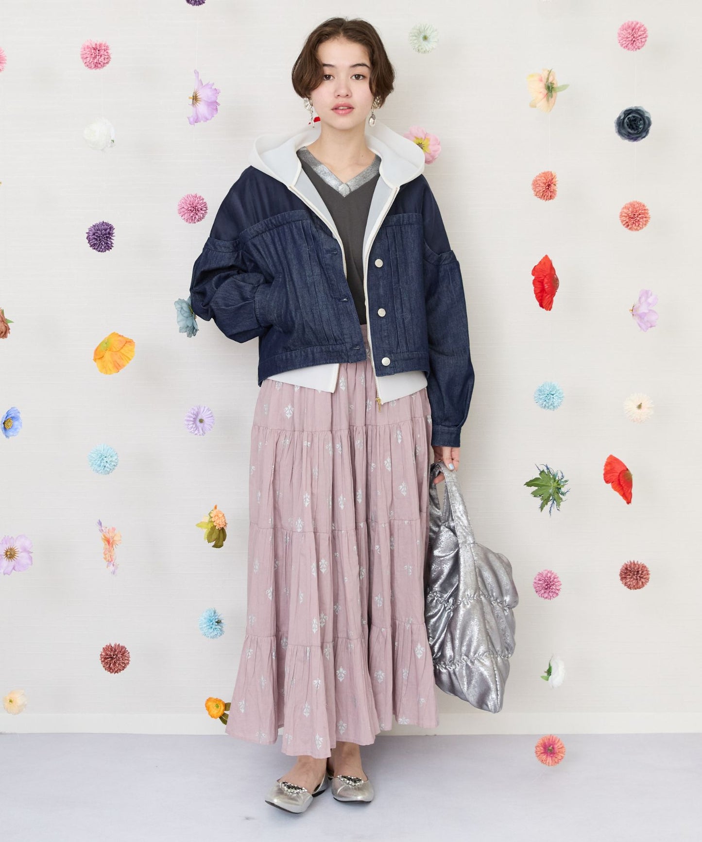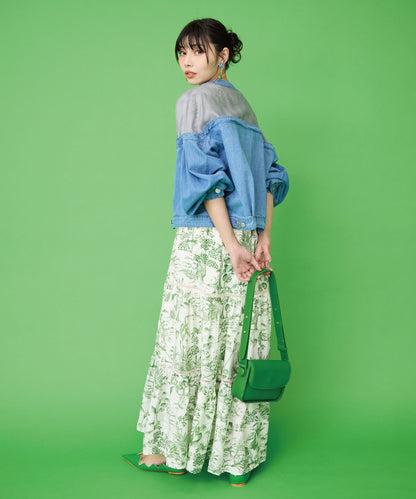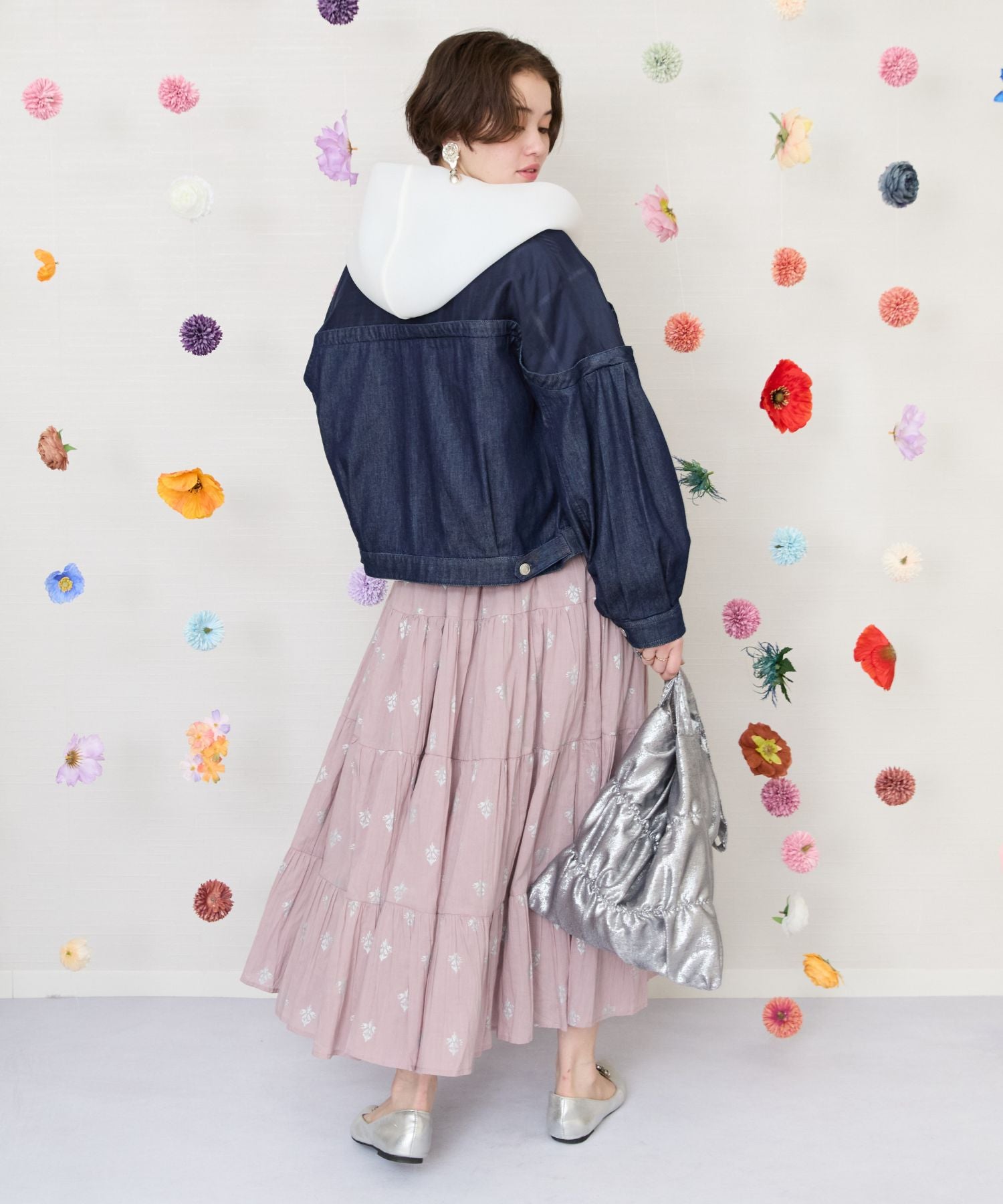 軽やかなコットンデニム素材を使用し、切り替え部分より上には鈍く光るシアー素材。