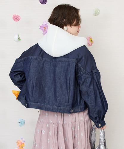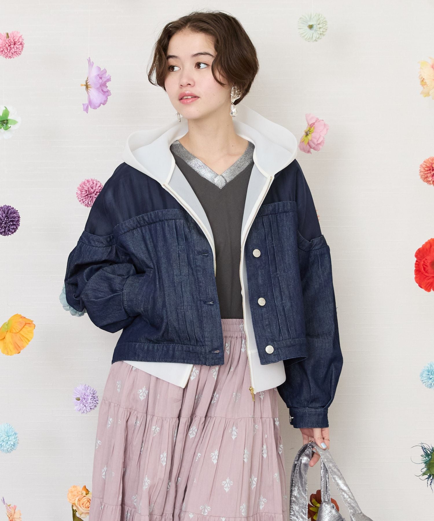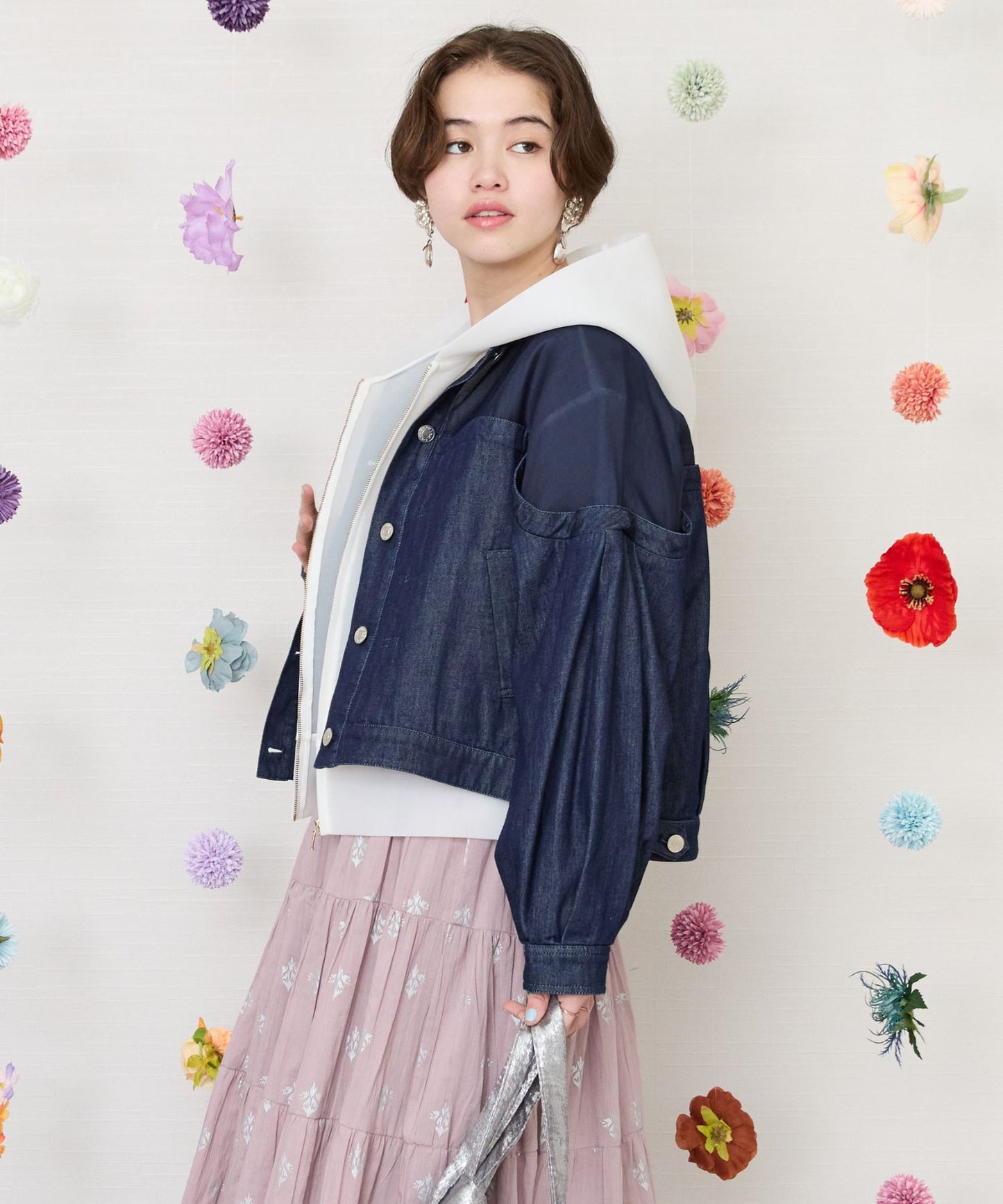 レイヤード風デザインが映える、大人のデニムブルゾン。